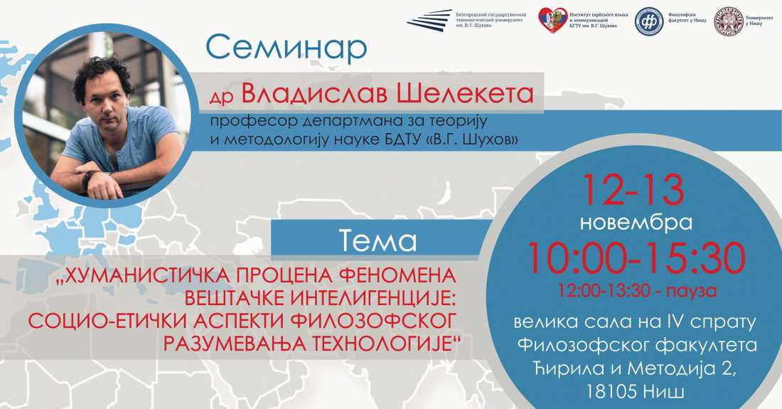 Предавања др Владислава О. Шелекете, професора департмана за теорију и методологију науке из Белгорода на тему "Хуманистичка процена феномена вештачке интелигенције: социо-етички аспекти филозофског разумевања технологије " обухватају методолошке и парадигматске основе проучавања вештачке интелигенције. Историјски, филозофски и социо-етички аспекти разматрају се у контексту хуманистичке експертизе. Посебна пажња посвећује се савременом стању науке и културе у светлу проблема вештачке интелигенције.