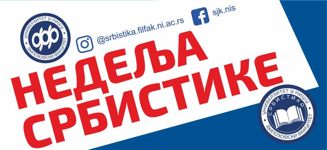 У организацији Департмана за србистику, у периоду од 5. до 9. децембра, биће одржана Недеља Србистике. Позивамо средњошколце, наставнике српског језика и књижевности, садашње и некадашње студенте Србистике, као и остале заинтересоване, да буду део бројних планираних активности. Детаљни програм Недеље Србистике је у прилогу.