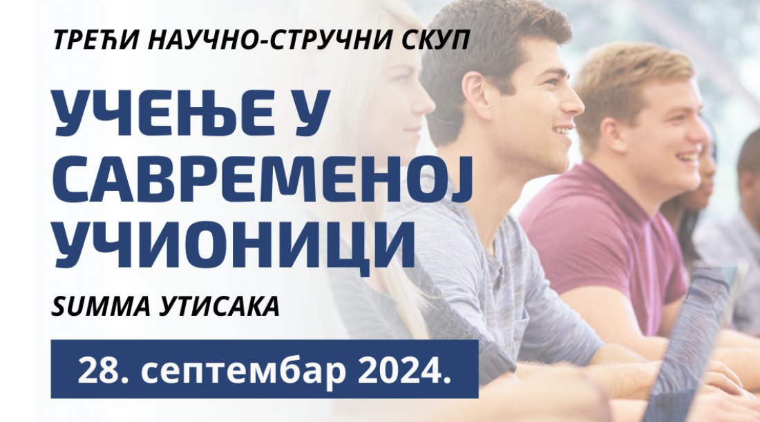 Центар за савремена филолошка проучавања младих истраживача Филозофског факултета у Нишу са задовољством вас позива на трећи научно-стручни скуп Учење у савременој учионици: summa утисака, који ће се одржати 28. септембра на Филозофском факултету у Нишу.