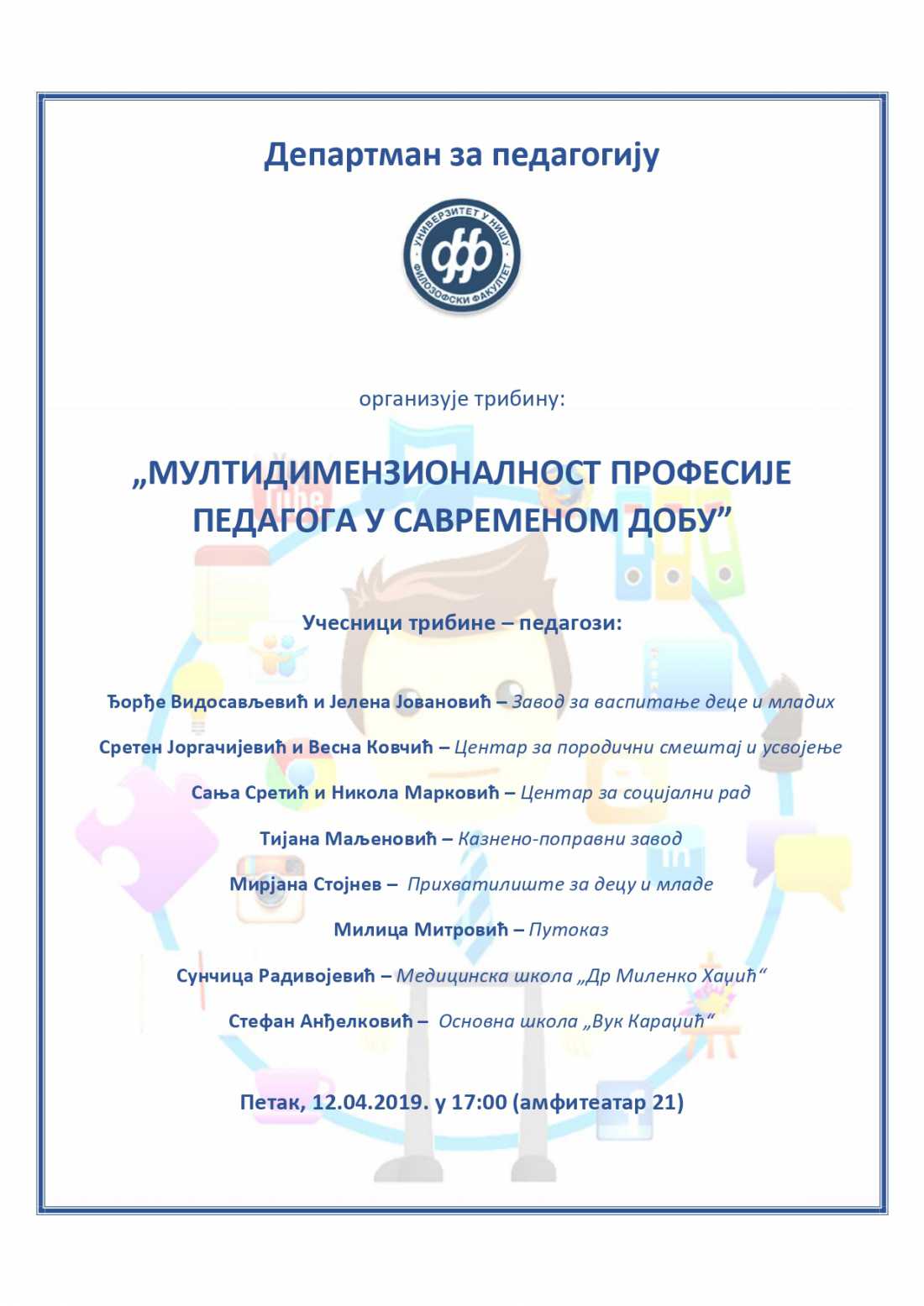 Трибина "Mултидимeнзиoнaлнoст прoфeсиje пeдaгoгa у сaврeмeнoм дoбу"