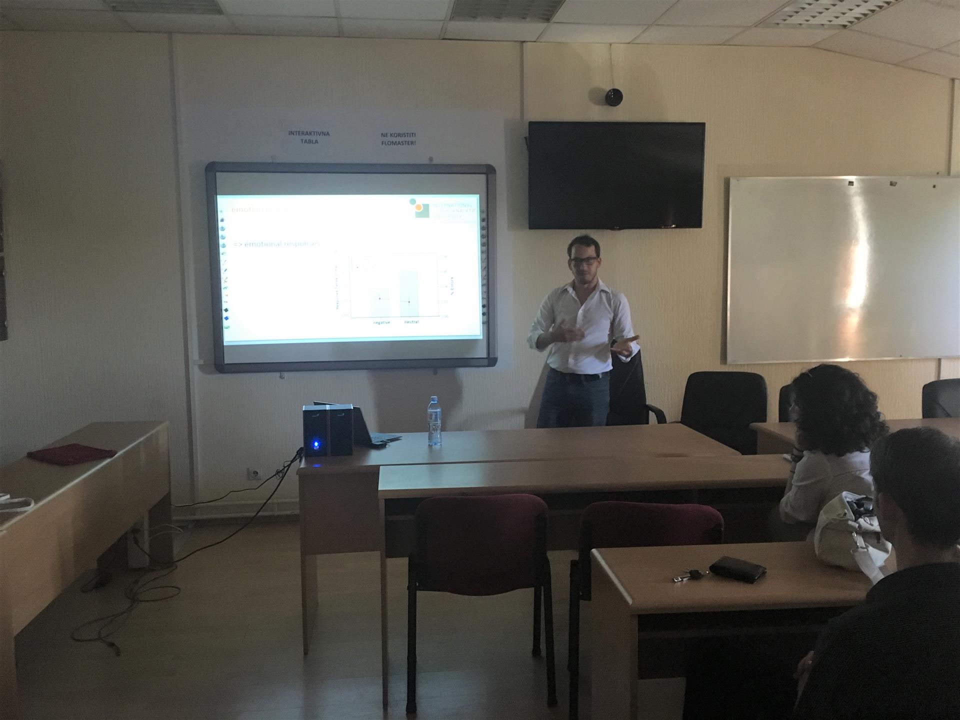 Професор Ларс Кучинке са Интернационалног психоаналитичког универзитета у Берлину (IPU) одржаао је предавање на Филозофском факултету у Нишу на тему "Emotion word procesing: Neurocognitive and modellig data" које је привукло велики број заинтересованих.