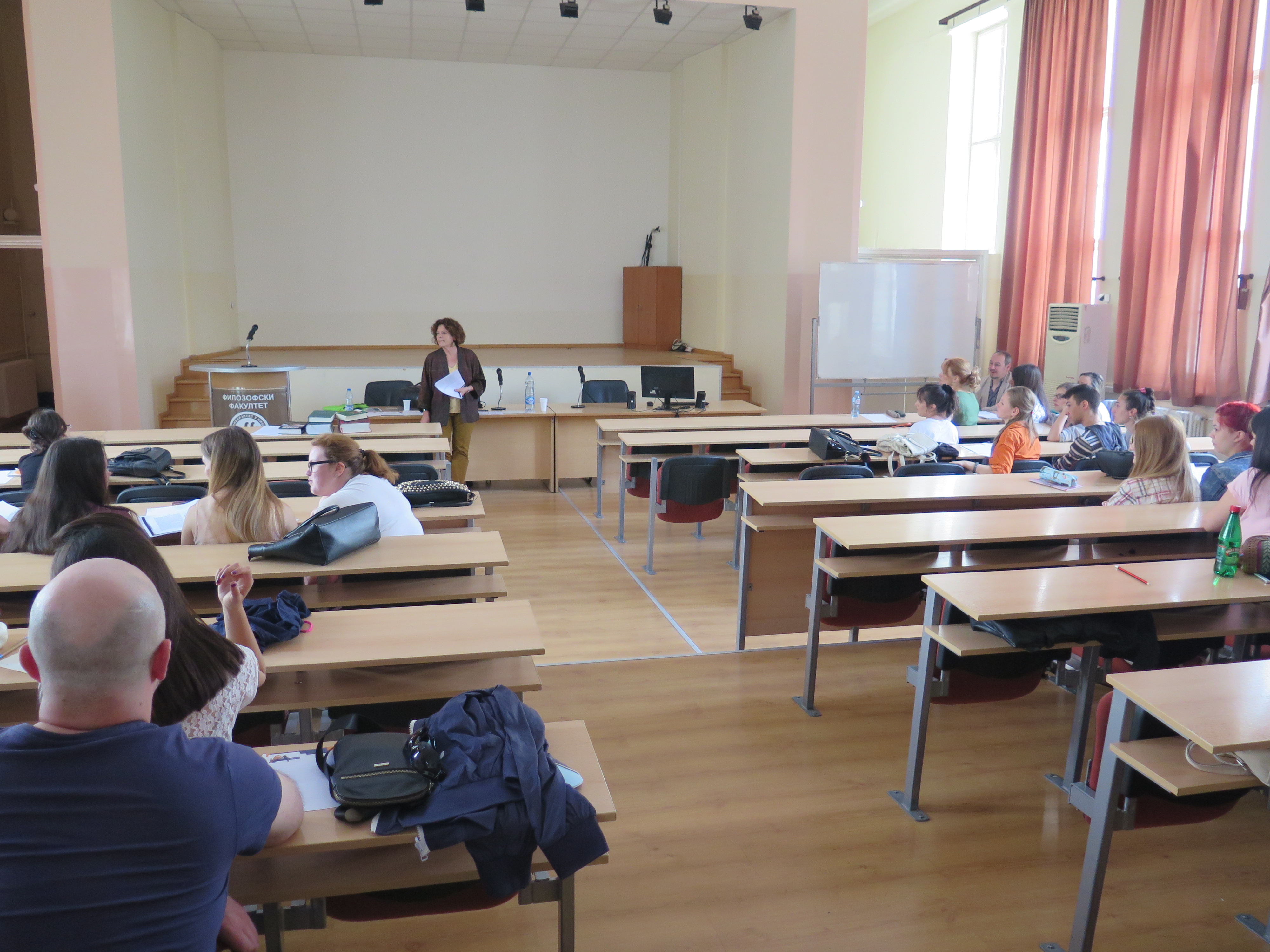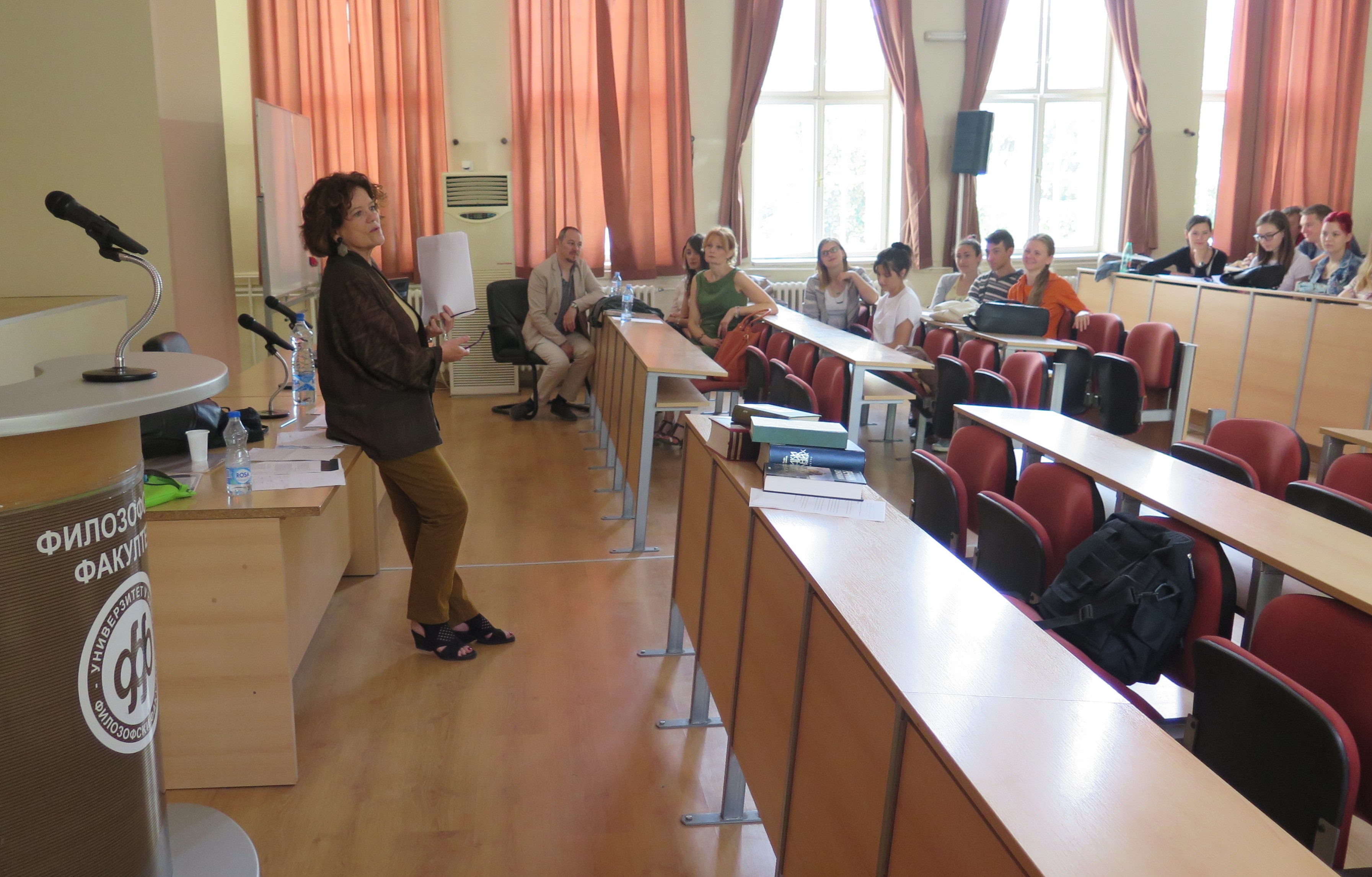 Госпођа Делпеш одржала је преводилачки атеље „Превођење и интеркултурна медијација“ за студенте и запослене на Департману за француски језик и књижевност, као и за колеге са осталих филолошких департмана на Филозофском факултету. Теме радионице биле су: двосмерно превођење између француског и српског, превођење realia на примерима узетим из дела Андрића и Киша, као и професија књижевног преводиоца данас. Посебна пажња дата је личном искуству госпође Делпеш у превођењу дела Данила Киша, Иве Андрића, Мирка Ковача и других, као и превођењу са тзв. ретких језика и сарадњи са ауторима.