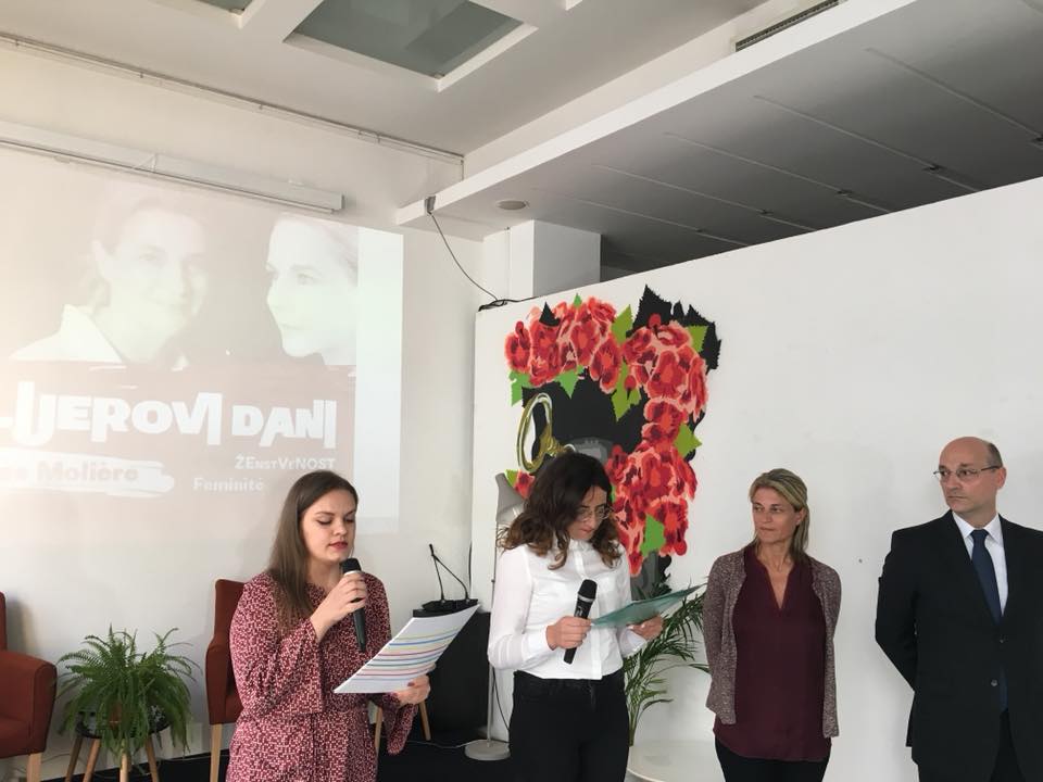 Претходне вечери, у Народној библиотеци „Стеван Сремац“ у Нишу одржано је књижевно вече посвећено савременој књижевници Камиј Лоранс (Camille Laurens). О њеном стваралаштву говорили су доц. др Никола Бјелић, Дејан Стојиљковић, Марион Вио (Marion Viau), Валерија Војновић, а присутнима се обратила и Паскал Делпеш (Pascale Delpech), иницијаторка оснивања Молијерових дана.