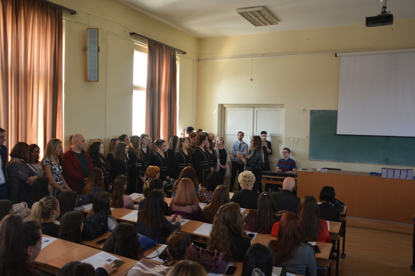 Од улаза, па све до слушаоница у којима се одржала додела све је било у знаку Филозофског – од паноа, до омота чоколадица. Свечану церемонију изабраним нумерама отворили су хорови гимназија „Бора Станковић“, „Светозар Марковић“ и „9. мај“ након чега су новопечене студенте поздравили представници управе Факултета на челу са деканицом проф. др Наталијом Јовановић. Она је истакла да јој је велико задовољство што је у времену демографске кризе и популарности ИТ сектора, највећи број студената Универзитета у Нишу одлучио да студије започне баш на овом факултету. То показује да за друштвено-хуманистичке науке итекако има будућности.