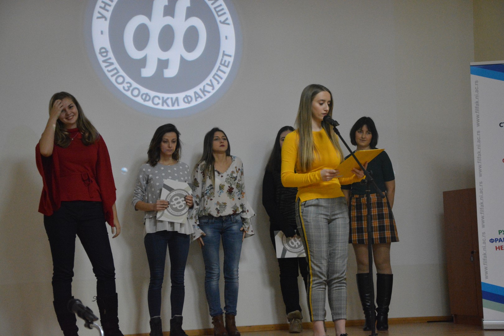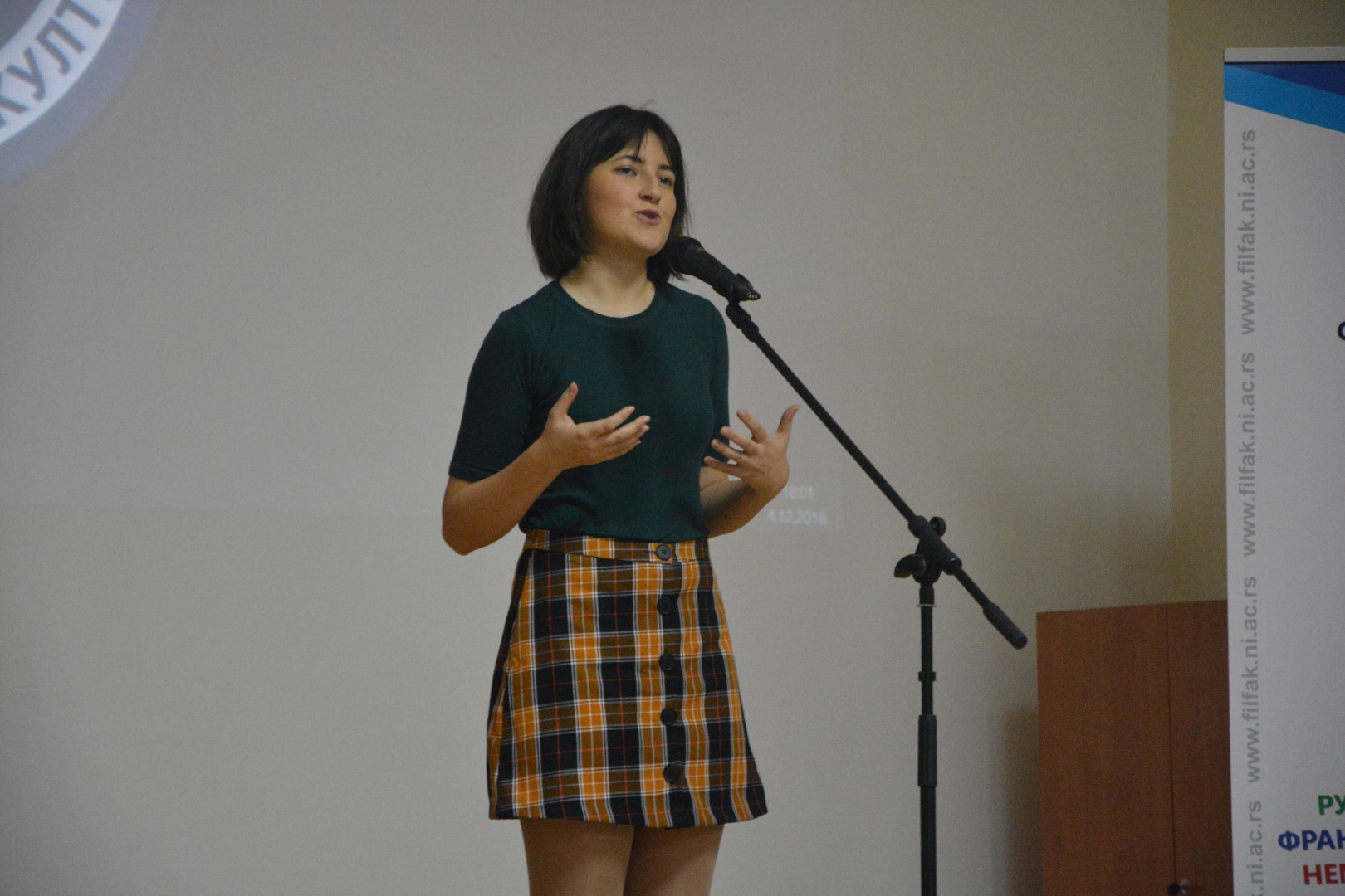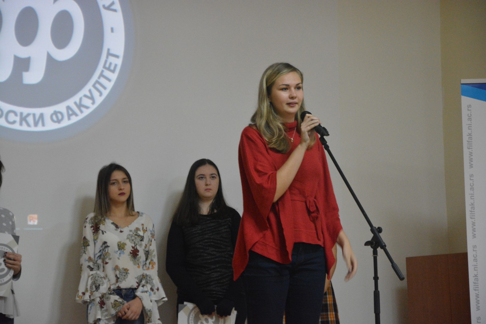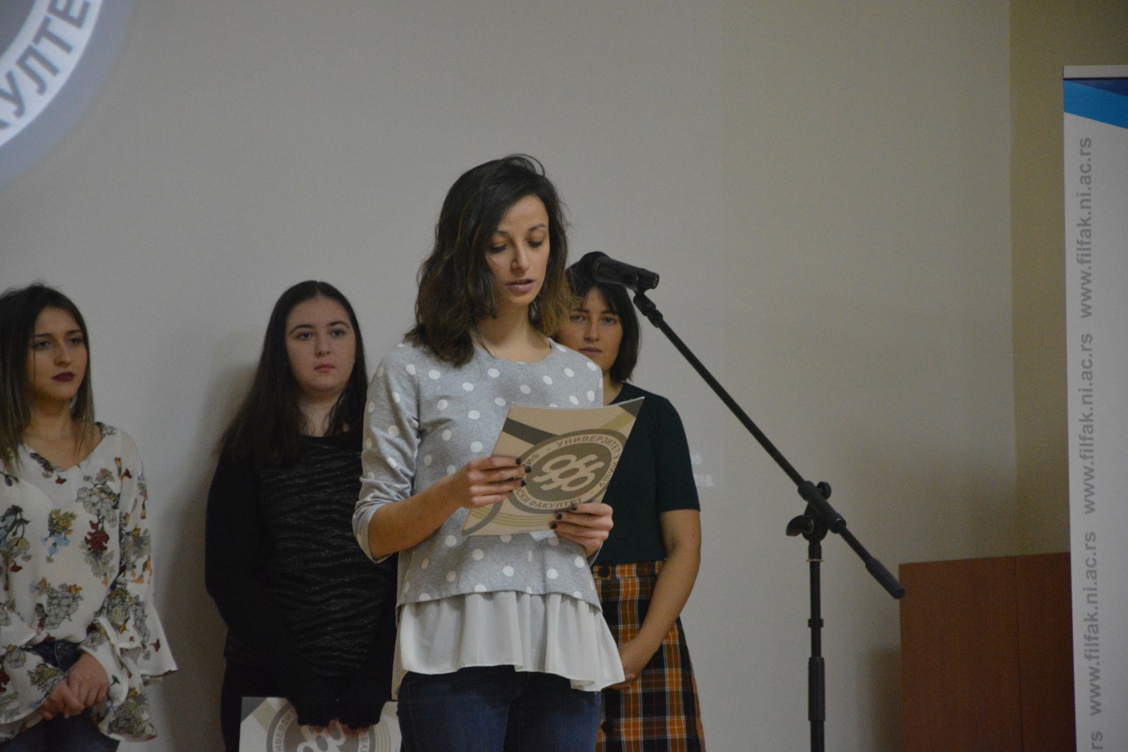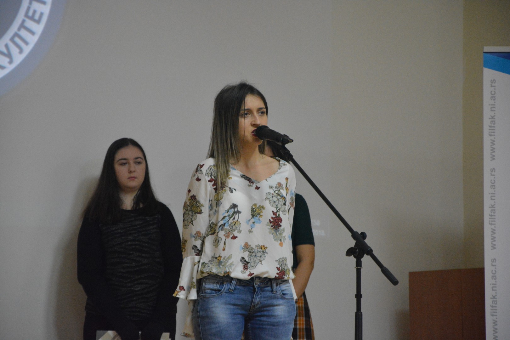 Присутне је на почетку поздравила деканица Филозофског факултета проф. др Наталија Јовановић. Она је истакла да су на правом месту, јер ова високошколска установа уписује највећи број студената на Универзитету у Нишу, а Филозофски факултет, који прати трендове у образовању, науци и на тржишту рада, својим резултатима се издваја од сличних високошколских установа у земљи и региону, због чега се и убраја међу најбоље и најуспешније факултете у Србији.