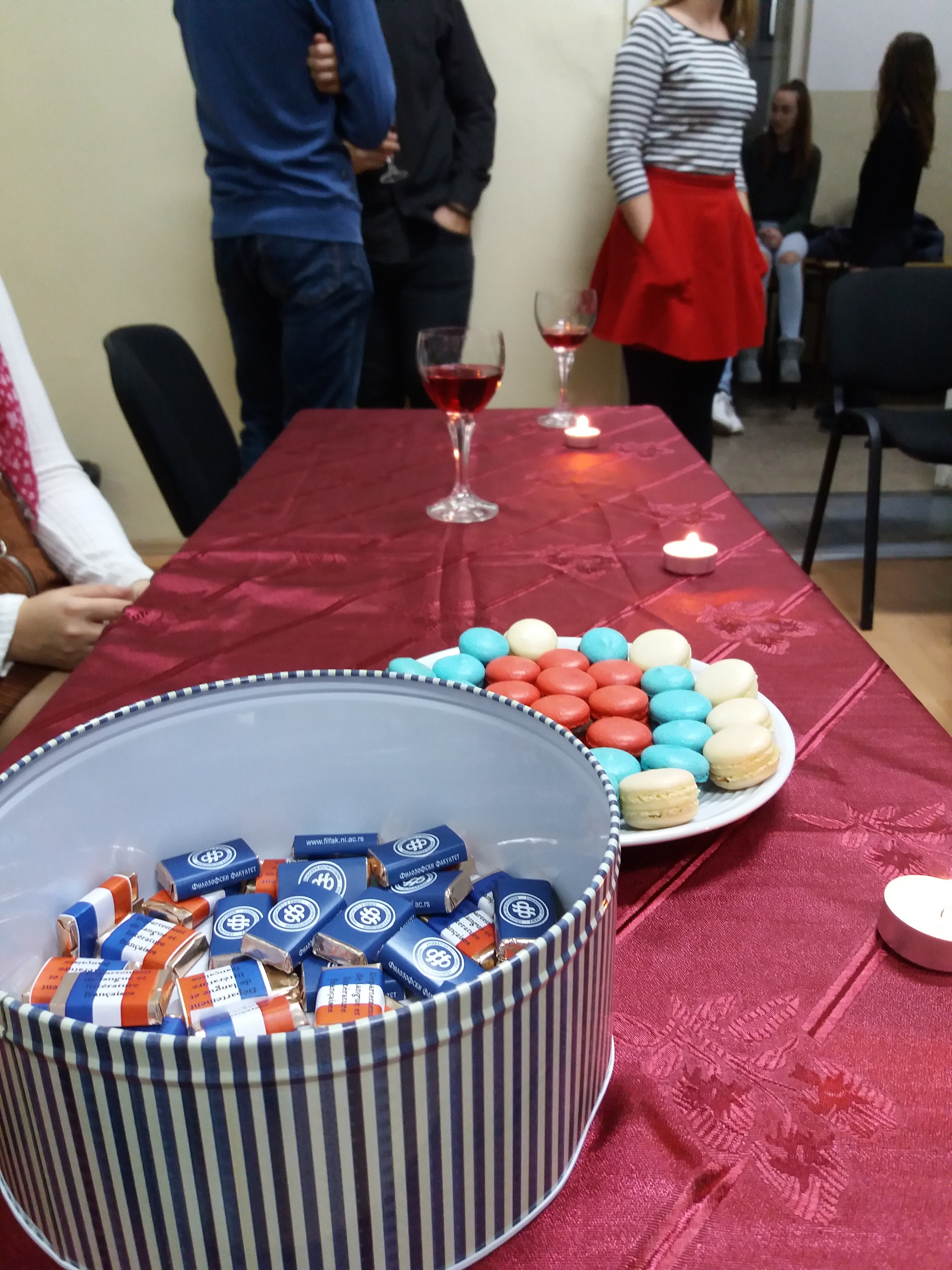 Поред тога, млади гости Департмана имали су прилике да се и сами окушају у писању поезије, али и да уживају у слатким залогајима француских макаронса и чоколаде. Уз позадинске звуке француских шансона, заинтересовани ученици су на крају вечери могли да се распитају о студијском програму француског језика и књижевности, те да од присутних сарадника и организатора ове вечери – Наташе Живић, Јоване Голубовић и Вање Цветковић добију све потребне информације и охрабрење како би догодине постали студенти Департмана.