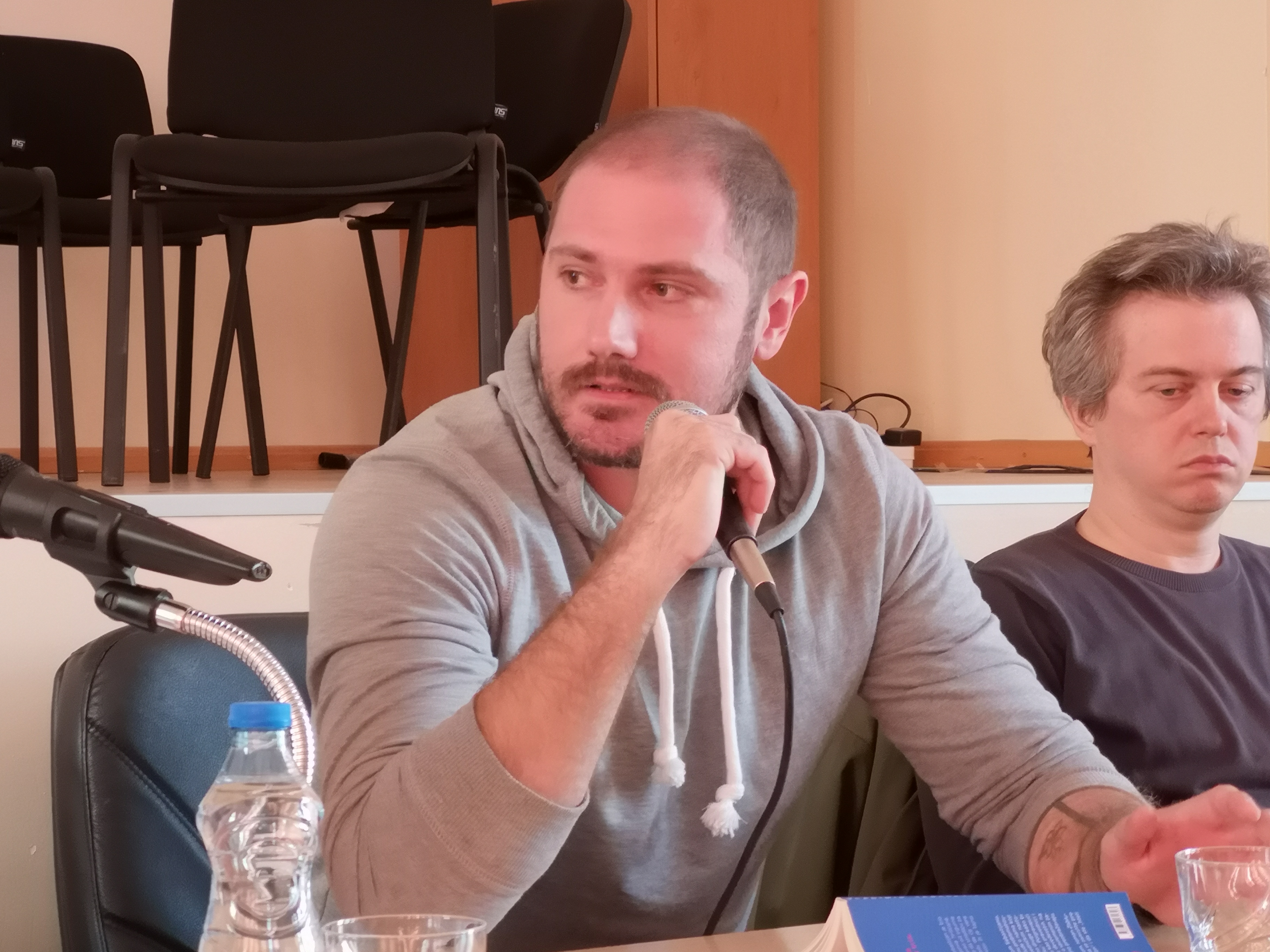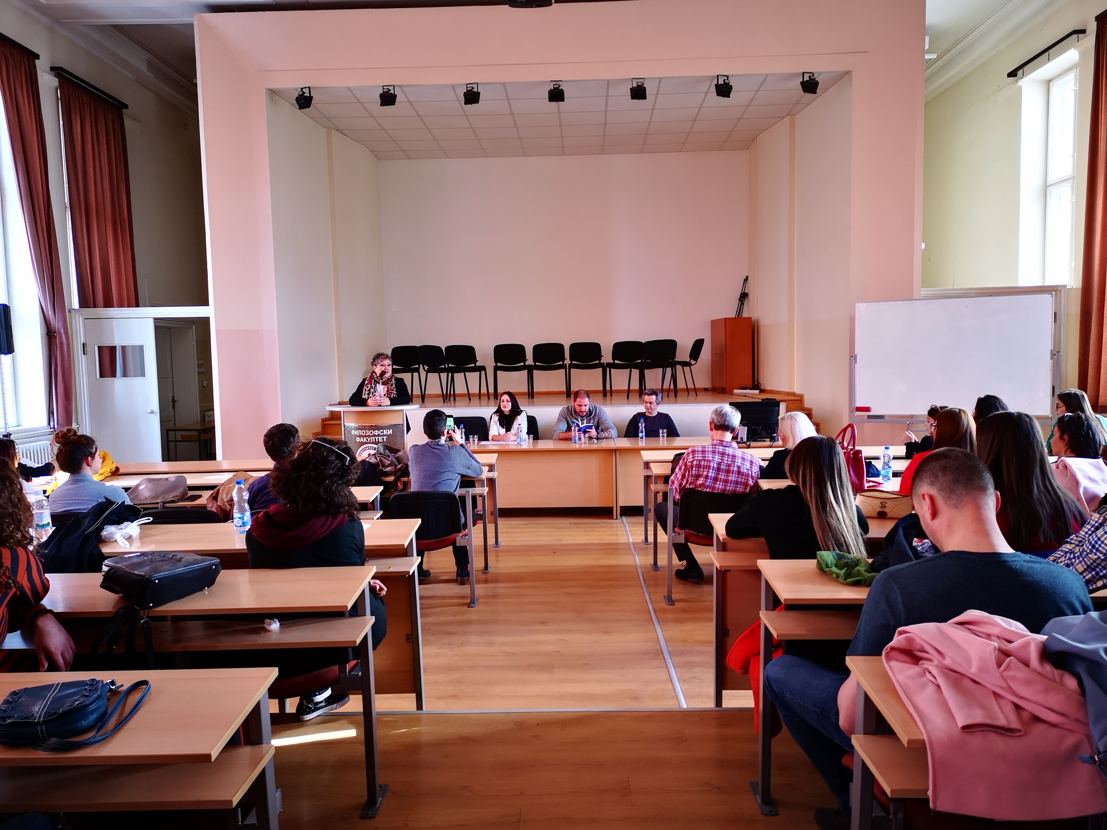 Динамичном разговору, који је отворила деканица Филозофског факултета, проф. др Наталија Јовановић, прикључила се и публика, а студенти Србистике посебно су били заинтересовани за разоткривање стваралачког процеса младог писца, који је својим надахнутим говором отворио многа питања.