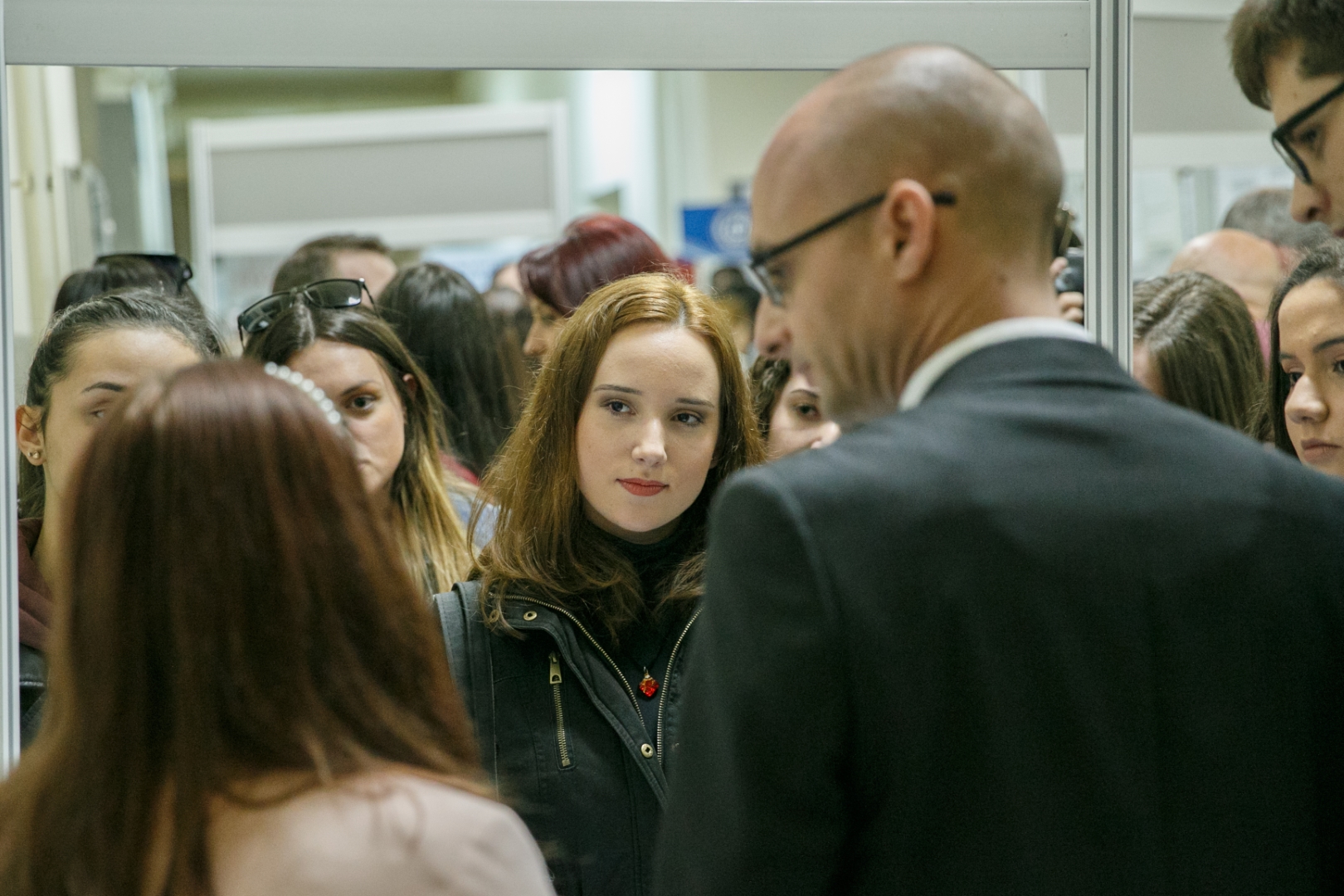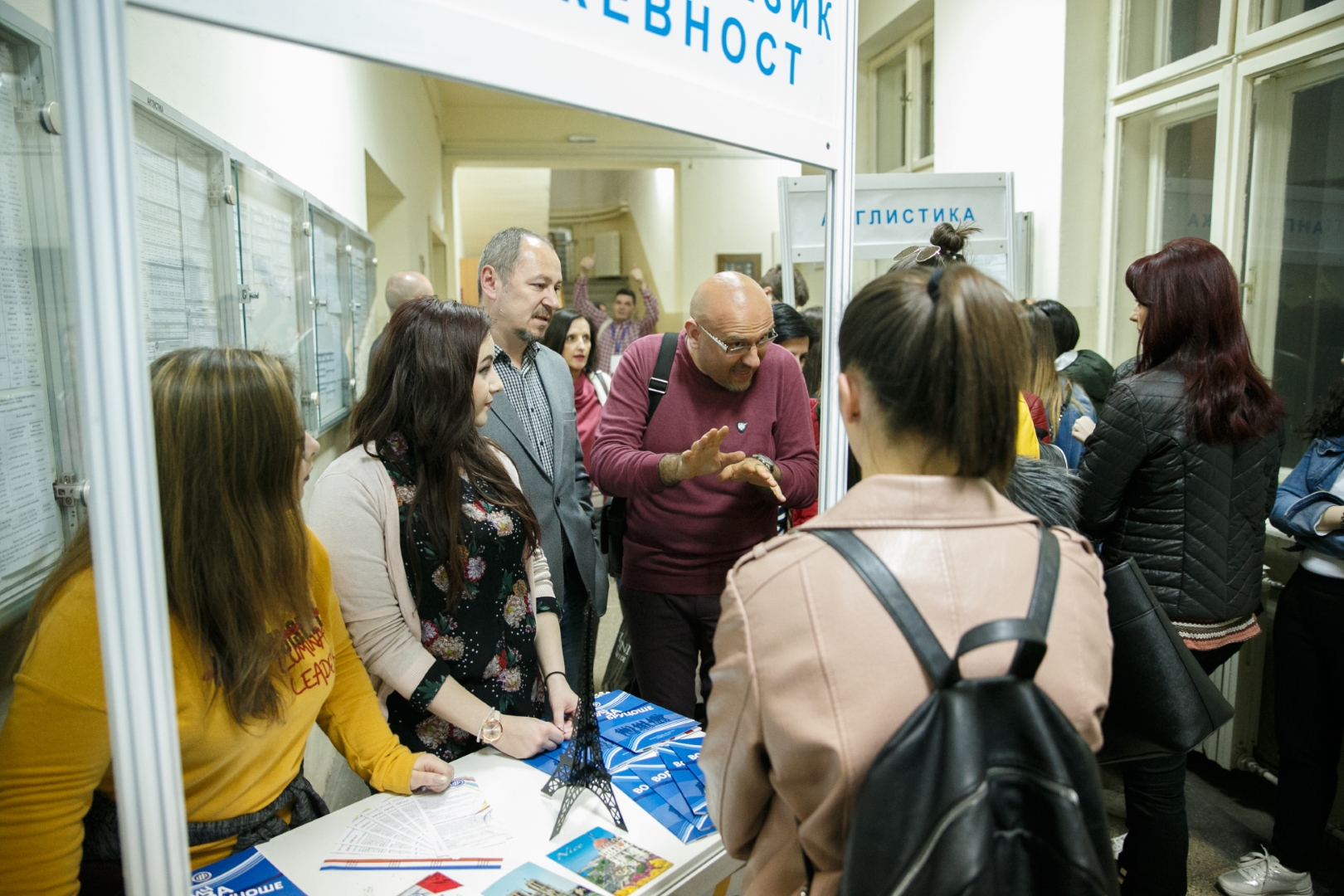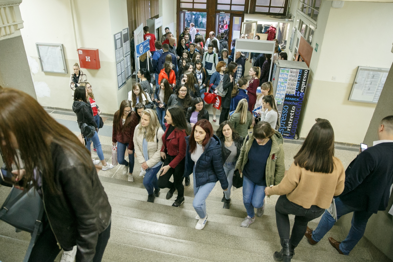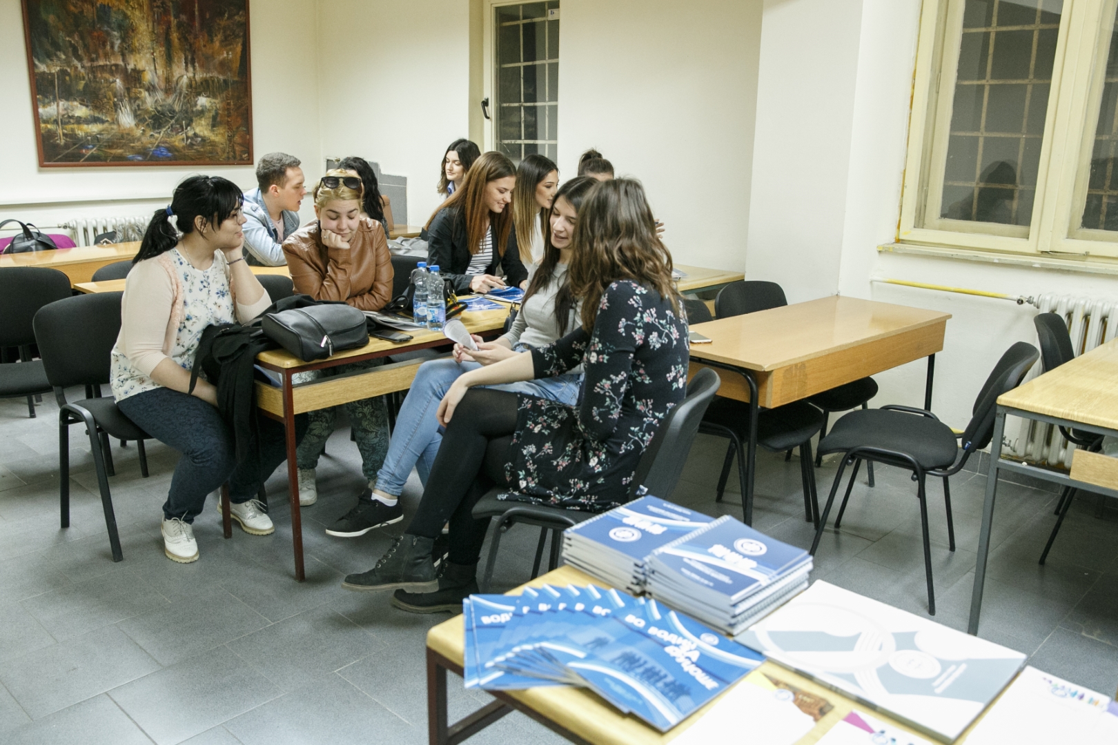 Након тога, наши гости су добили прилику да прошетају холом Факултета, где смо направили мини сајам образовања, како би у директном разговору са наставницима и сарадницима сазнали све што их интересује у вези са жељеним студијским програмима.