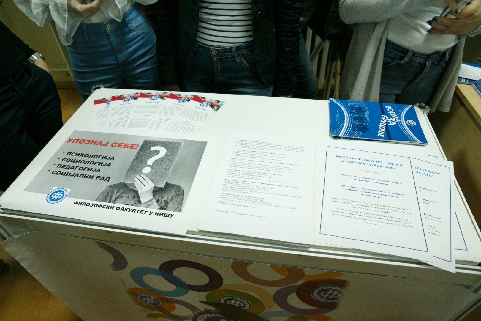 Осим тога, за ову прилику смо припремили и низ забавних и интерактивних садржаја. Тако су у полиглот клубу са нашим студентима разговарали на енглеском, немачком, француском и руском, „прошетали“ вредним историјским мапама Ниша, учествовали у квизу знања, видели Вука Караџића кроз холограмску поставку, „филозофирали“ са нашим студентима филозофије и одговарали на питања из апликације, кроз низ психолошких, педагошких и социолошких тестова научили нешто ново о себи, док су са студентима социјалне политике и социјалног рада разговарали о садашњим и будућим акцијама.