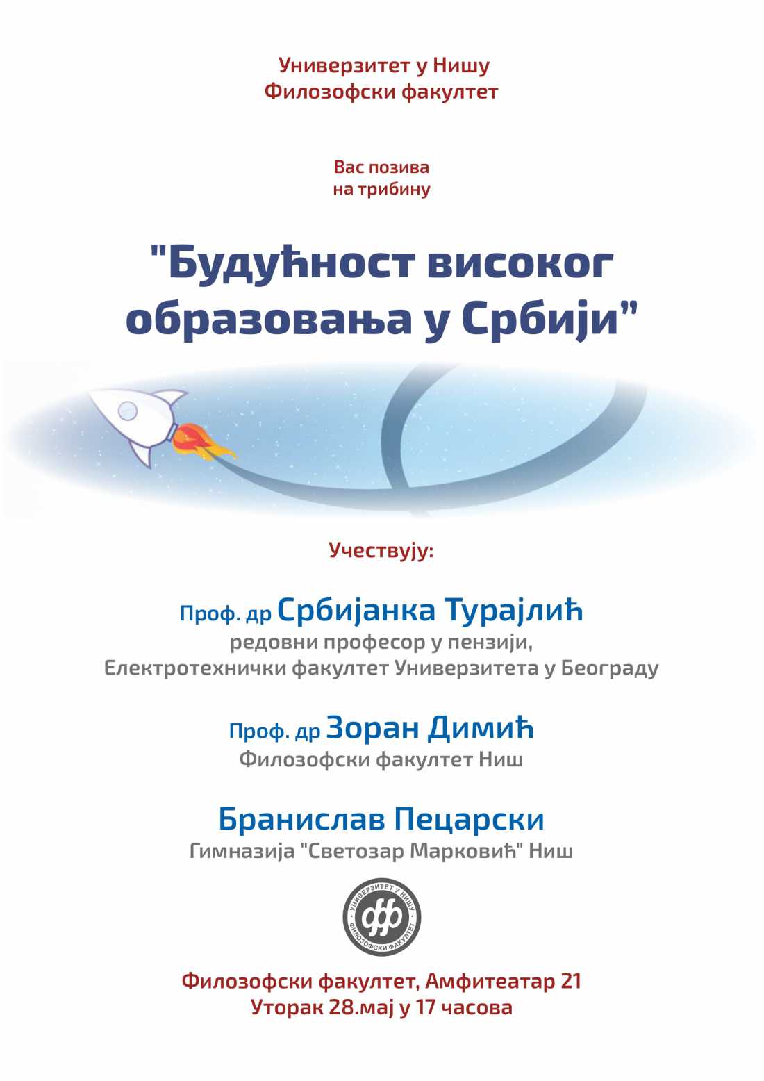 Филозофски факултет у Нишу организује трибину на тему Будућност високог образовања у Србији.