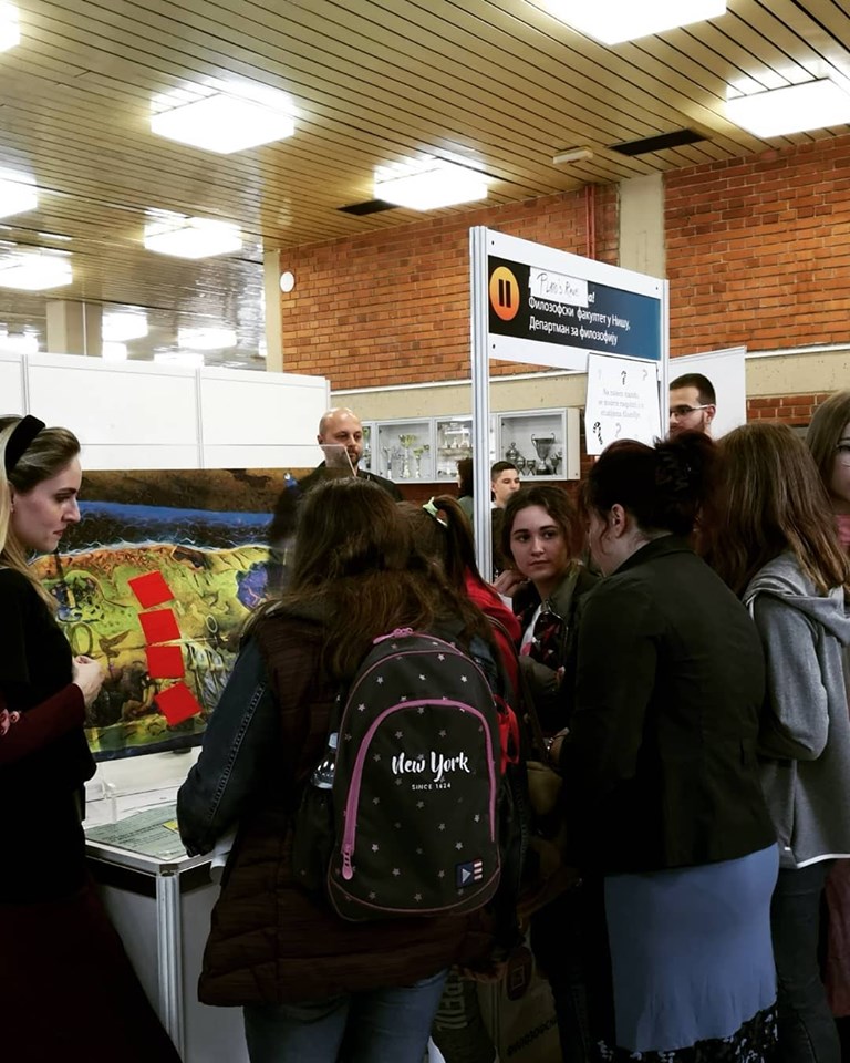 Да филозофија итекако може бити интересантна показале су колеге са овог студијског програма. Они су креирали интерактивну Платонову пећину из које сте могли изаћи играњем занимљиве игре која се заснива на питањима и одговорима о научним чињеницама и заблудама. Пролазници кроз пећину су, тако, на забаван начин стекли бројна сазнања која ће им умногоме бити корисна.