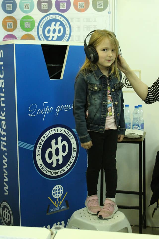 Тако су током ова два дана основци, средњошколци, али и сви љубитељи науке могли да прођу кратку обуку из телевизијског новинарства, савладају основне технике интервјуа, а потом добију ексклузивну прилику да интервјуишу холограм Вука Караџића и сазнају занимљиве детаље из његовог живота и рада. Ову поставку осмислиле су и реализовале колеге са департмана за комуникологију и новинарство и департмана за српски језик и српску и компаративну књижевност.