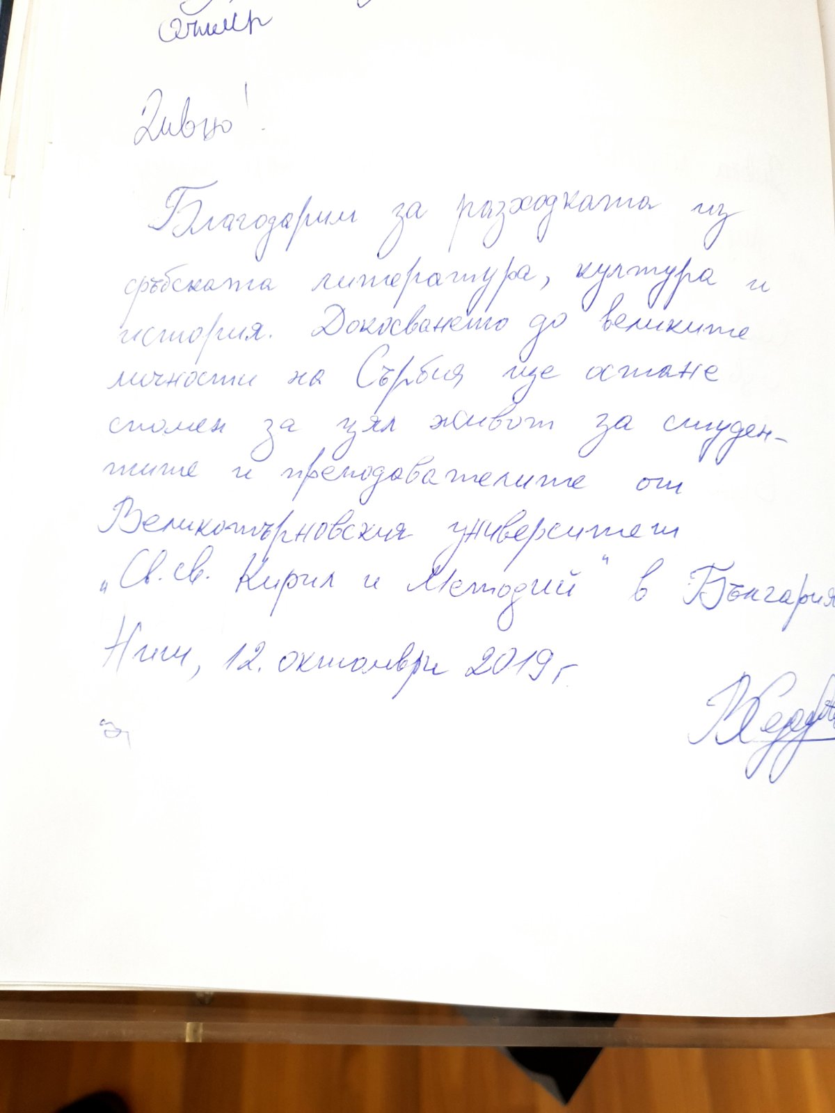 Од 10. до 13. октобра Филозофски факултет је био домаћин наставницима, сарадницима и студентима Филолошког факултета Универзитета „Св. Ћирило и Методије” из Великог Трнова. Госте из Бугарске су 10. октобра дочекале деканица Филозофског факултета проф. др Наталија Јовановић, доц. др Јелена Јовановић и асистенткиња Јелена Младеновић у име организатора скупа, Департмана за српску и компаративну књижевност и Департмана за српски језик. Бугарске студенте примили су студенти Србистике и Руског језика и књижевности, а поздравио их је и студент ДАС историје Милан Виденовић, у име Савеза студената Филозофског факултета.