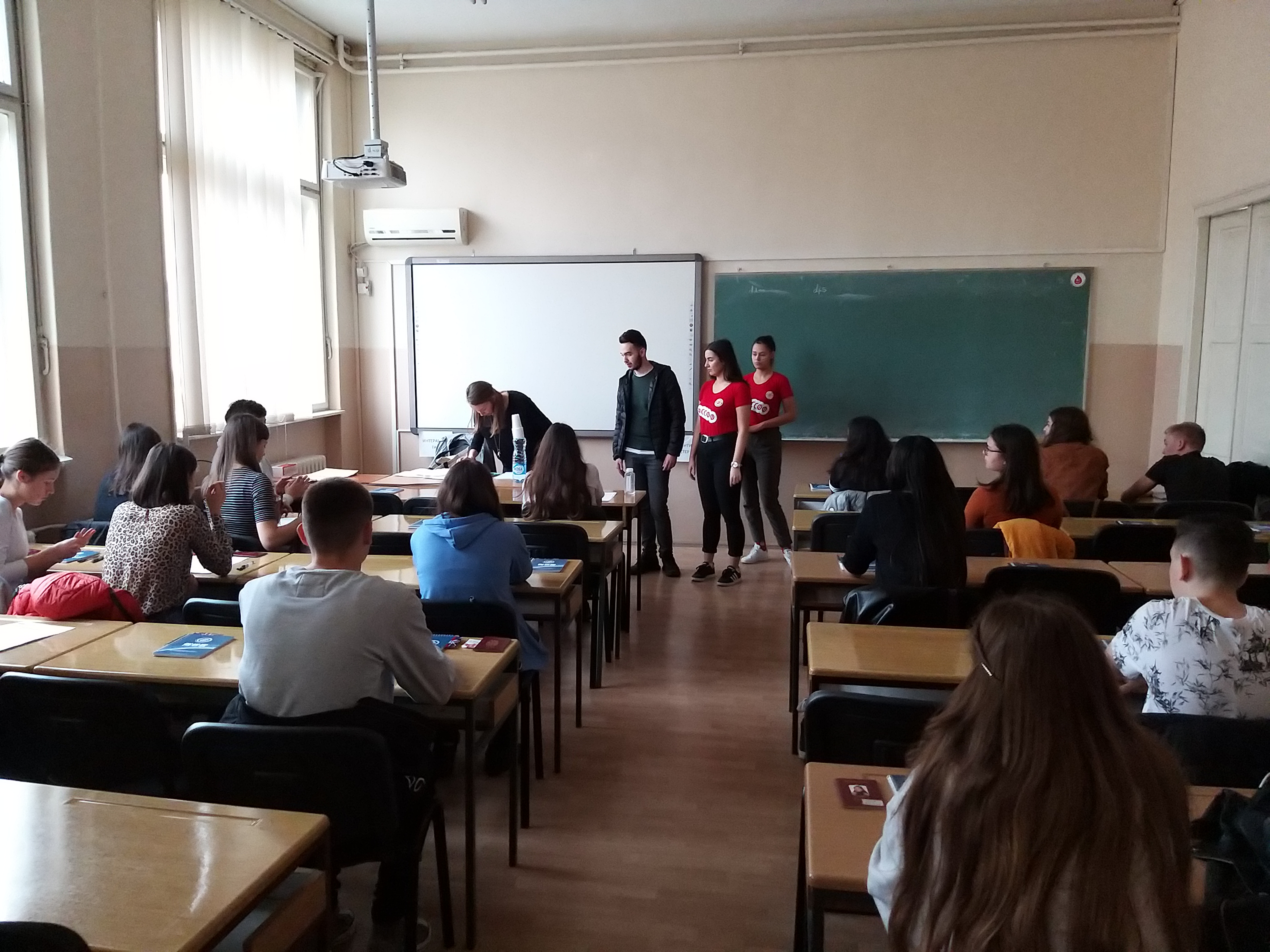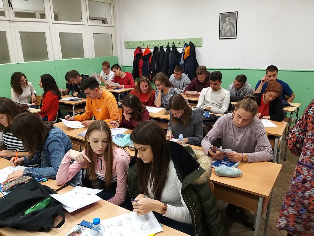 Наредног дана посетили смо Гимназију Светозар Марковић, где је Љиљана Михајловић, виши лектор са Департмана за англистику одржала час USE of English ученицима четвртог разреда гимназије. Циљ је био да средњошколци из прве руке виде како би изгледао један од часова језика на првој години студија на нашем департману. Након дискусије и већег броја активности (већим делом у мањим групама), средњошколцима је представљен студијски програм на Департману за англистику. Такође, имали су прилику да током паузе попричају и са нашим волонтерима, студентима треће године, од којих су могли да добију и додатне информације.