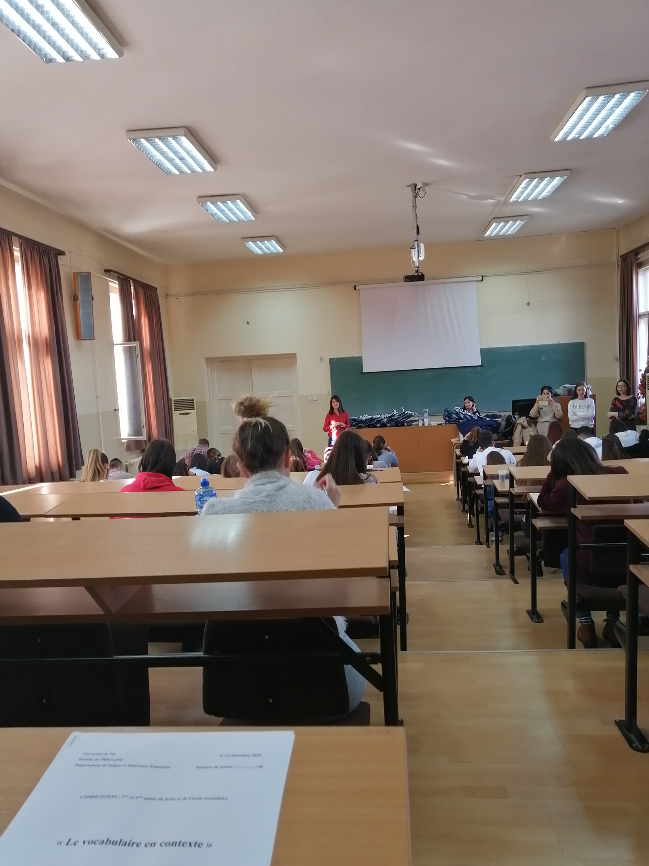 Mесец Департмана за француски језик и књижевност обележила је још једна активност - такмичење у знању француског језика на којем је учествовало 60 ученика трећег и четвртог разреда Гимназија "Светозар Марковић и "Бора Станковић", Прве нишке гимназије "Стеван Сремац" као и из Угоститељско-туристичке школе у Нишу, Медицинске школе у Врању, Техничке школе у Бојнику и Средње школе у Кладову.