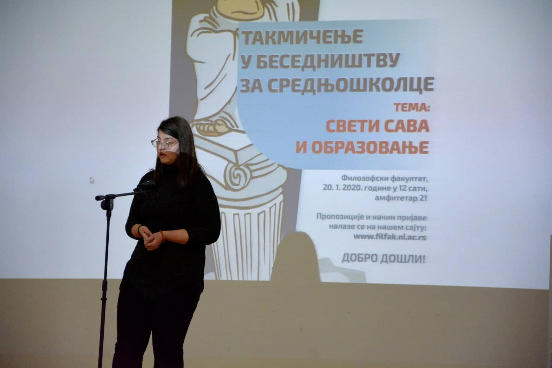 Публика није остала равнодушна, а жири у саставу проф. др Иван Цветановић, доц. др Бранимир Станковић и Душан Алексић имали су тежак задатак да се одлуче за три најбоље беседе. Према њиховим речима, одлучивале су нијансе, а победу на овом првом такмичењу однела је Ксенија Димитријевић, ученица Правно-пословне школе из Ниша за беседу Нешто ћу вам признати. Друго место припало је Марији Станковић, ученици Медицинске школе "Др Алекса Савић" у Прокупљу за беседу Моја молитва Светом Сави, док је трећепласирани Жељко Златковић, ученик Средње школе "Прокоповић" у Нишу чија беседа носи назив О значају доброг учитеља.