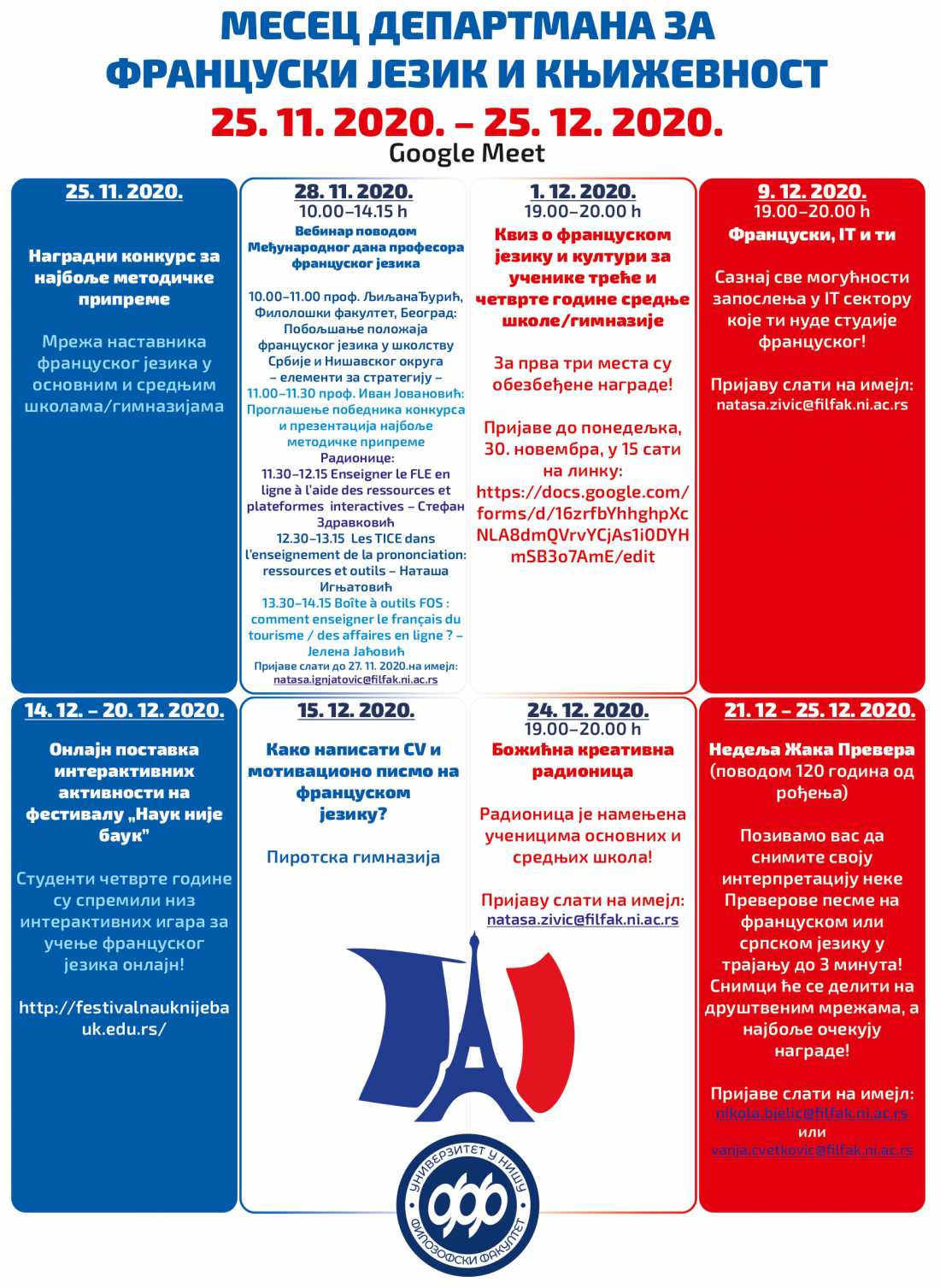 Департман за француски језик и књижевност, у оквиру месеца департмана, организоваће низ активности посвећених овом језику.