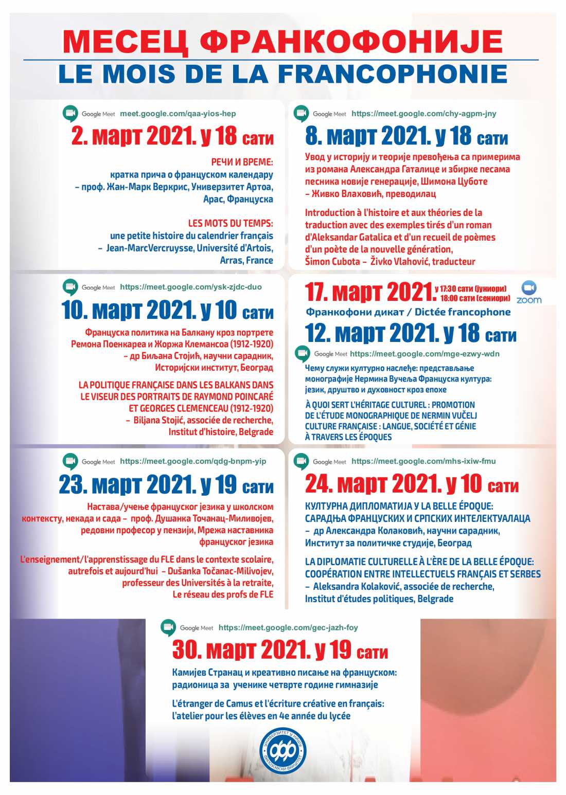 Позивамо вас да узмете учећшће у богатом програму који смо и овог марта месеца припремили за све нас. Све активности су онлајн, а детаљан програм и линкове за укључења можете наћи у прилогу.