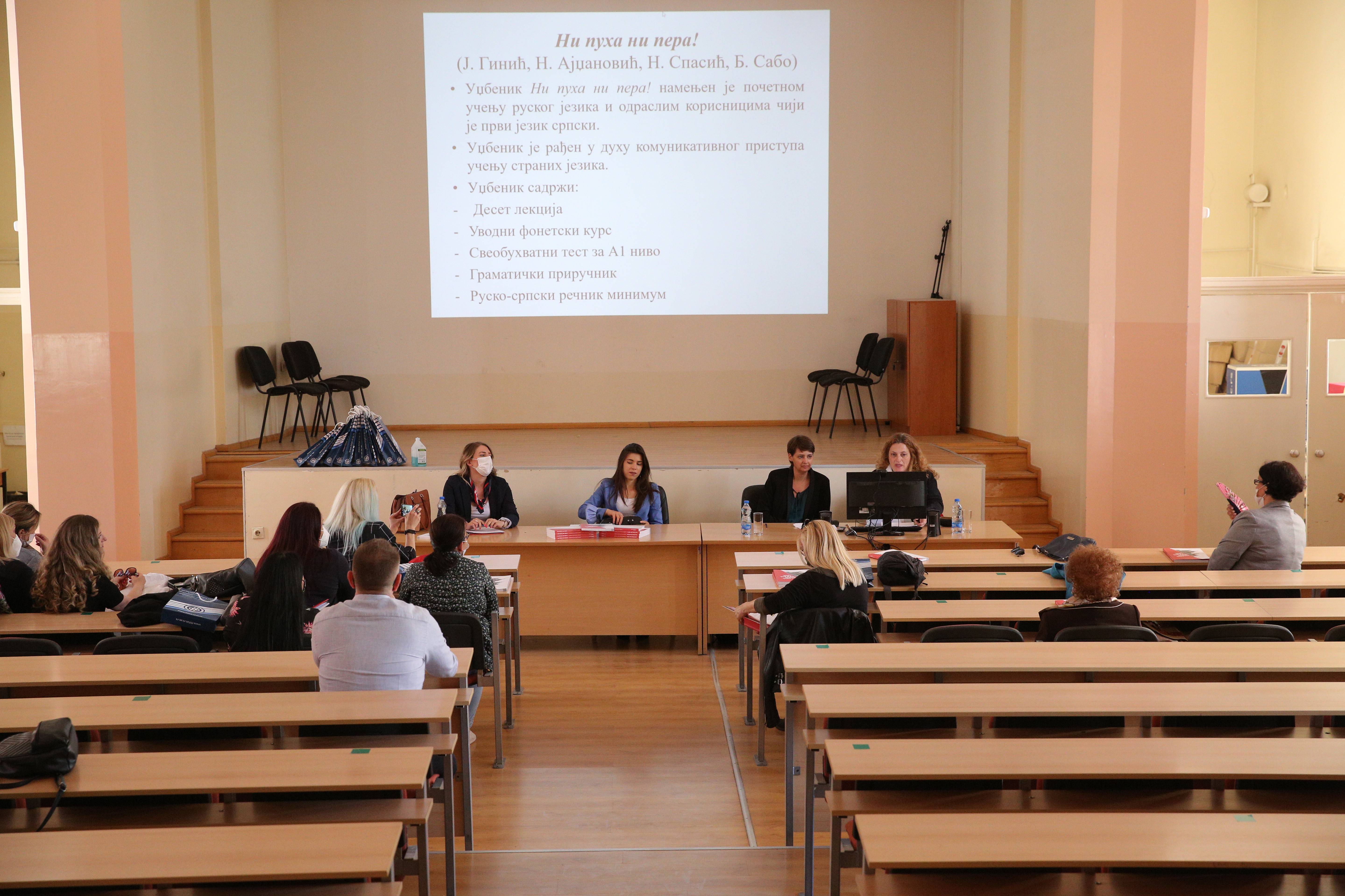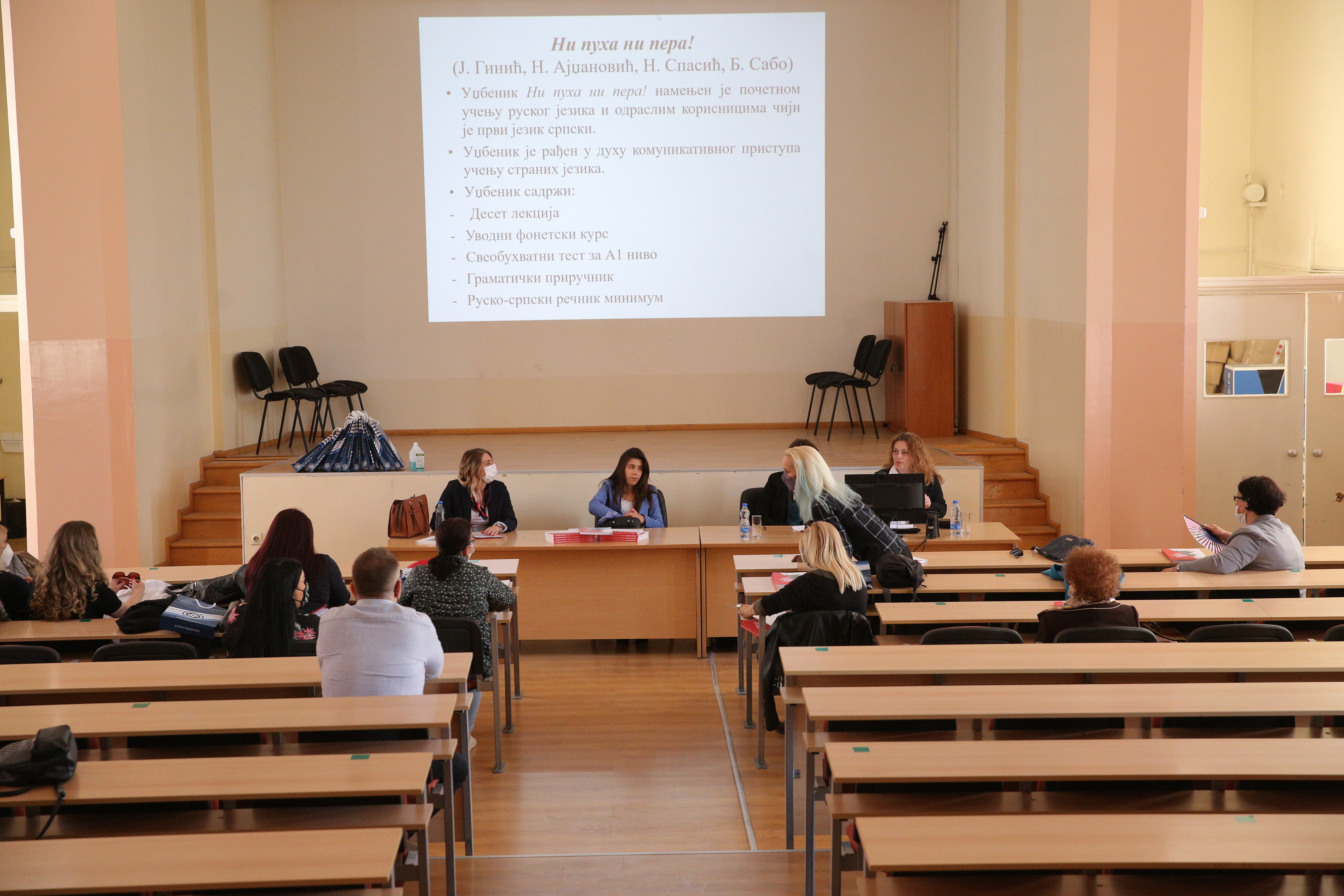 Повод за једно овакво окупљање свакако је била и промоција најновијег уџбеника руског језика Ни пуха ни пера ауторки Јелене Гинић, Наташе Ајџановић, Ненада Спасића и Бојане Сабо, који ће заузети значајно место у наставном програму и литератури на Департману за руски језик и књижевност. Промоцији су присуствовали и наставници из Мреже наставника руског језика којима је овом приликом поменути уџбеник и уручен, док су за уметнички део програма били задужени студенти руског језика и књижевности.