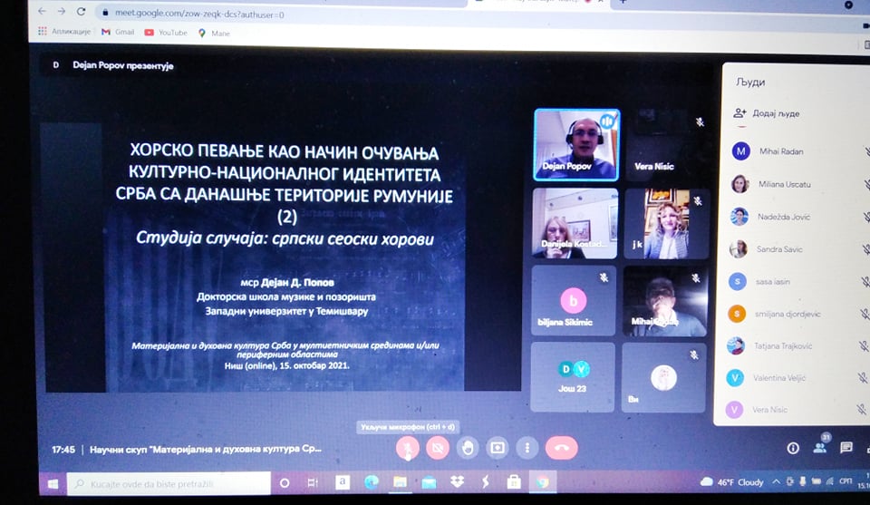 Континуитет сарадње Департмана за србистику Филозофског факултета у Нишу са Западним универзитетом у Темишвару и Савезом Срба у Румунији одржава се и организовањем научног скупа „Материјална и духовна култура Срба у мултиетничким срединама и/или периферним областима". Упркос отежавајућим околностима изазваних епидемијом, 15. 10. 2021. године у онлајн-форми одржан је осми међународни научни скуп регионалног карактера, на којем је своја научна истраживања разменило тридесет четворо учесника из Босне и Херцеговине, Србије и Румуније. Пленарни предавачи осмог научног скупа „Материјална и духовна култура Срба у мултиетничким срединама и/или периферним областима" били су проф. др Јордана Марковић, проф. др Михај Радан, доц. др Миљана Радмила Ускату и декан Филозофског факултета Универзитета у Источном Сарајеву проф. др Драга Мастиловић. Научни скуп отворили су проф др Владимир Хедрих, продекан за међународну сарадњу Филозофског факултета у Нишу, Огњан Крстић, председник Савеза Срба у Румунији, проф. др Михај Радан и проф. др Мирјана Илић, управник Департмана за србистику Филозофског факултета Универзитета у Нишу. У уводном делу научног скупа проф. др Горан Максимовић и проф. др Михај Радан у својству уредника представили су седми број часописа Исходишта/Originations, публикације у којој се континуирано објављују реферати са овог научног скупа.