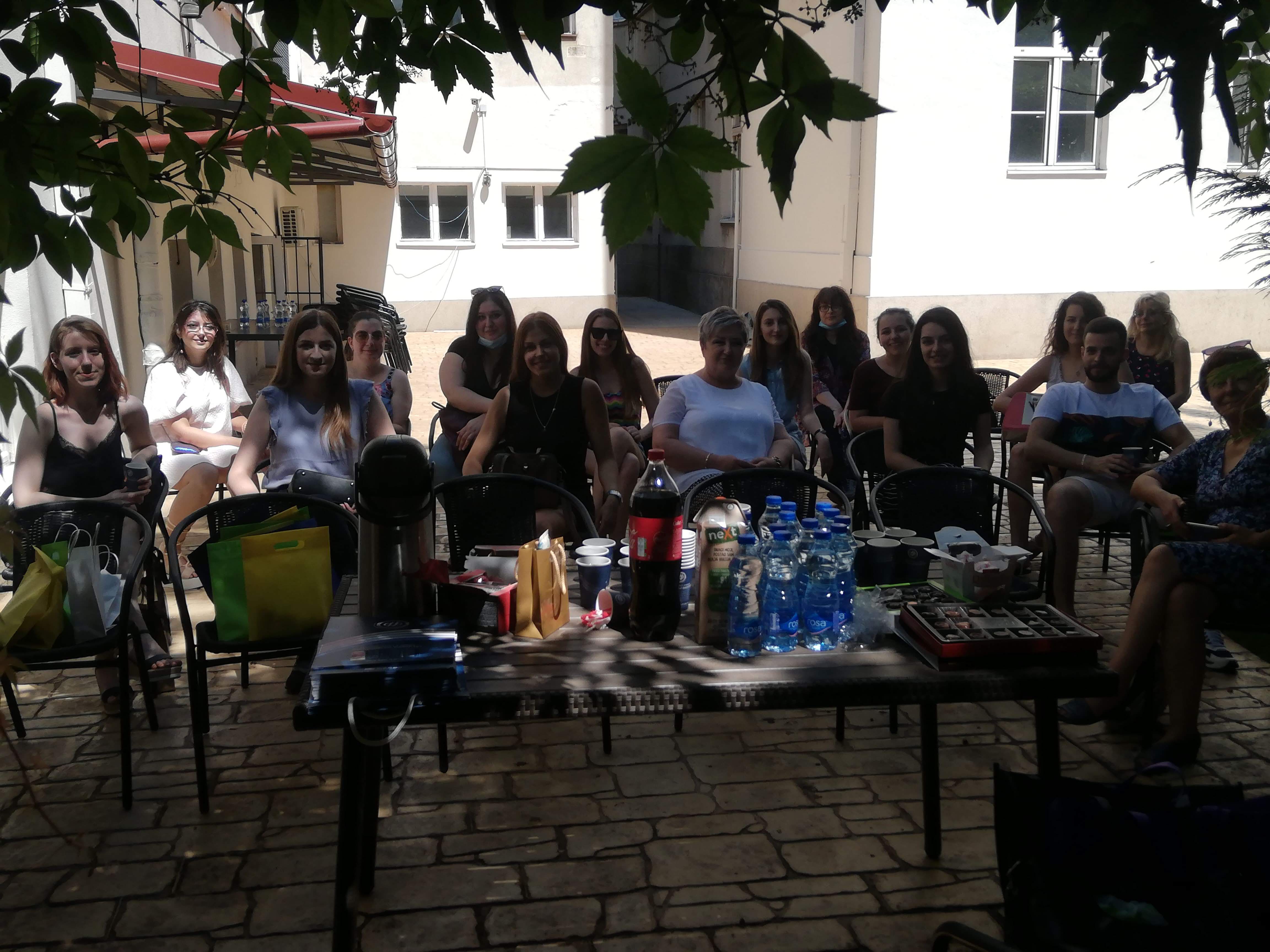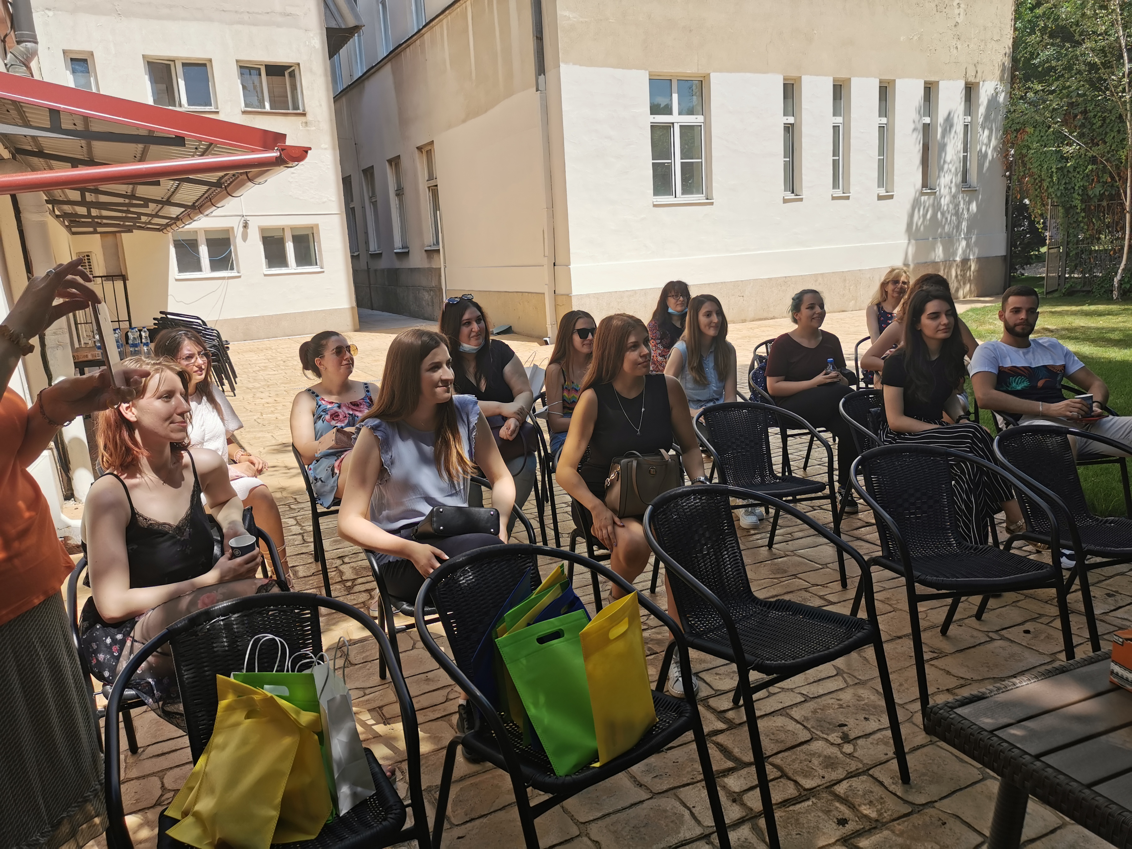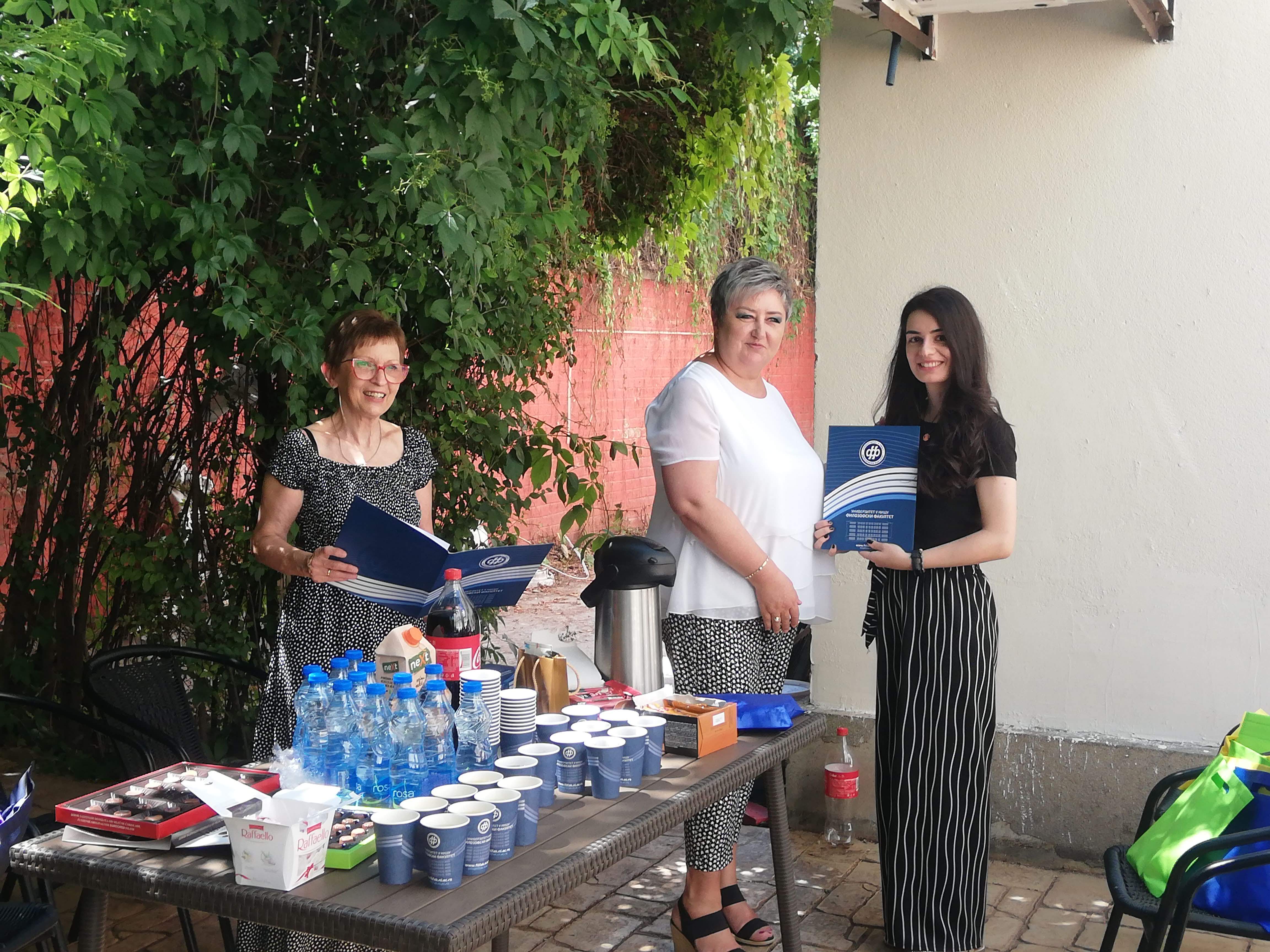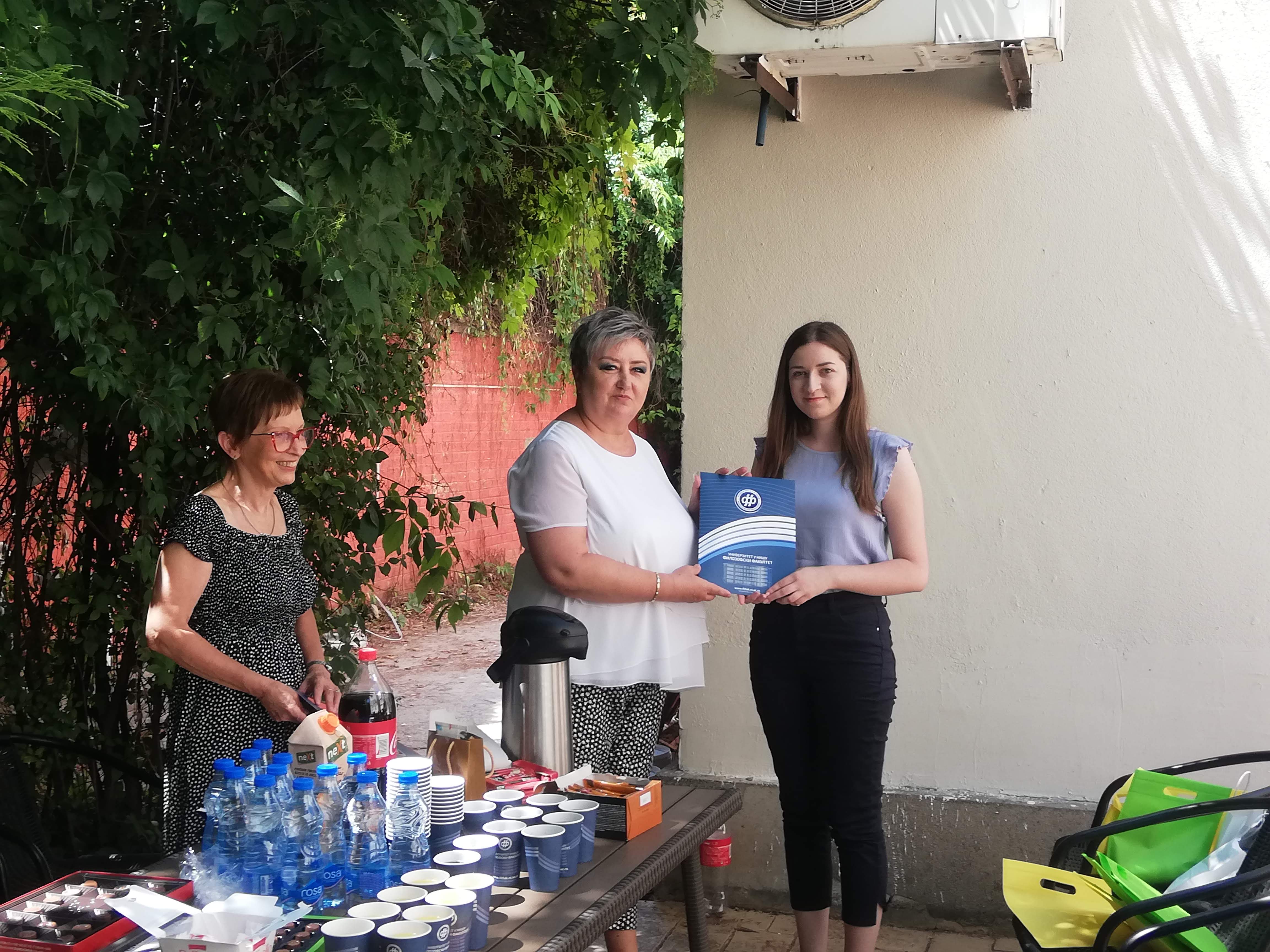 Након реализације два циклуса онлајн курсева енглеског језика, организован је пријем у башти Факултета, на коме је деканица Факултета, проф. др Наталија Јовановић, у присуству Тамаре Симоновић из Индига, студентима уручила сертификате о учешћу у овом пројекту.