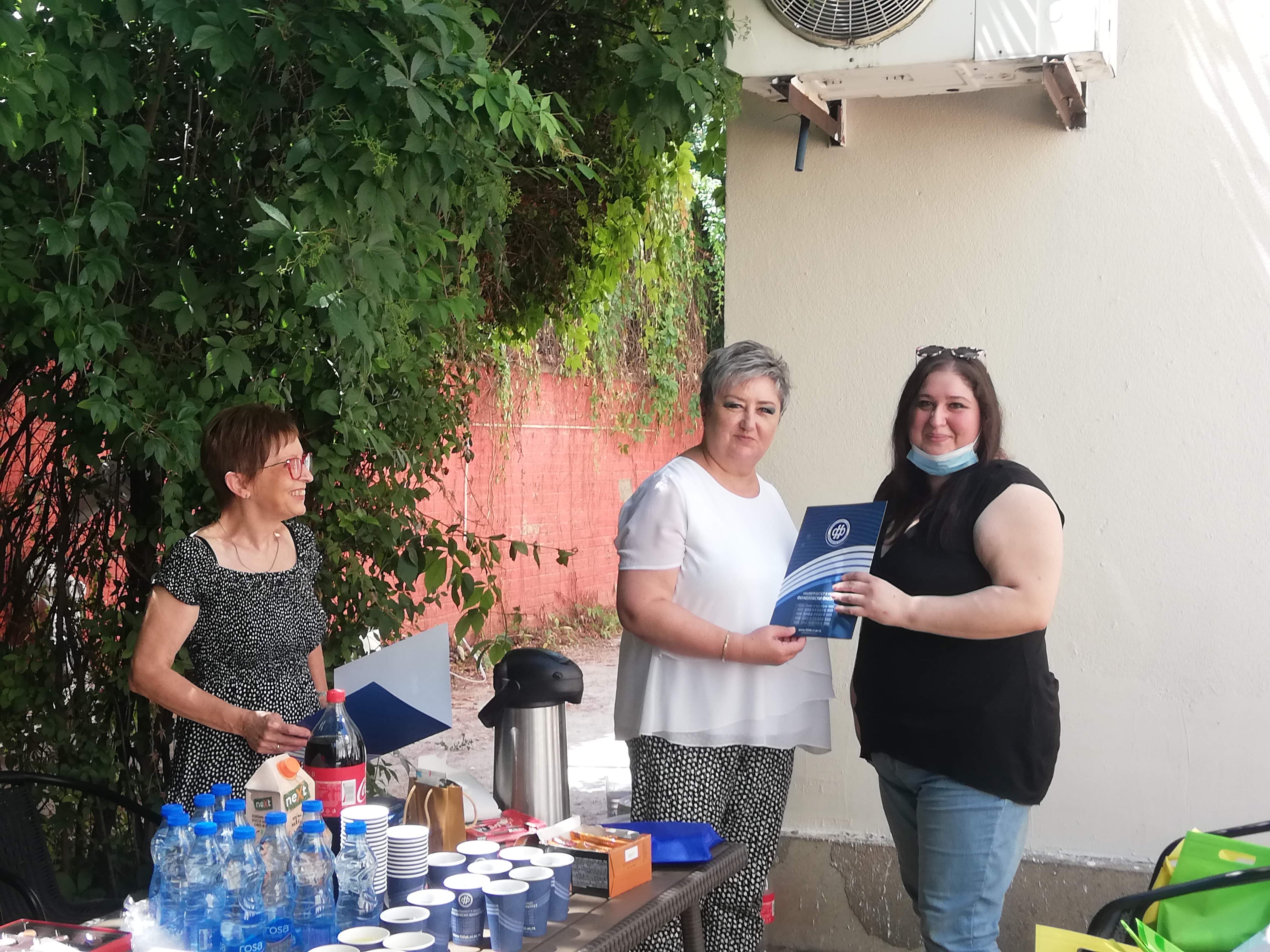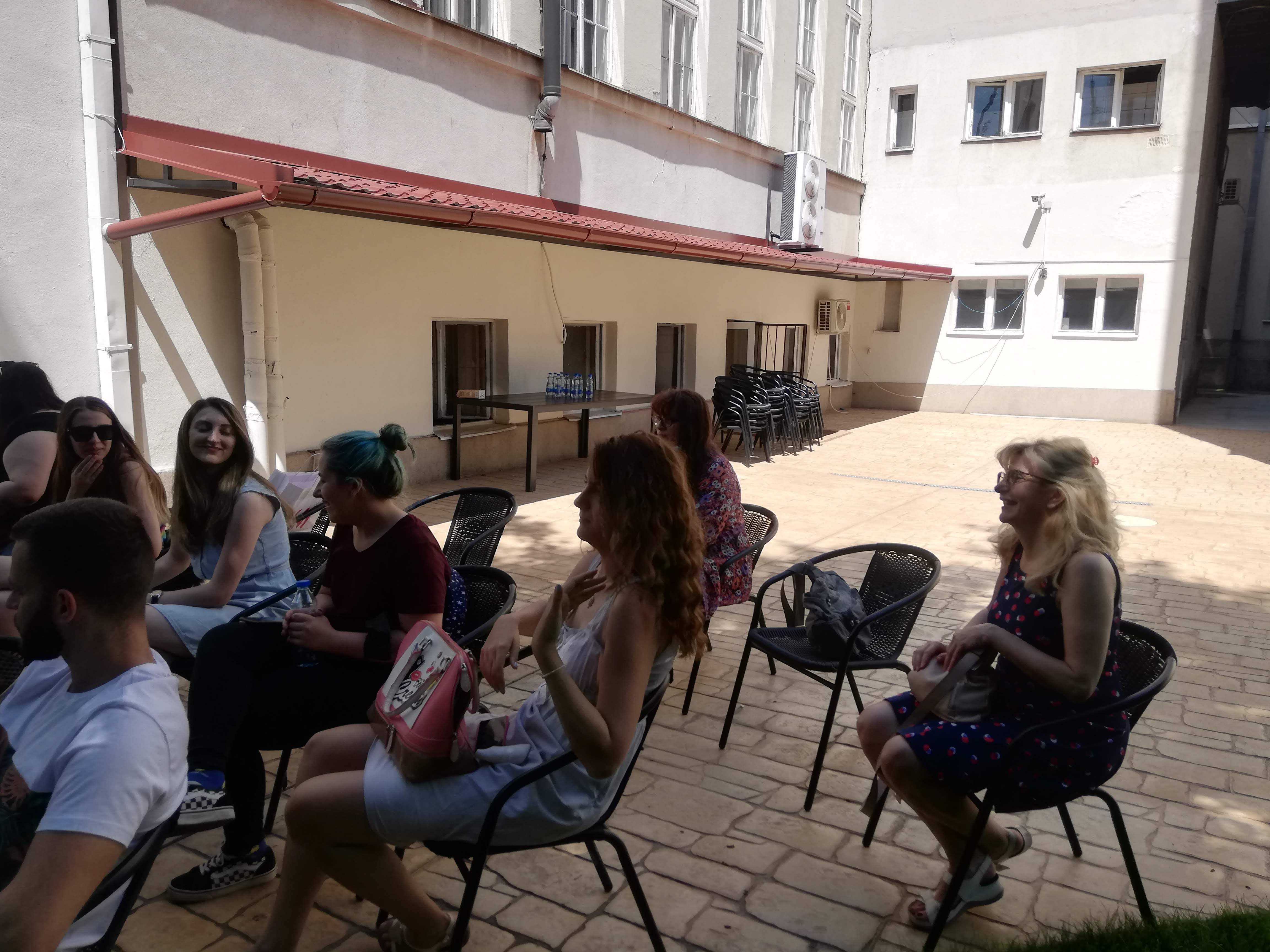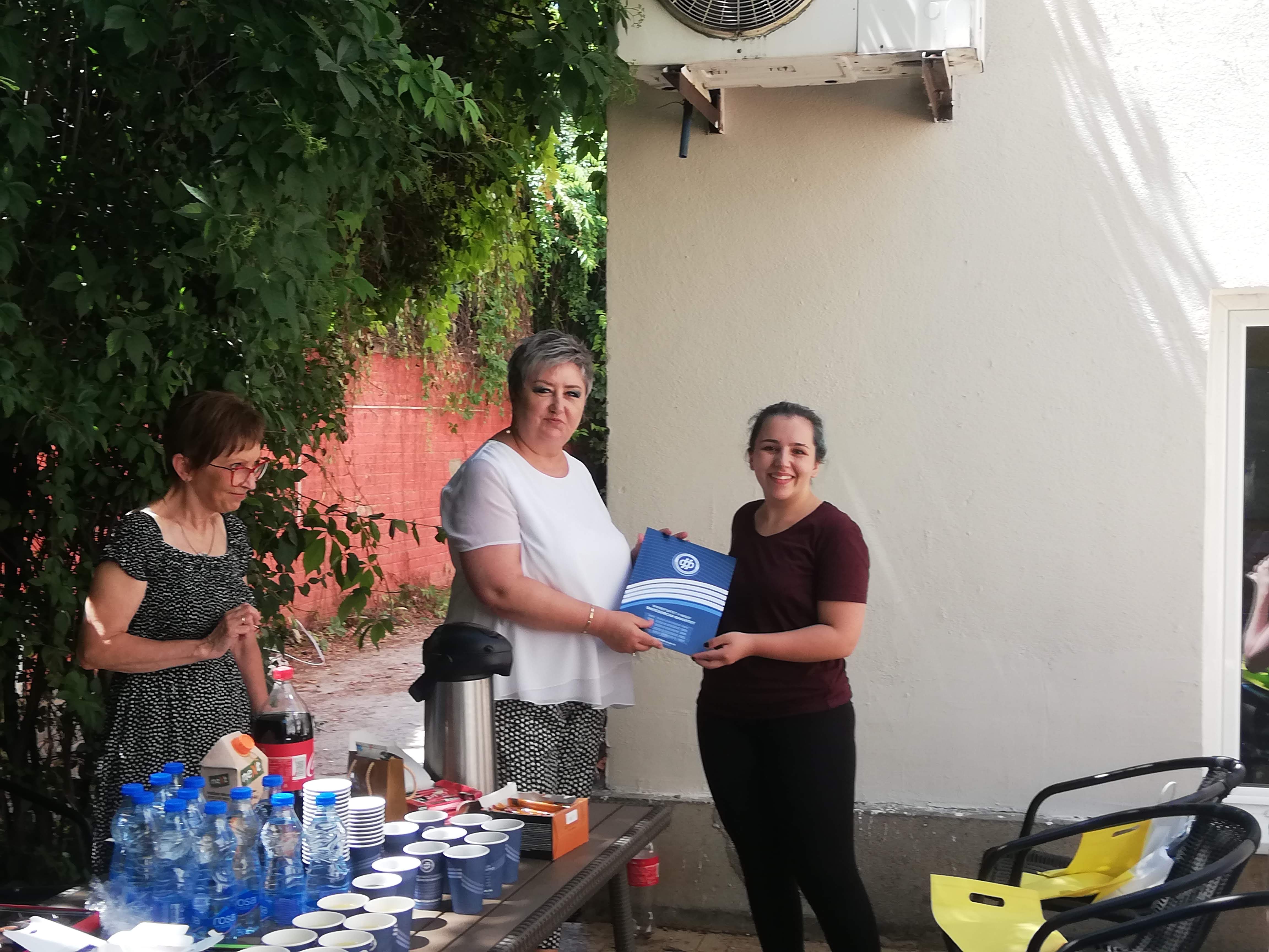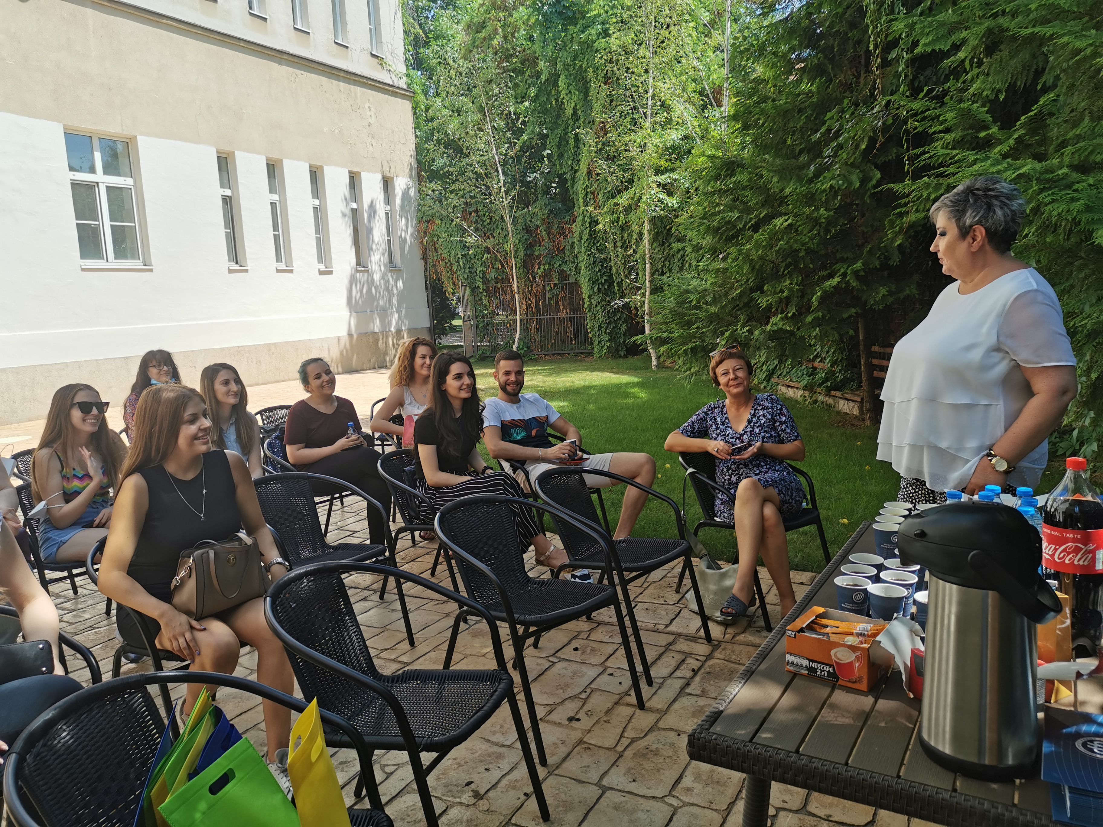 Након реализације два циклуса онлајн курсева енглеског језика, организован је пријем у башти Факултета, на коме је деканица Факултета, проф. др Наталија Јовановић, у присуству Тамаре Симоновић из Индига, студентима уручила сертификате о учешћу у овом пројекту.