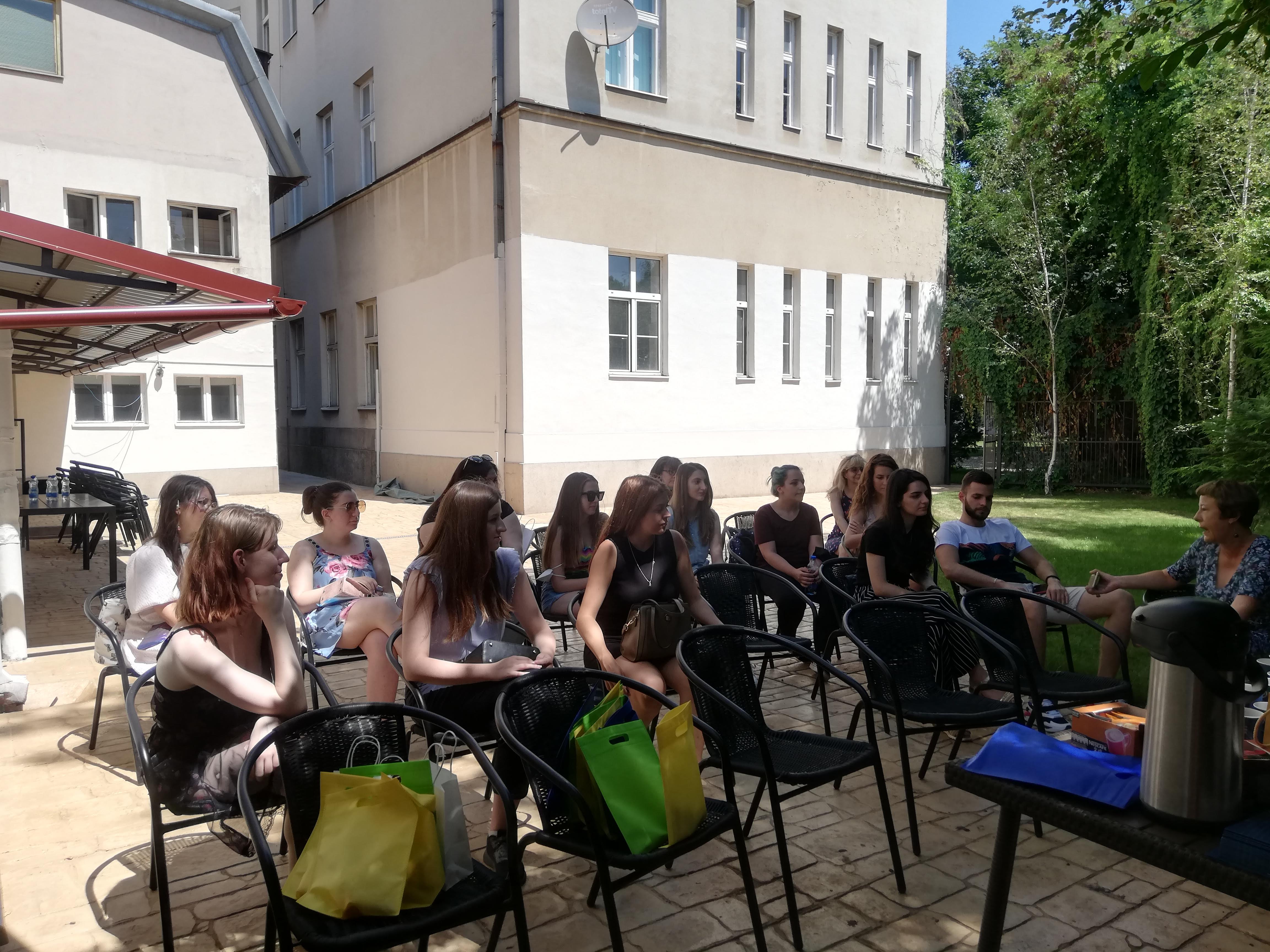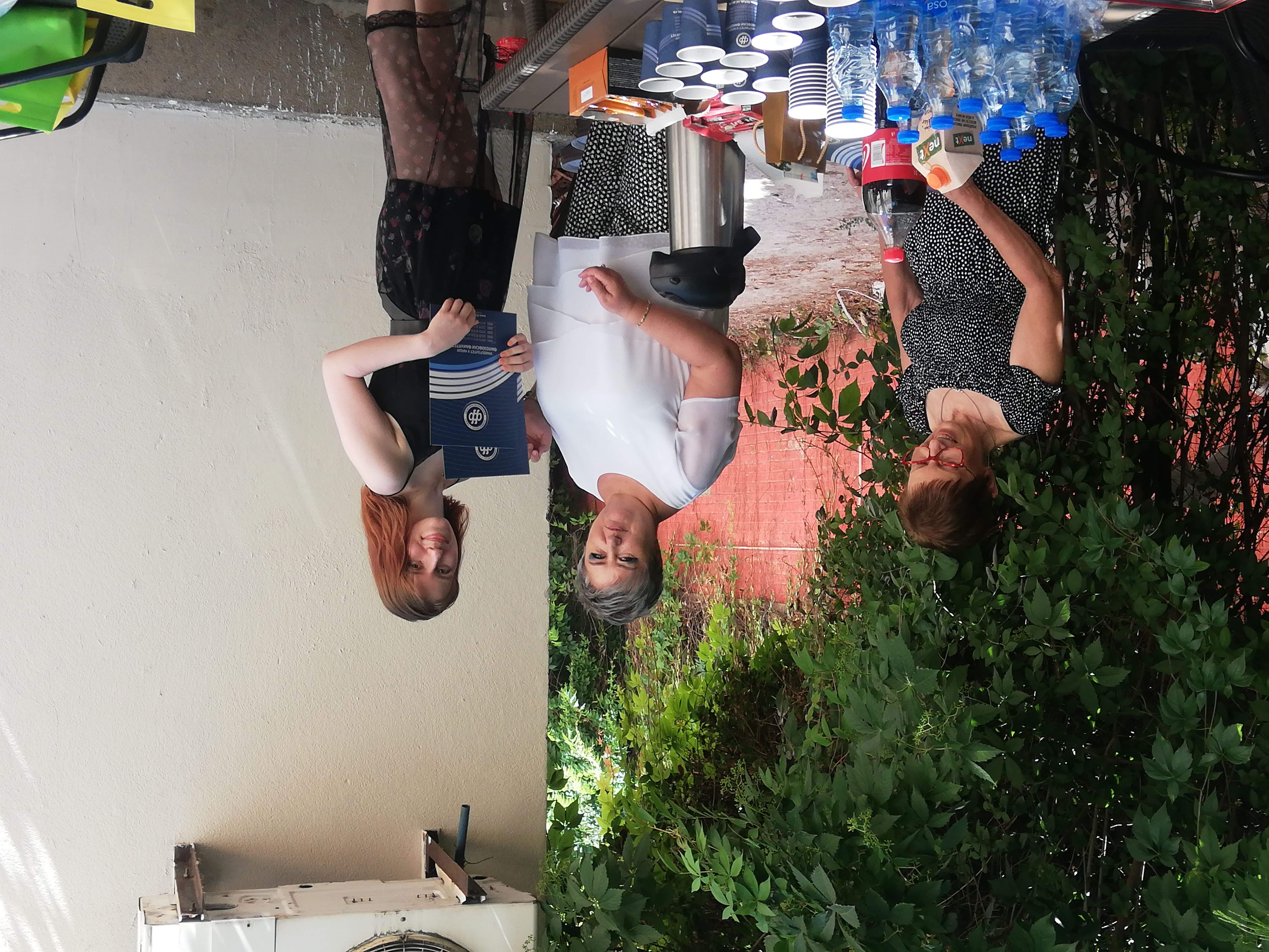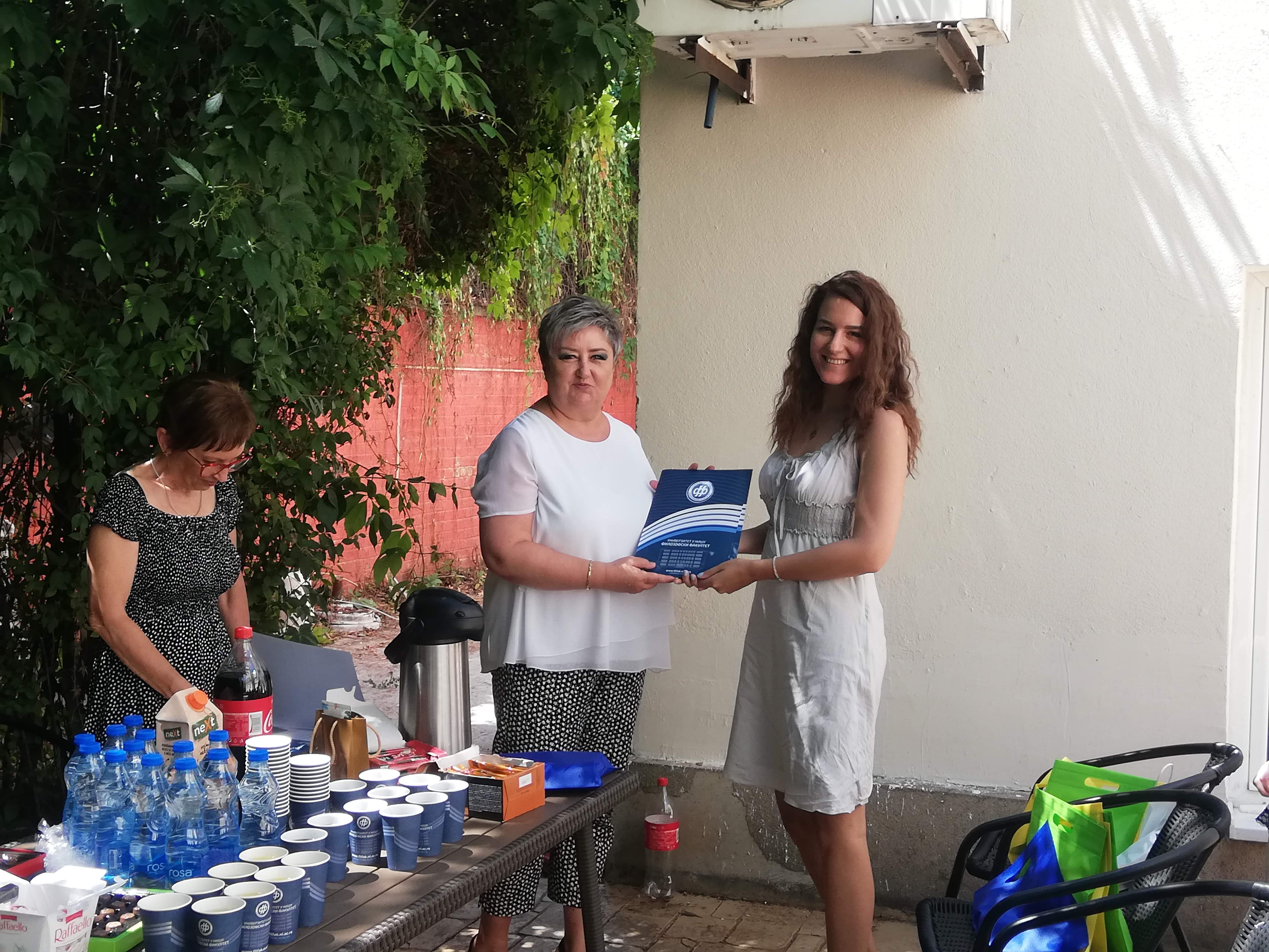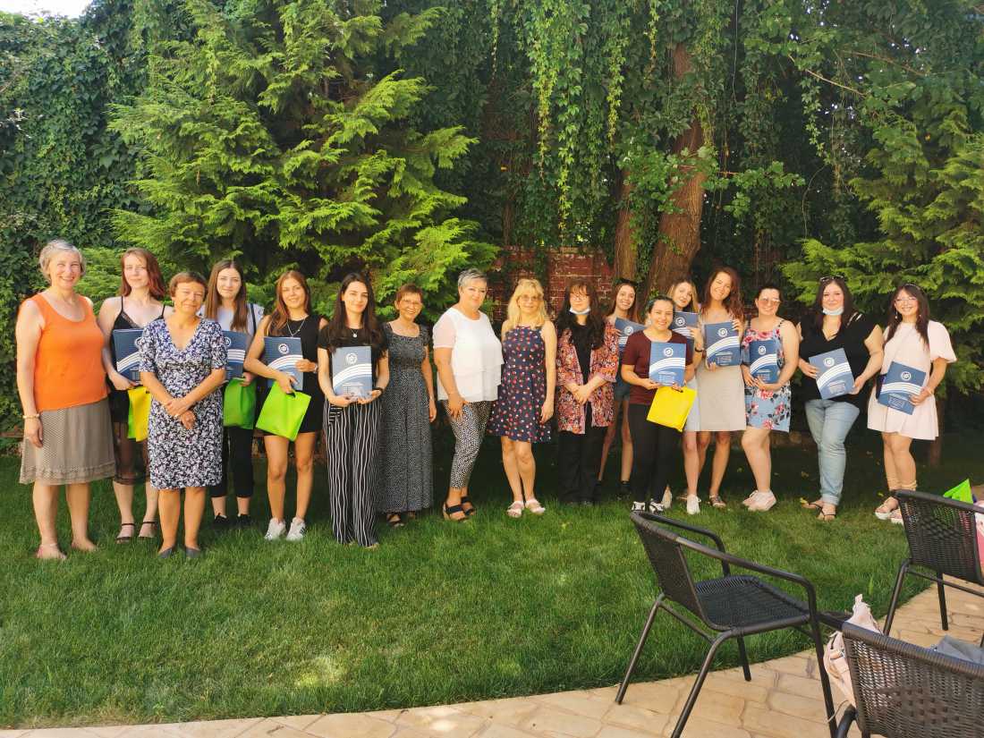 Након реализације два циклуса онлајн курсева енглеског језика, организован је пријем у башти Факултета, на коме је деканица Факултета, проф. др Наталија Јовановић, у присуству Тамаре Симоновић из Индига, студентима уручила сертификате о учешћу у овом пројекту.