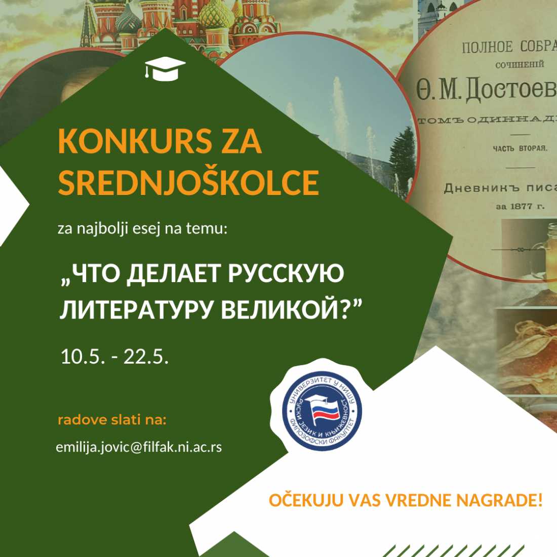Департман за руски језик и књижевност вас позива да учествујете на конкурсу за најбољи есеј на тему: