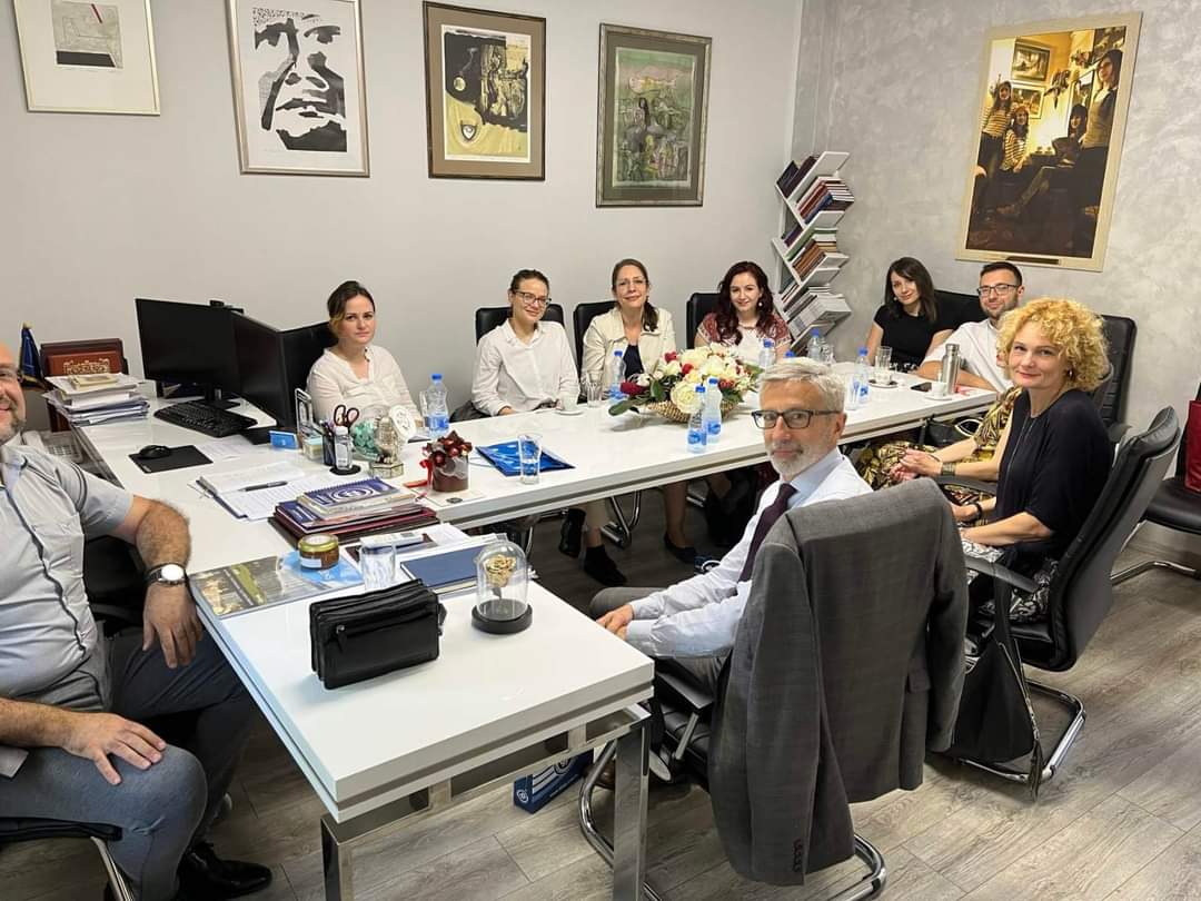 Управник Департмана за француски језик и књижевност, проф. др Иван Јовановић, истакао је да су подршка Амбасаде и сарадња са Француским институтом од велике важности за развој Департмана, док је њ.е.г. Пјер Кошар похвалио досадашња залагања Департмана и изразио захвалност због свега што је учињено за француски језик и саму Француску. Разговор је завршен у пријатељском тону, закључком да је овај сусрет додатно ојачао постојеће француско-српско пријатељство.