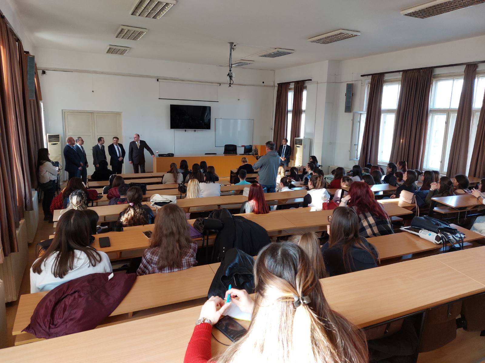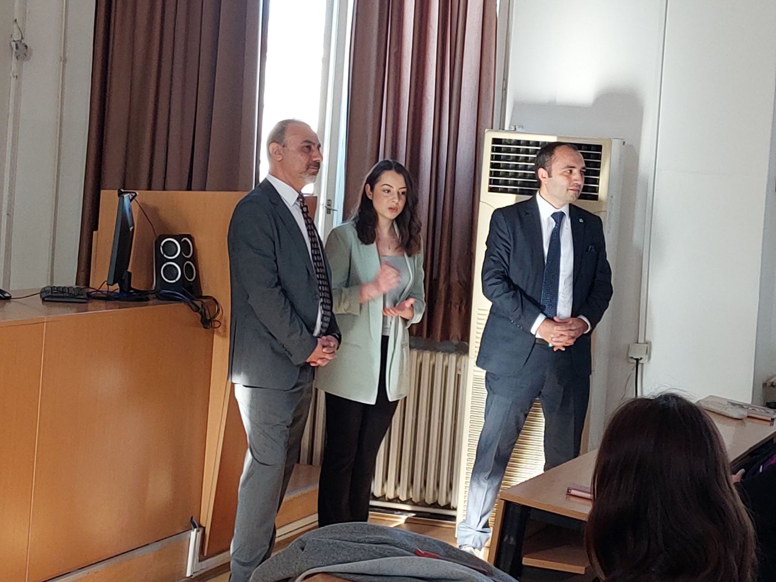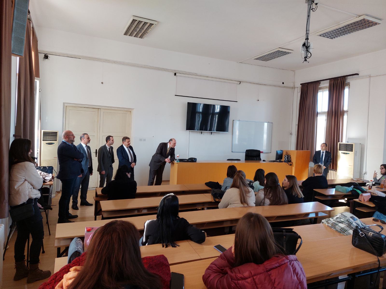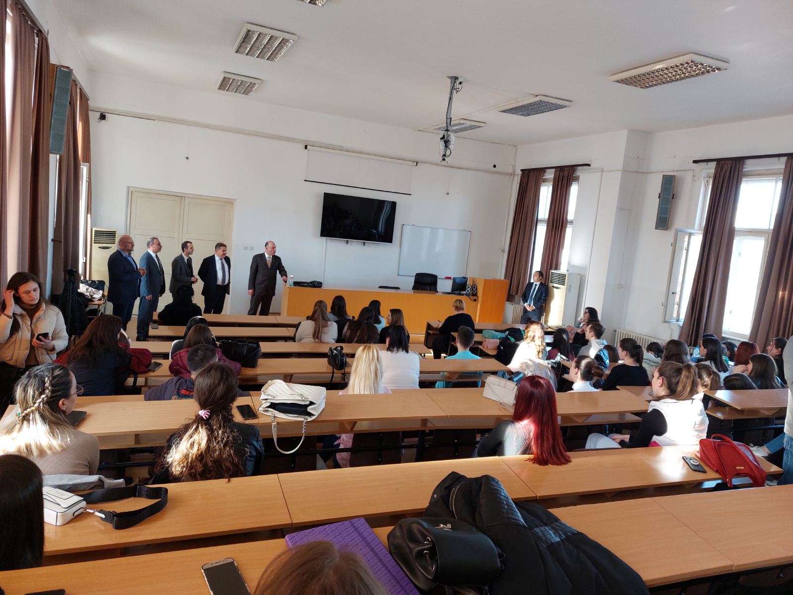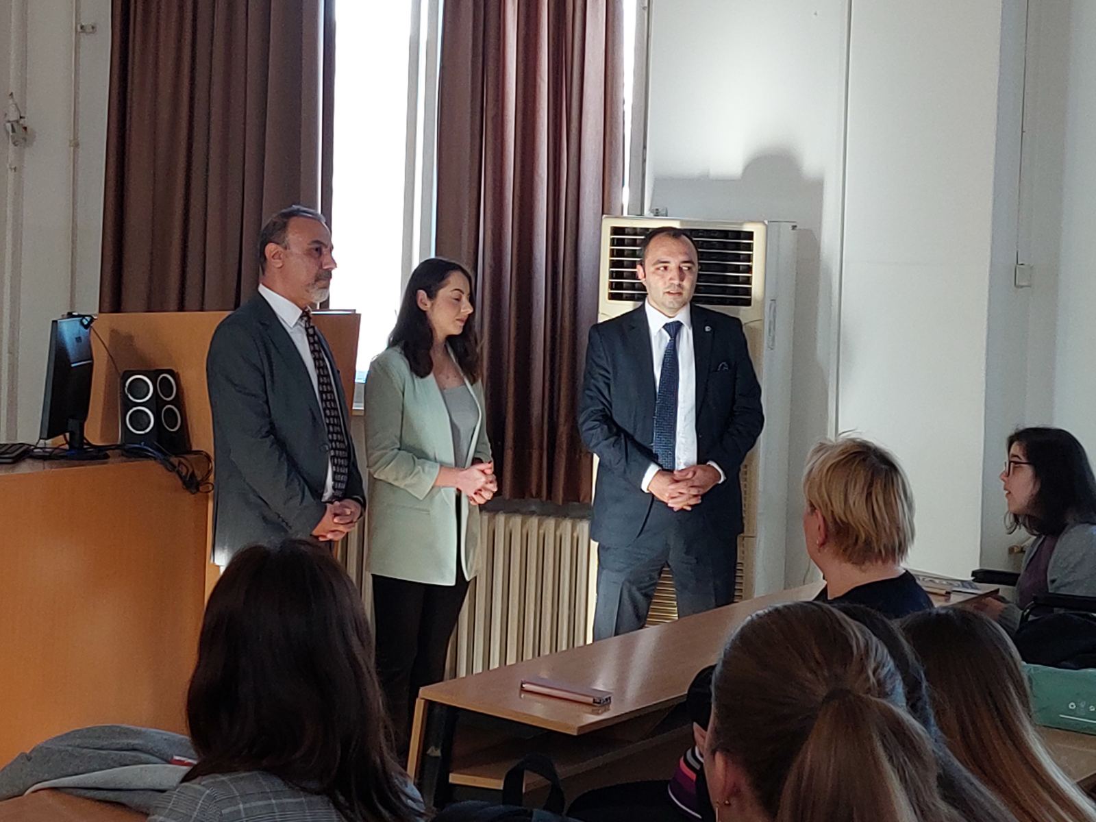 Под покровитељством Амбасаде Републике Турске у Београду прошле недеље је на Филозофском факултету почело извођење курса турског језика за студенте Филозфоског факултета. Будући да се за курс пријавило близу 200 студената, господин Кучукталасли и господин Јилмазата су желели да се упознају са полазницима и да их поздраве.