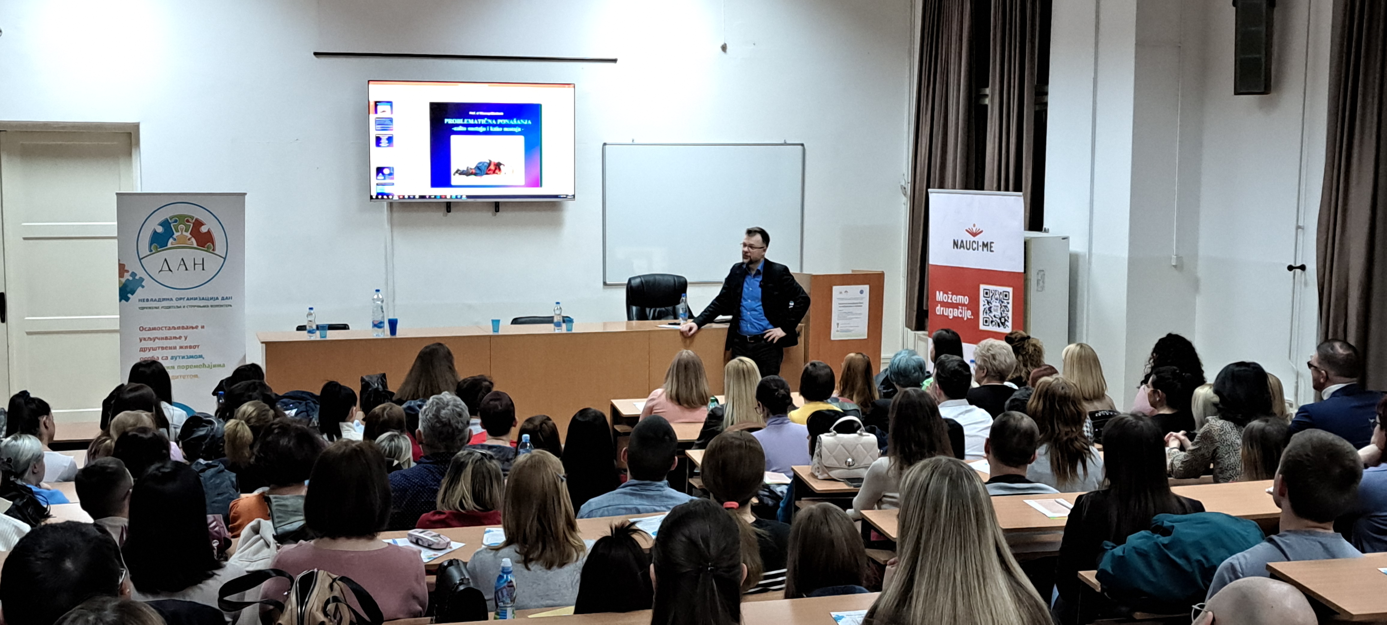 У оквиру недеље Департмана за социјалну политику и социјални рад 14. марта је одржано предавање на тему “Изазовна понашања код деце са развојним сметњама ” у сали 301 амфитеатра Филозофског факултета у Нишу. Предавање је реализовано у сарадњи са организацијама ”Дан” и ”Научи ме”. О изазовним, проблематичним понашањима, о томе зашто настају и како нестају говорили су проф. др Миодраг Станковић, специјалиста дечје и адолесцентне психијатарије и психотерапеут (Центар за заштиту менталног здравља УКЦ Ниш) и Тамара Ђорђевић, психолошкиња и психотерапеуткиња (Психолошки центар Психосфера). У пуном амфитеатру публика је била разнолика - родитељи, лични пратиоци, учитељи, школски психолози и педагози, ученици средњих школа, студенти и професори Филозофског факултета, специјализанти психијатрије, КБТ едуканти, психолози и психотерапеути, специјални едукатори.