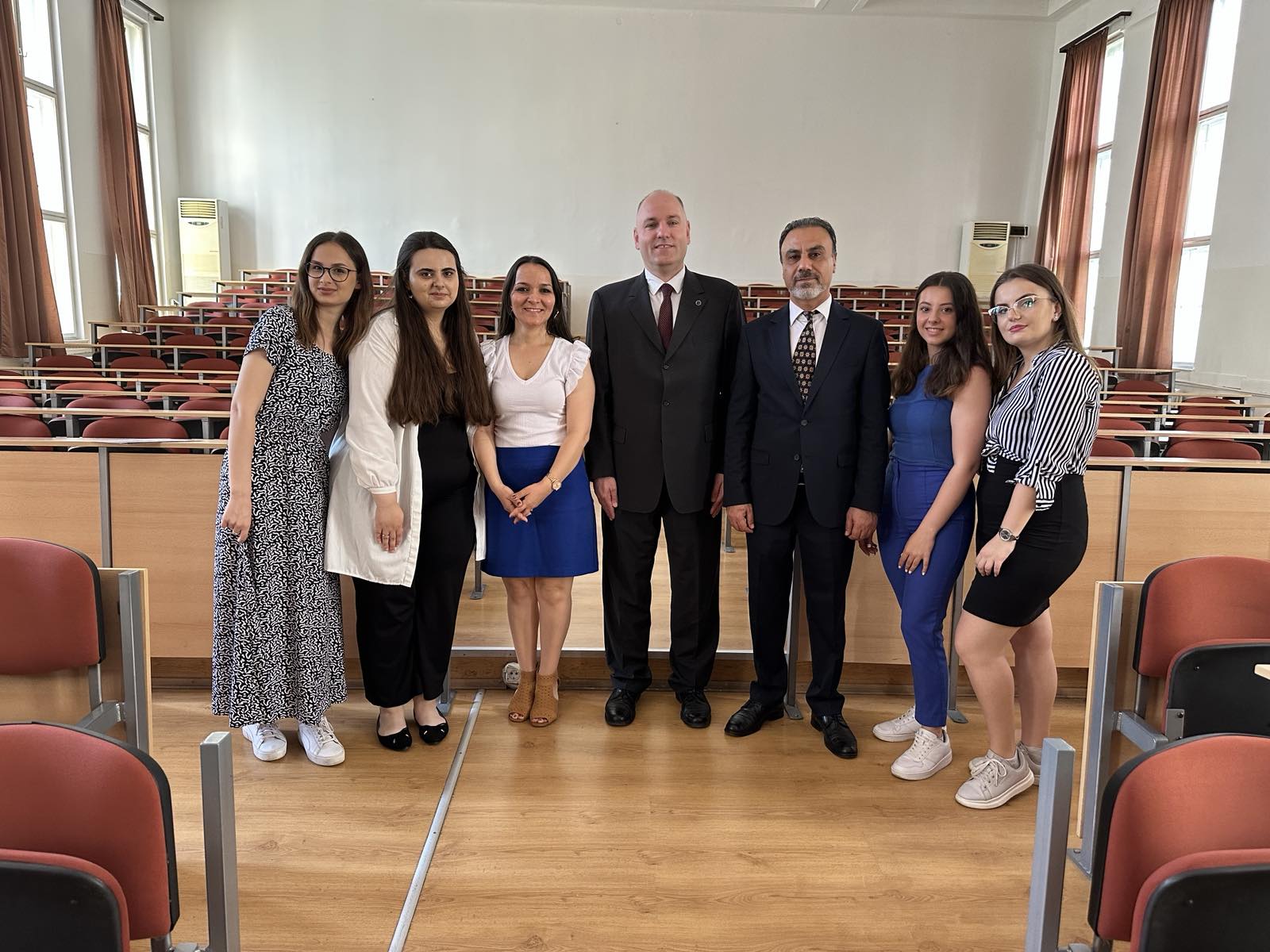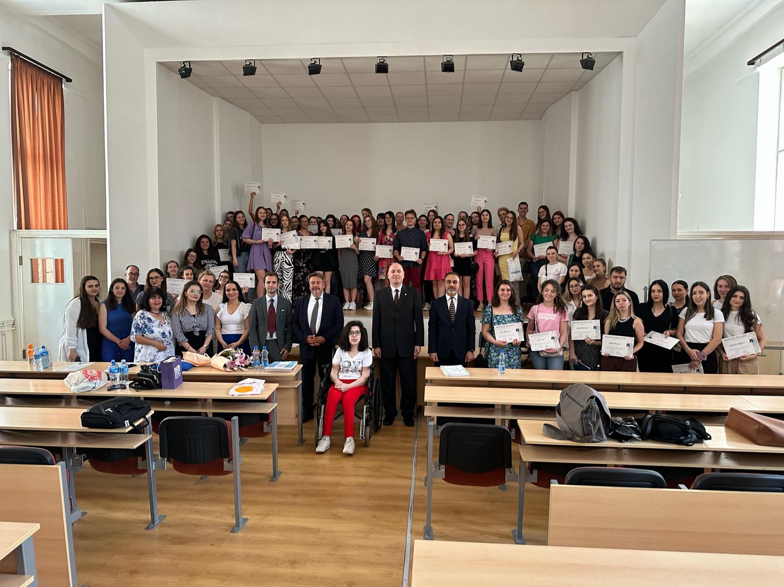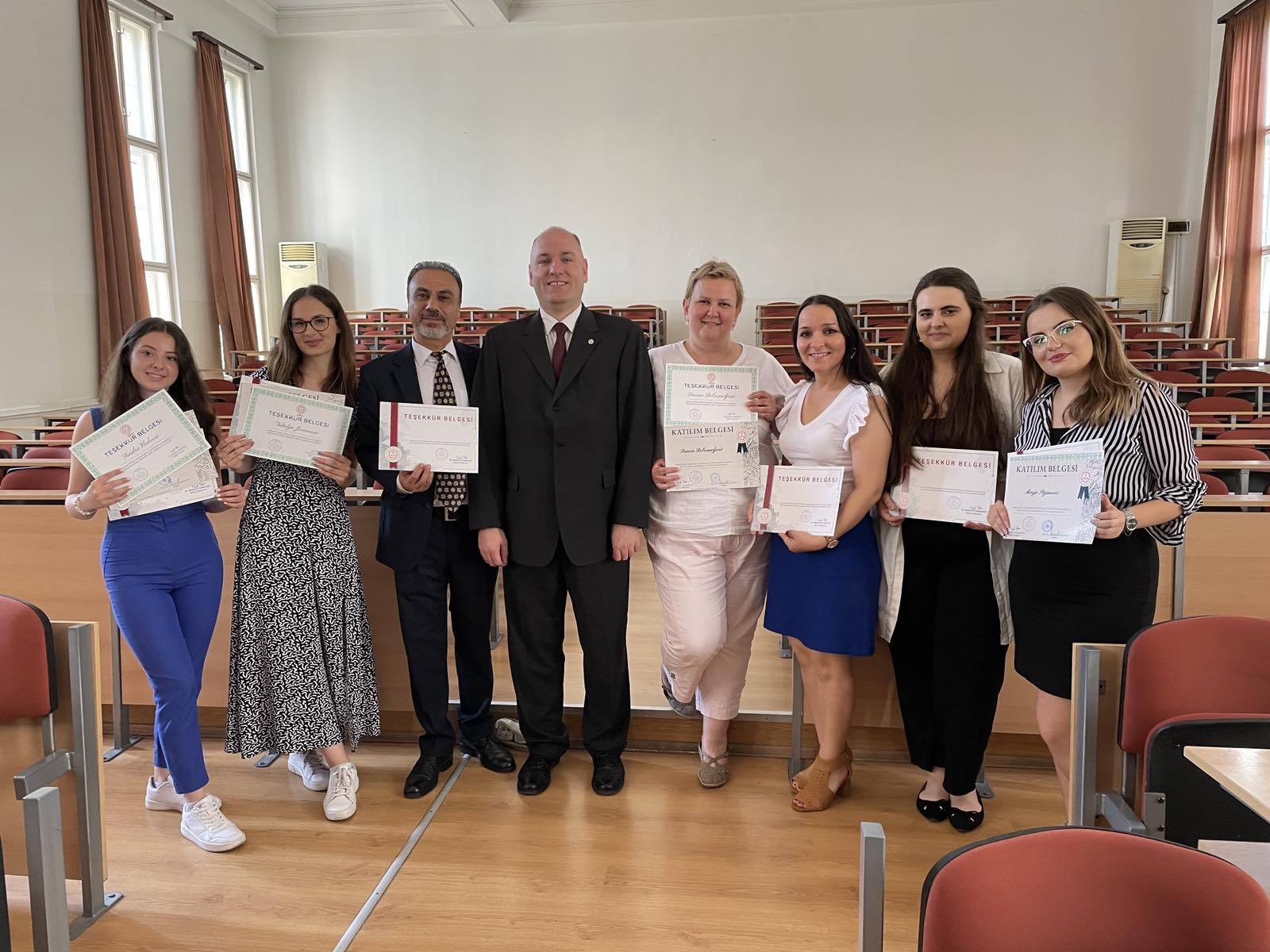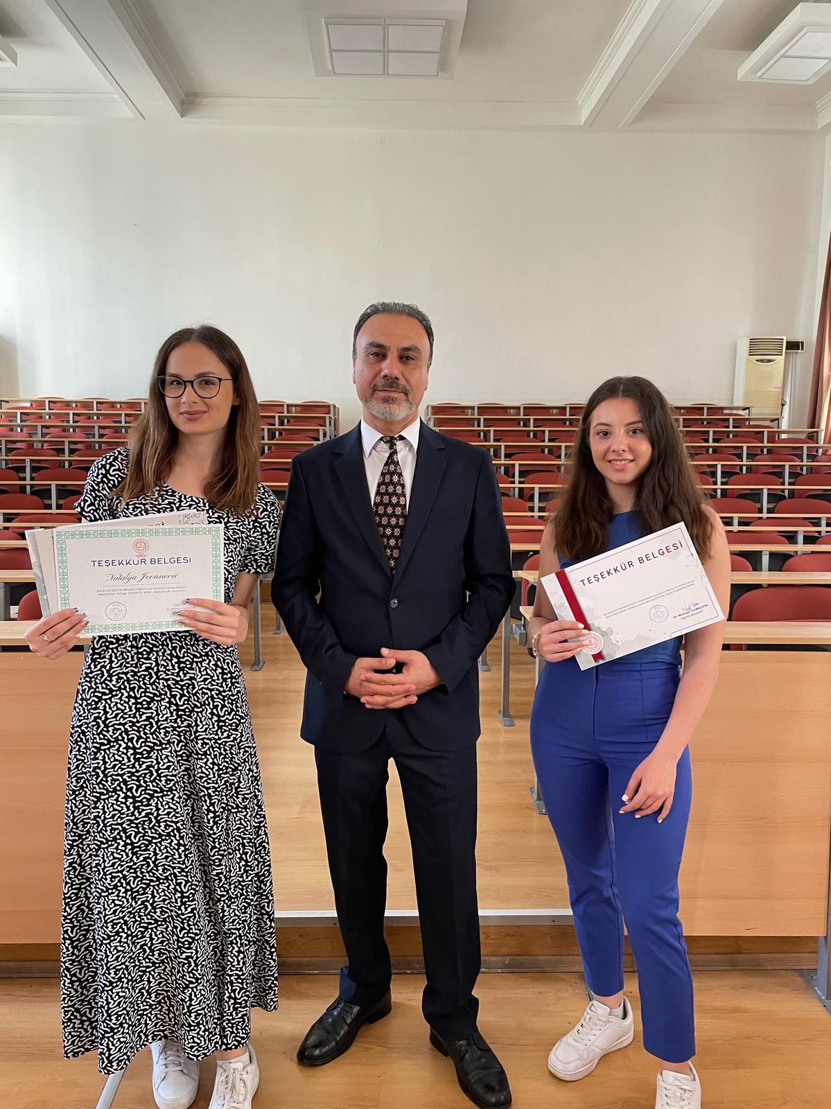 У сарадњи са Амбасадом Републике Турске у Београду, наш факултет овог месеца завршава са реализацијом курса турског језика. У петак 23. јуна одржана је свечана додела сертификата за све полазнике курса. Сертификате примило је 112 студената са нашег факултета. Додели су присуствовали продекан за међународну сарадњу проф. др. Иван Јовановић, саветник за образовање Амбасаде Републике Турске у Београду и министарства просвете Републике Турске Мехмет Јилмазата, кознул Републике Турске у Нишу Атила Кучукталасли, као и сарадници са Природно-математичког факултета у Нишу чији је представник била Даница Добросављевић стручни сарадник за међународну сарадњу и поштовани професори Сејфетин Тунч и професорка Лутфије Туна. Студентима ће испит бити одржан 10. јула након чега ће успешни полазници добити дипломе за ниво А1. Од октобра на нашем факултету биће поново организован ниво А1 за нове полазнике, као и ниво А2 за све оне који желе да наставе са учењем турског језика.