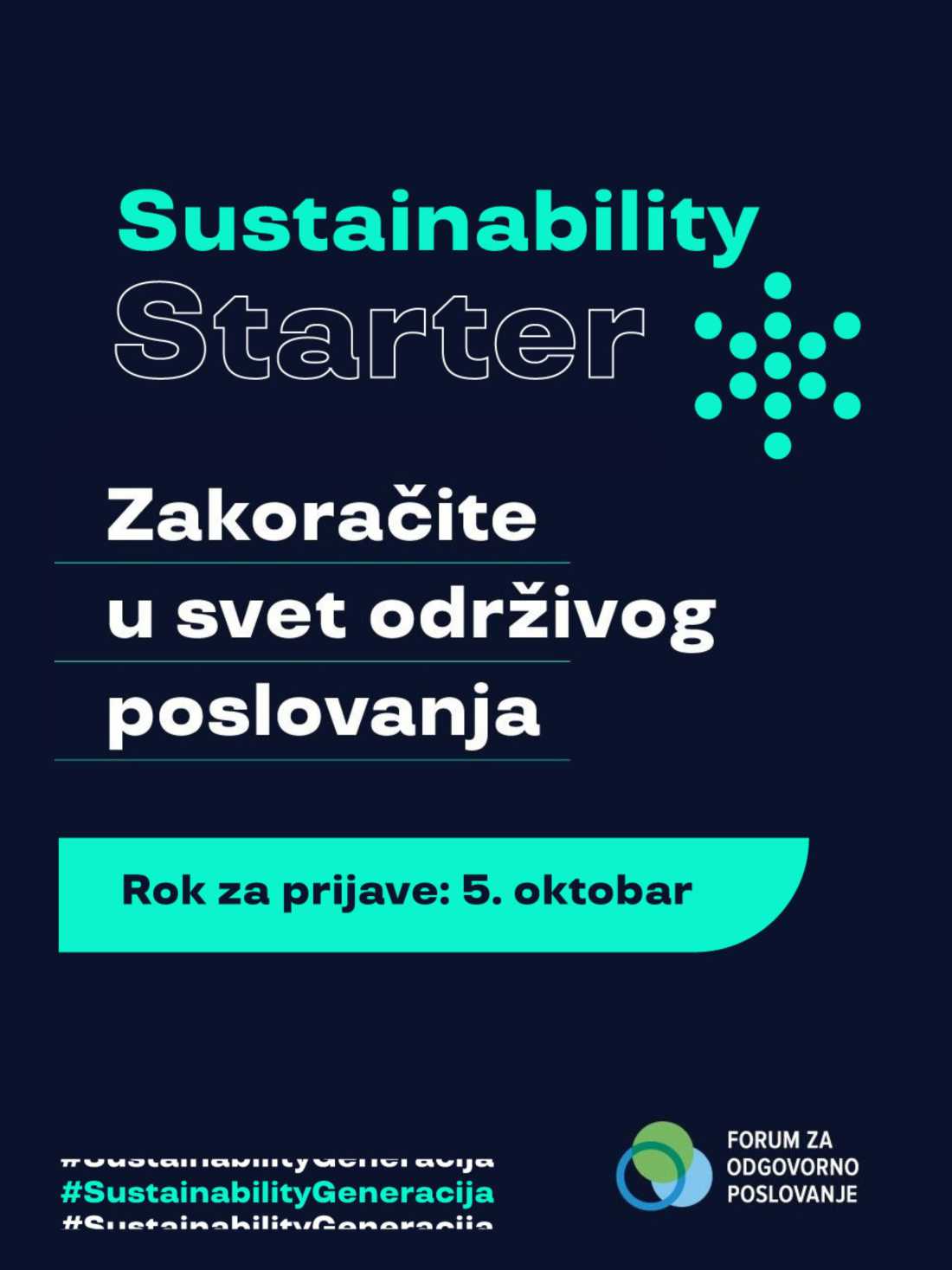 Форум за одговорно пословање позива дипломце и студенте завршних година и мастер студија да се пријаве за  Sustainability Starter - едукативни програм за стицање практичних знања неопходних за развој каријере у области одрживости и друштвено одговорног пословања.