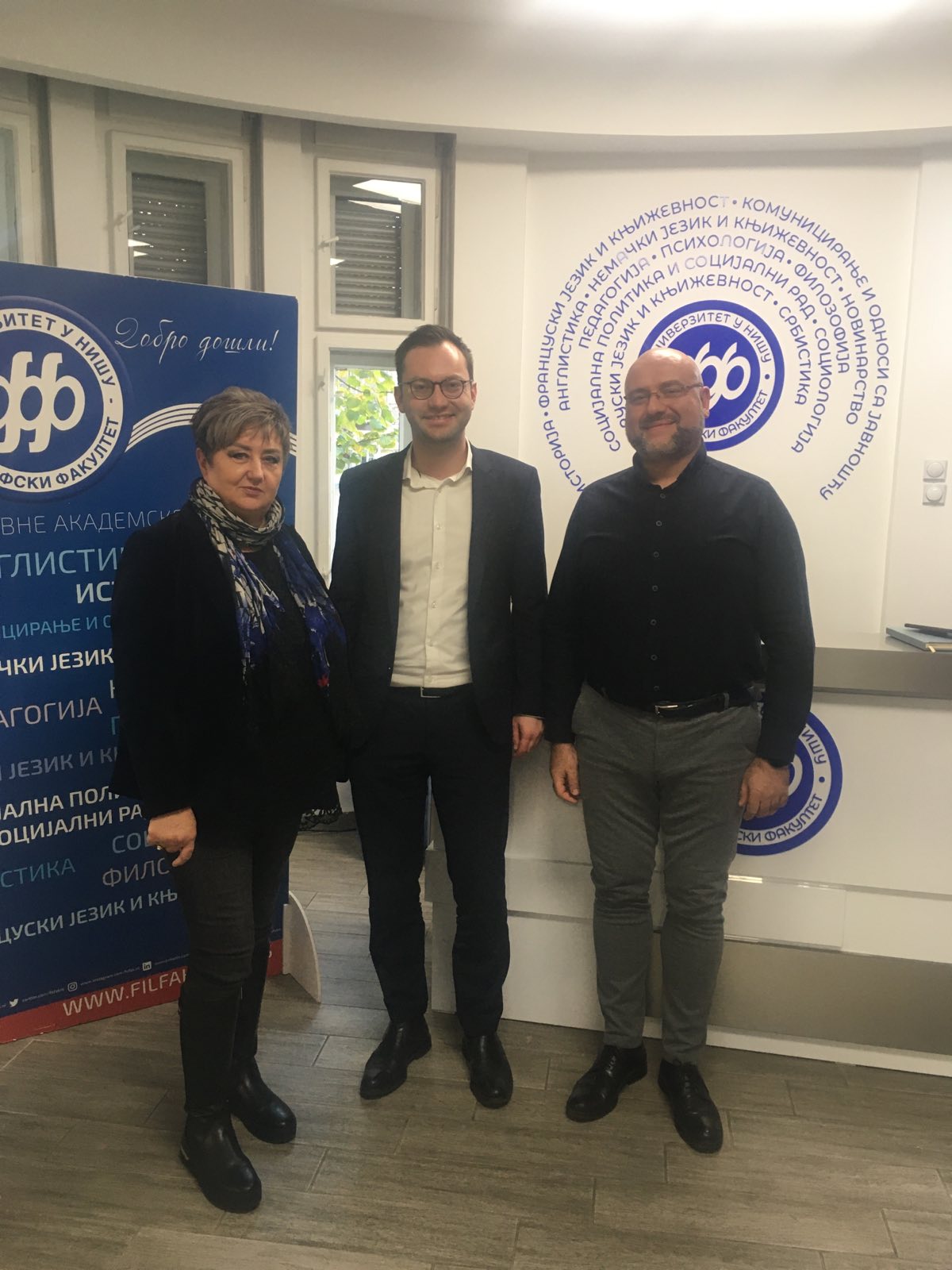 Директор Аустријског културног форума у Београду, Амадеус Фалтајнер, посетио је Филозофски факултет у Нишу. Током посете, Фалтајнер је студентима германистике представио рад Аустријског културног форума и разговарао о културним везама Аустрије и Србије и могућностима за будућу сарадњу.