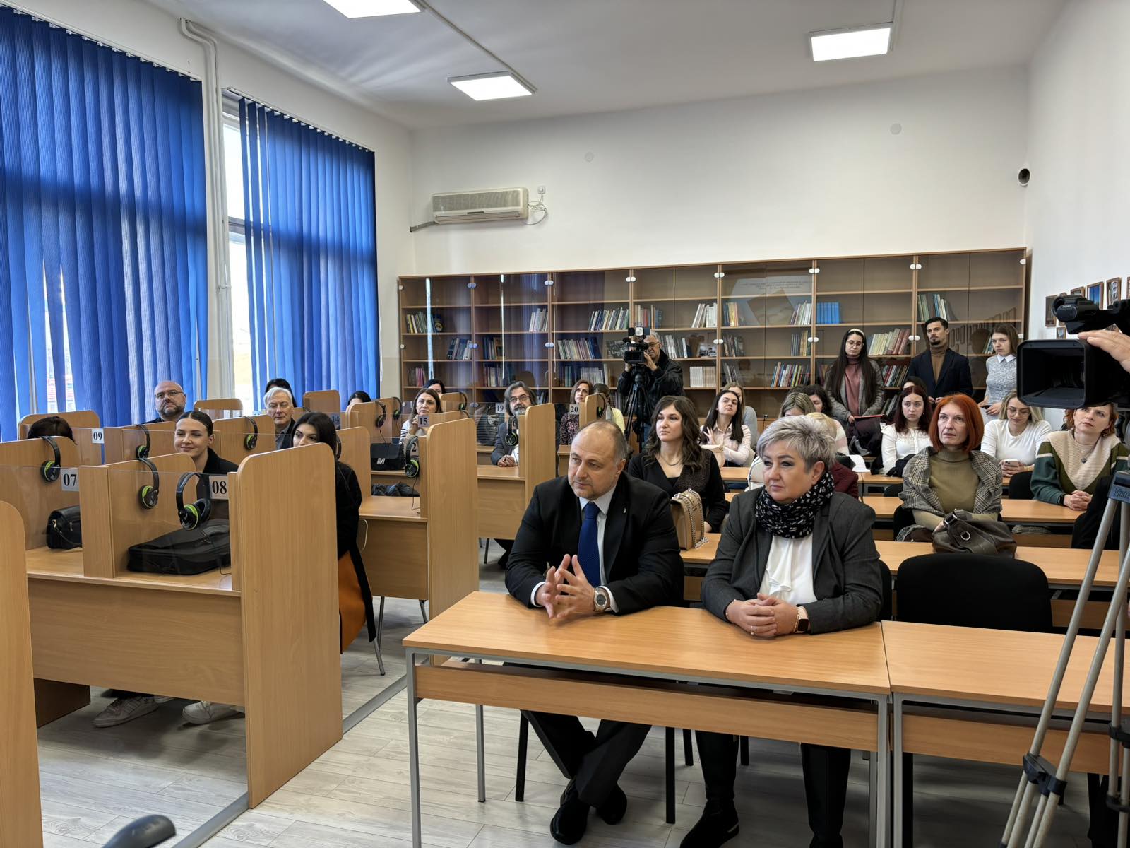 Деканица нишког Филозофског факултета Наталија Јовановић истакла је да је фонетска учионица једна од најмодернијих учионица за изучавање језика и симултано превођење.