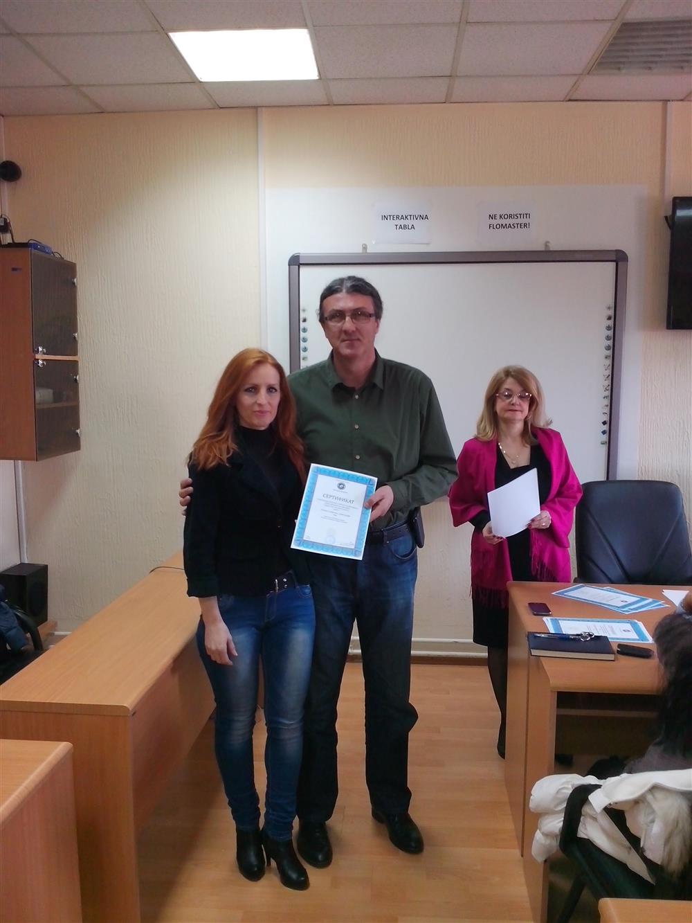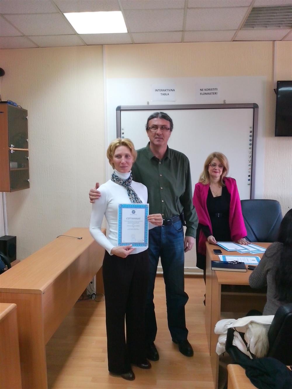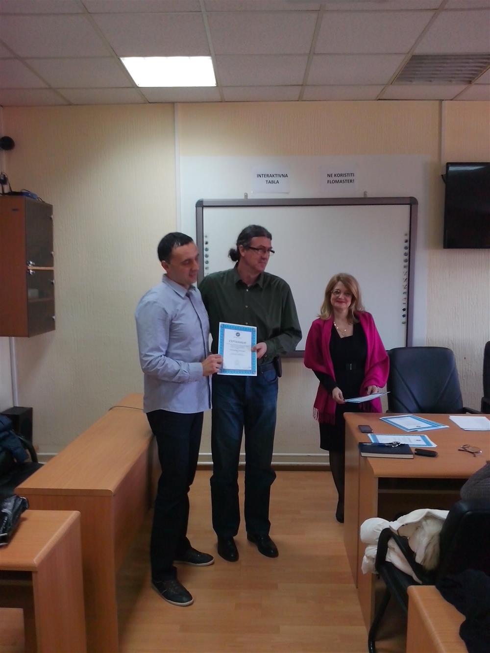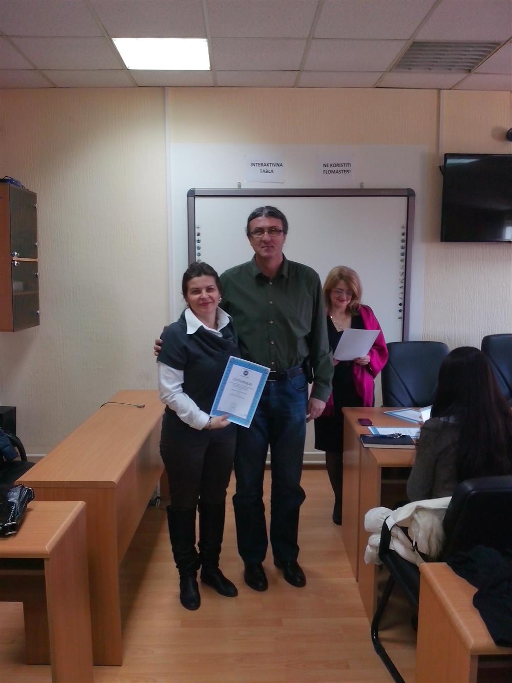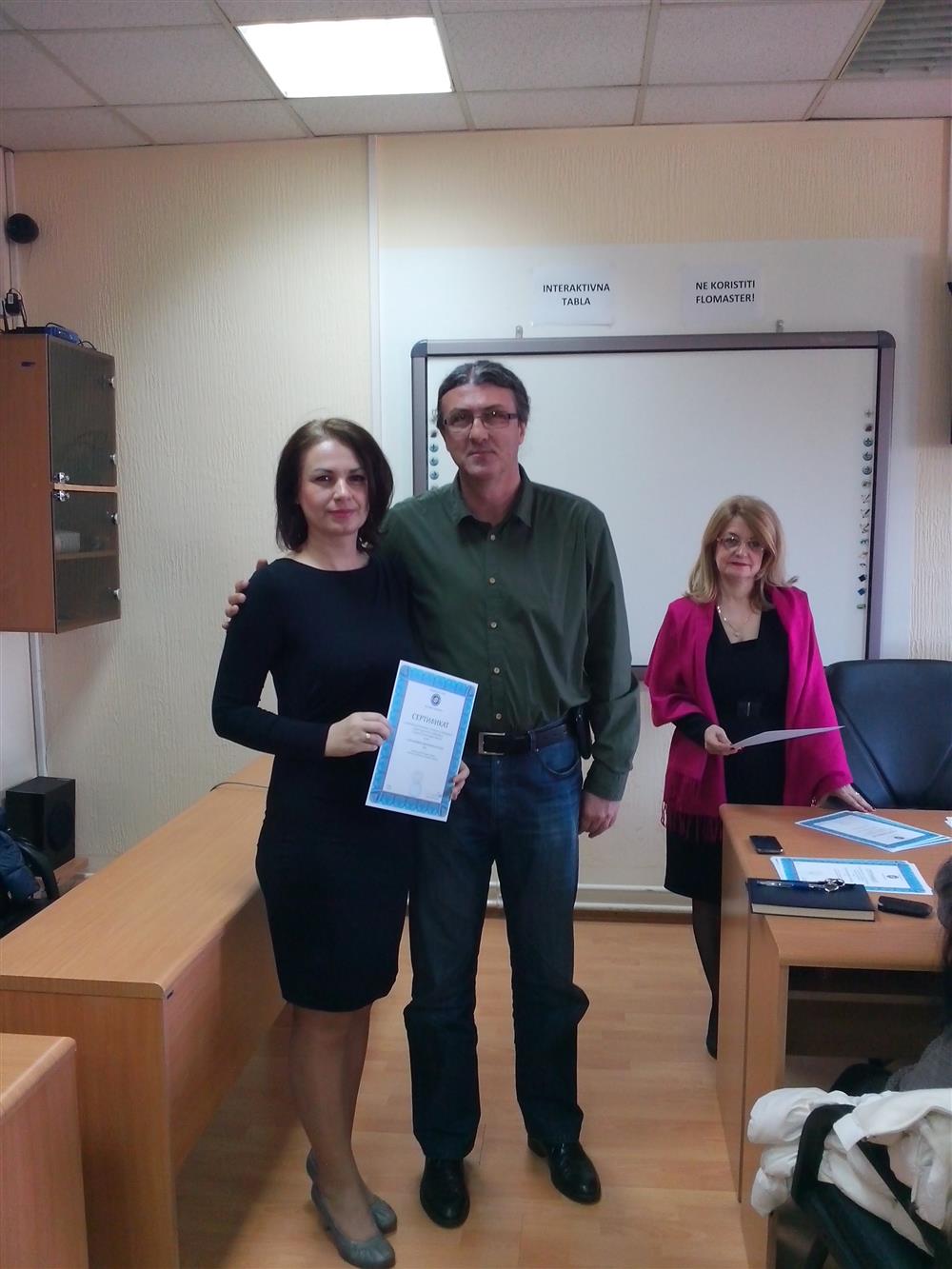 У суботу (4. априла), декан Филозофског факултета, проф. др Горан Максимовић, заједно са колегиницама из Центра за образовање наставника (проф. др Марина Јањић, доц. др Јелена Максимовић и доц. др Гордана Ђигић), доделио је сертификате за успешно завршен семинар за менторску обуку наставника, који је реализован на Филозофском факултету у Нишу у току зимског семестра школске 2014-15. године.