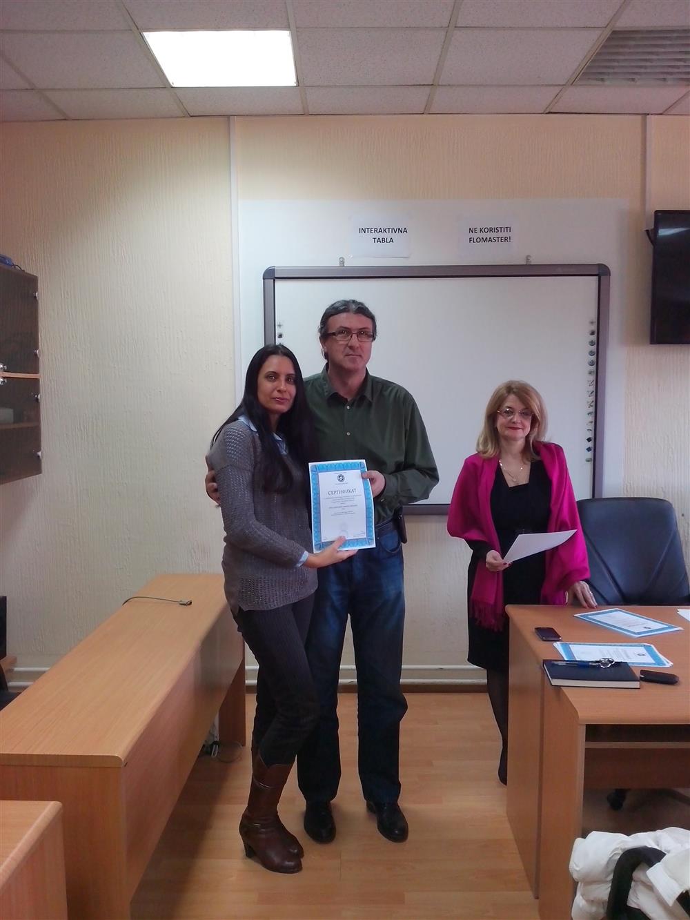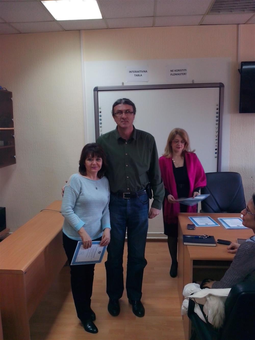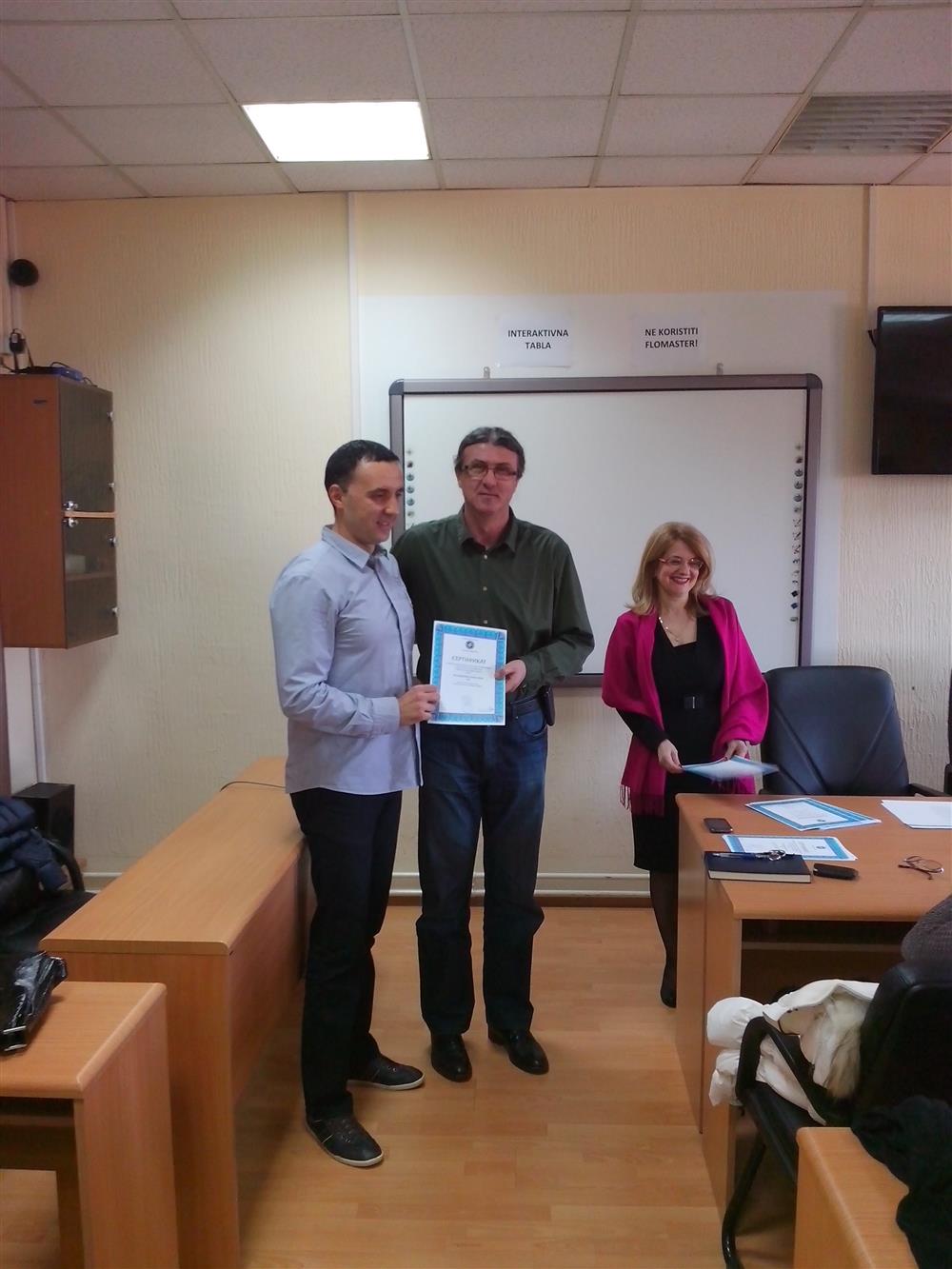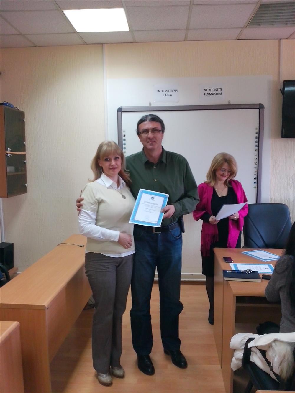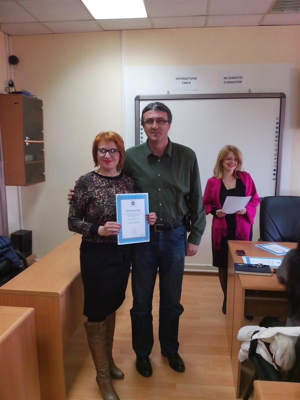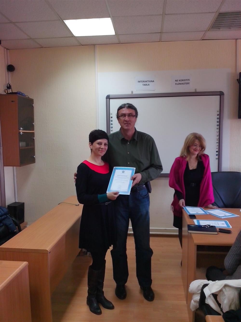 У суботу (4. априла), декан Филозофског факултета, проф. др Горан Максимовић, заједно са колегиницама из Центра за образовање наставника (проф. др Марина Јањић, доц. др Јелена Максимовић и доц. др Гордана Ђигић), доделио је сертификате за успешно завршен семинар за менторску обуку наставника, који је реализован на Филозофском факултету у Нишу у току зимског семестра школске 2014-15. године.