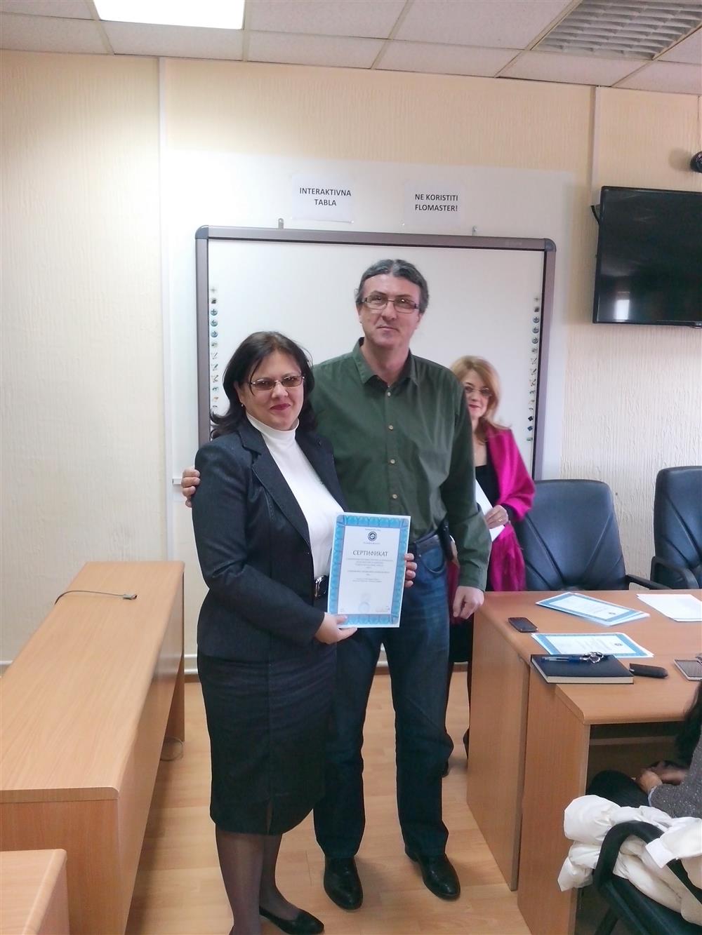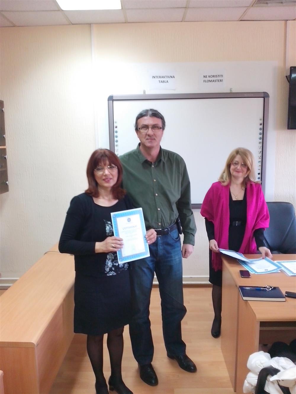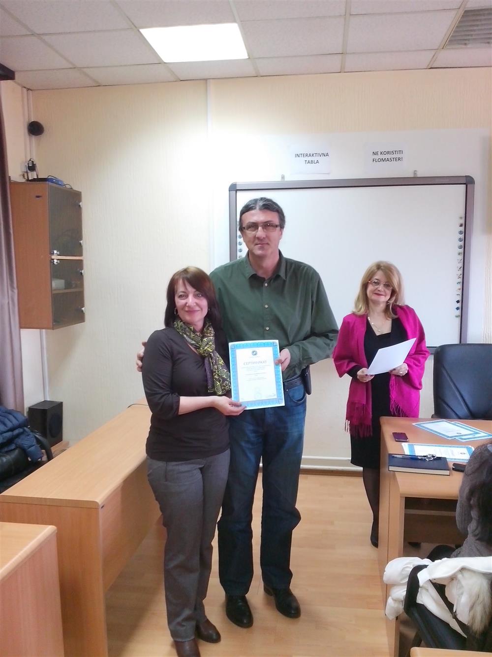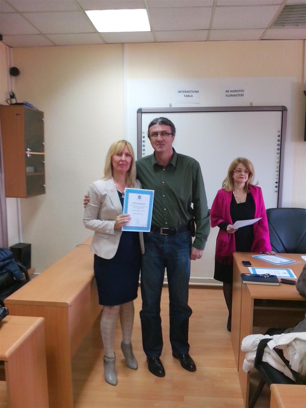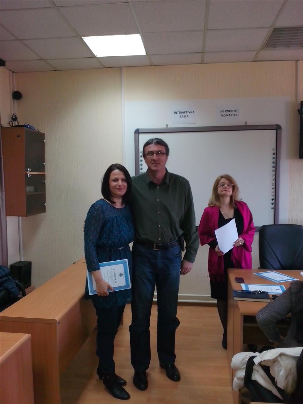 У суботу (4. априла), декан Филозофског факултета, проф. др Горан Максимовић, заједно са колегиницама из Центра за образовање наставника (проф. др Марина Јањић, доц. др Јелена Максимовић и доц. др Гордана Ђигић), доделио је сертификате за успешно завршен семинар за менторску обуку наставника, који је реализован на Филозофском факултету у Нишу у току зимског семестра школске 2014-15. године.