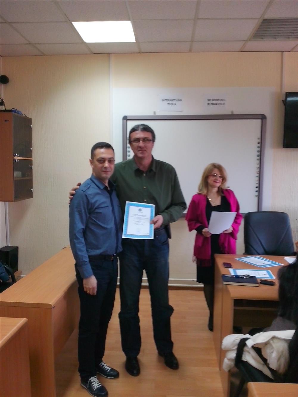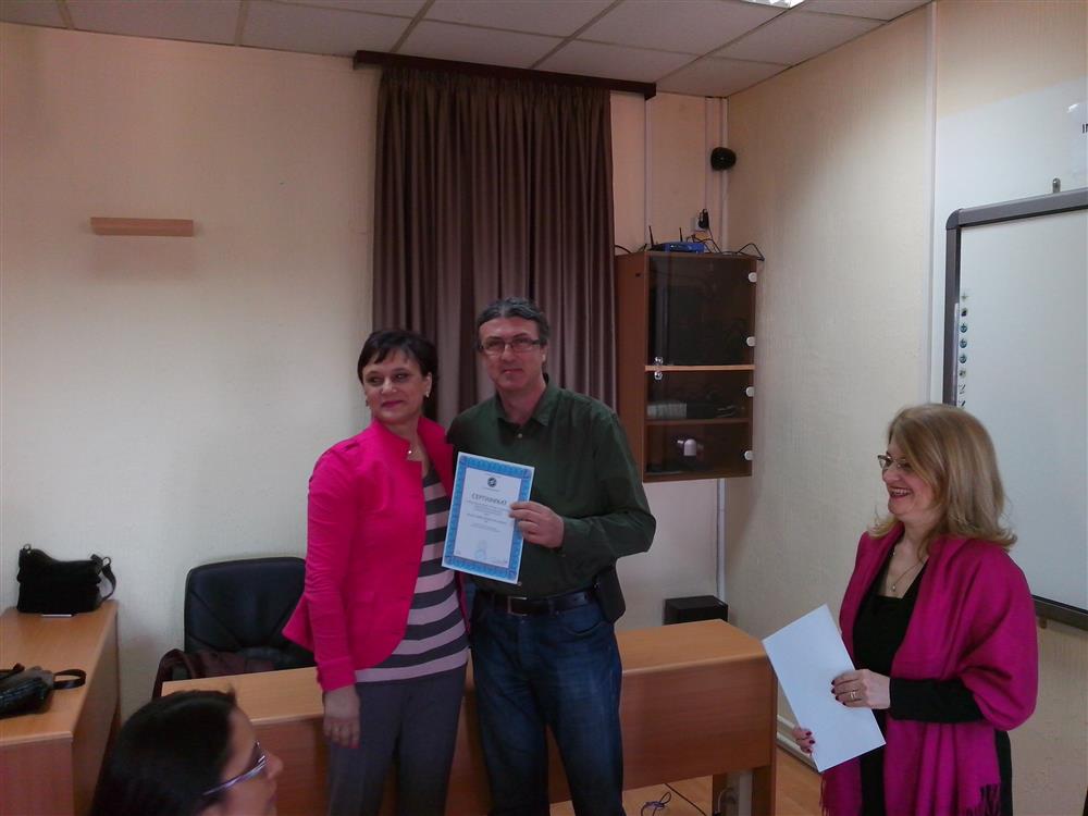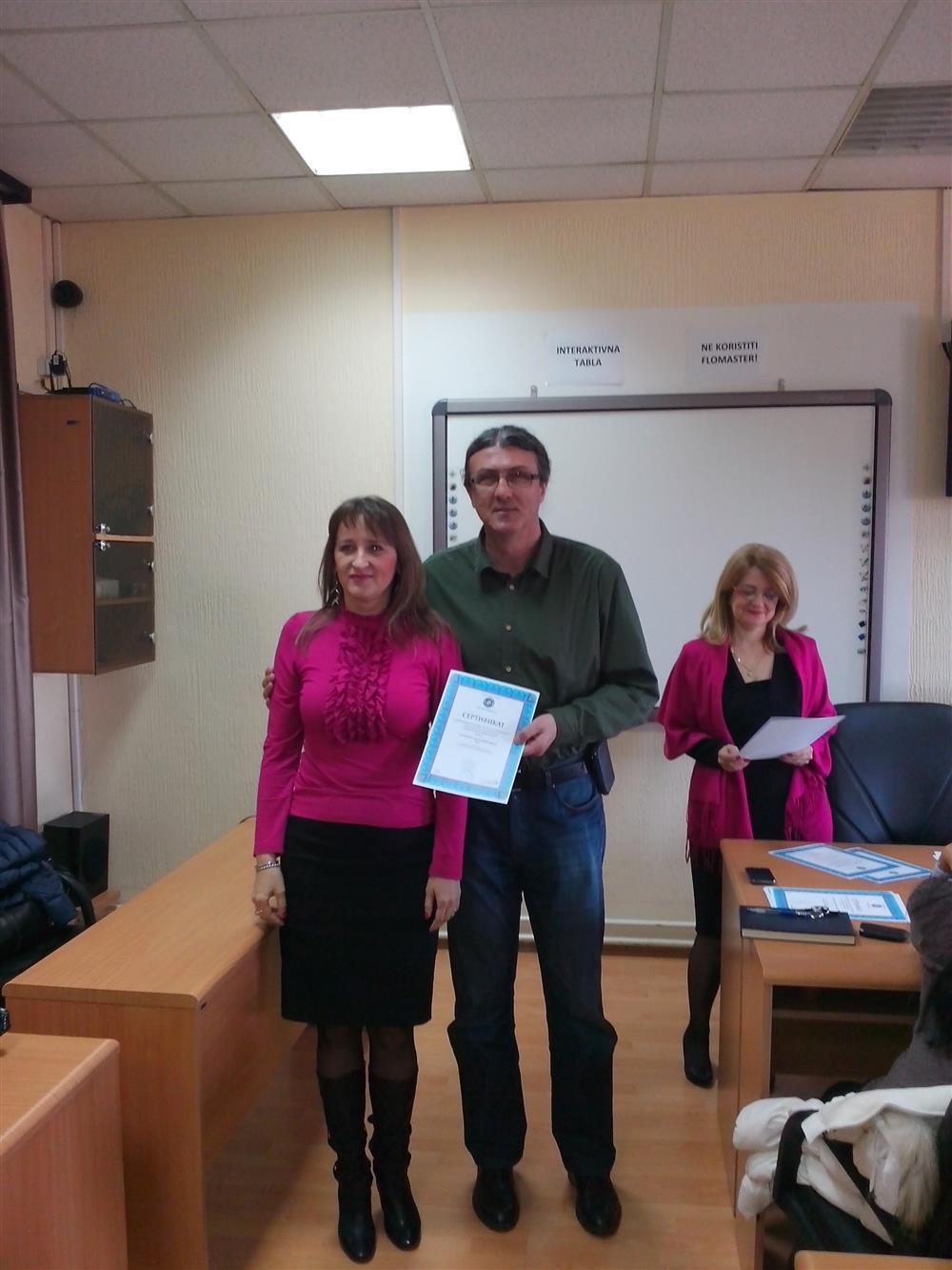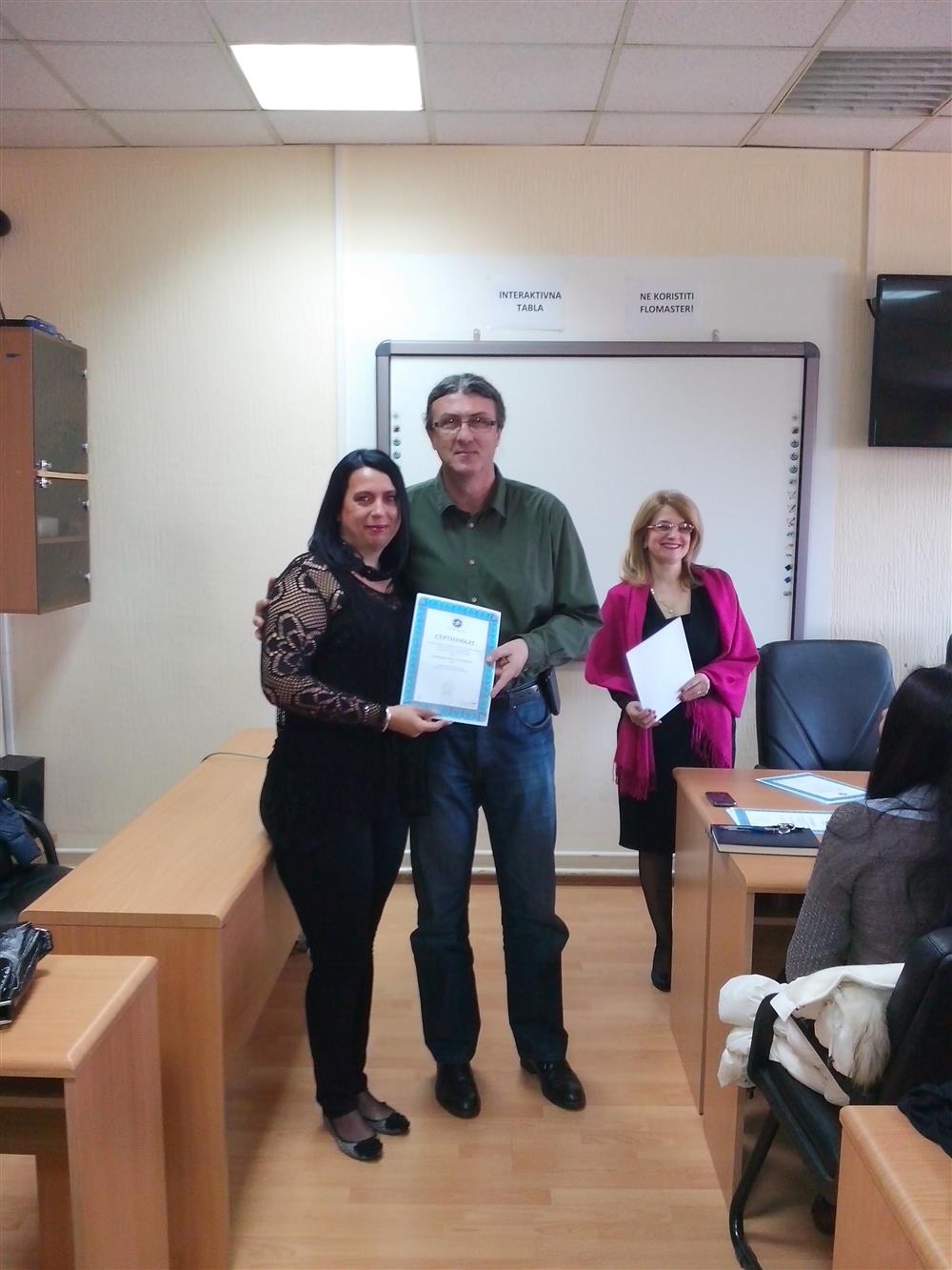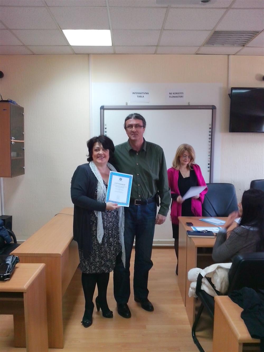 У суботу (4. априла), декан Филозофског факултета, проф. др Горан Максимовић, заједно са колегиницама из Центра за образовање наставника (проф. др Марина Јањић, доц. др Јелена Максимовић и доц. др Гордана Ђигић), доделио је сертификате за успешно завршен семинар за менторску обуку наставника, који је реализован на Филозофском факултету у Нишу у току зимског семестра школске 2014-15. године.