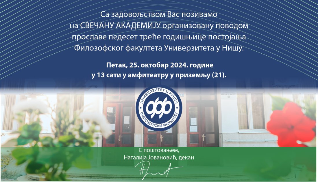 Филозофски факултет Универзитета у Нишу ће у петак, 25. октобра, обележити педесет трећу годишњицу успешног рада.