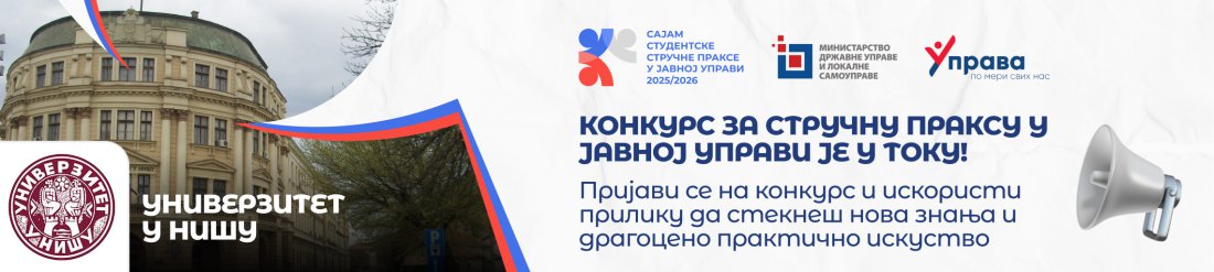 Конкурс за студентску стручну праксу у јавној управи Универзитета у Нишу 2025/26.