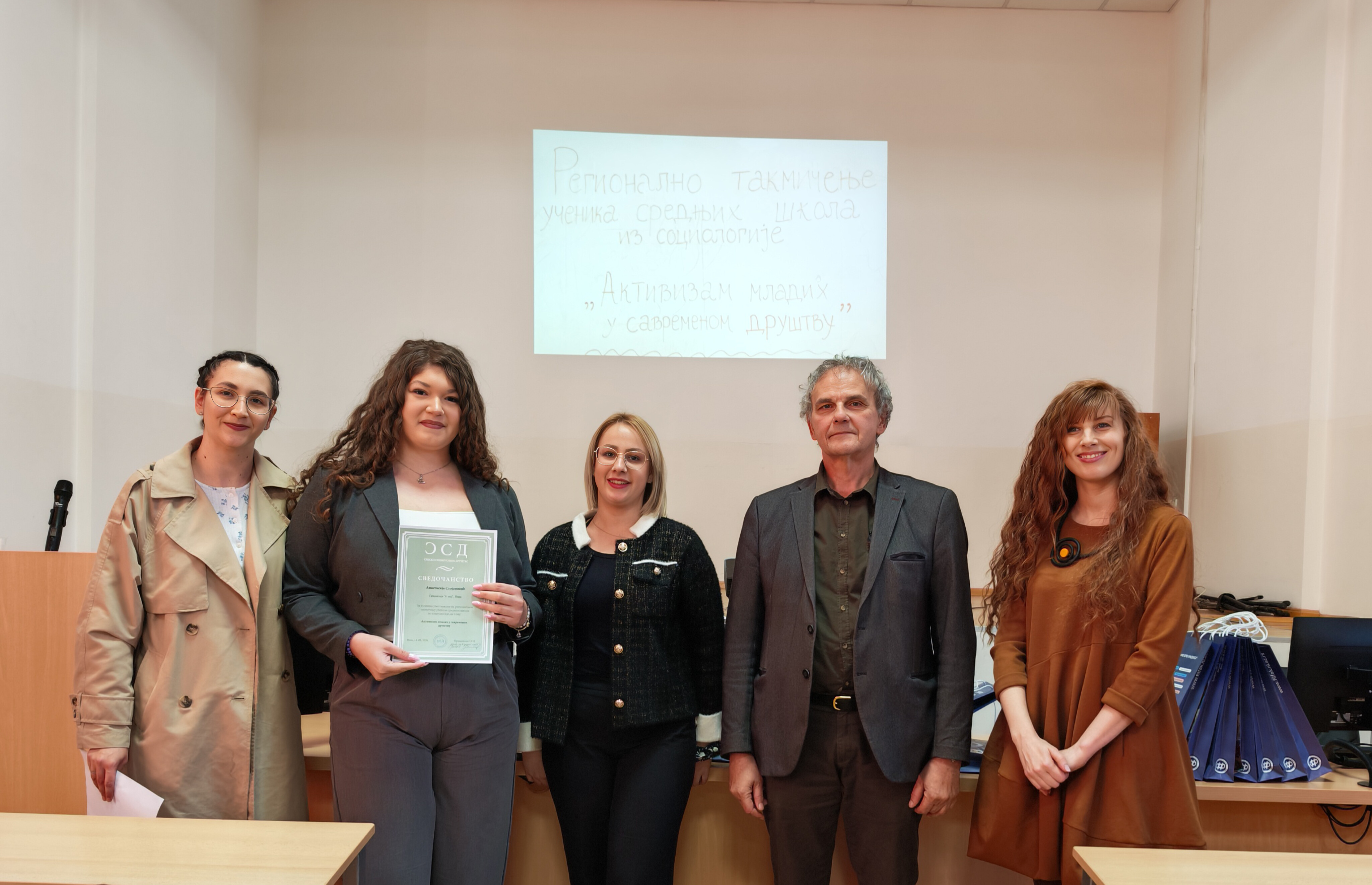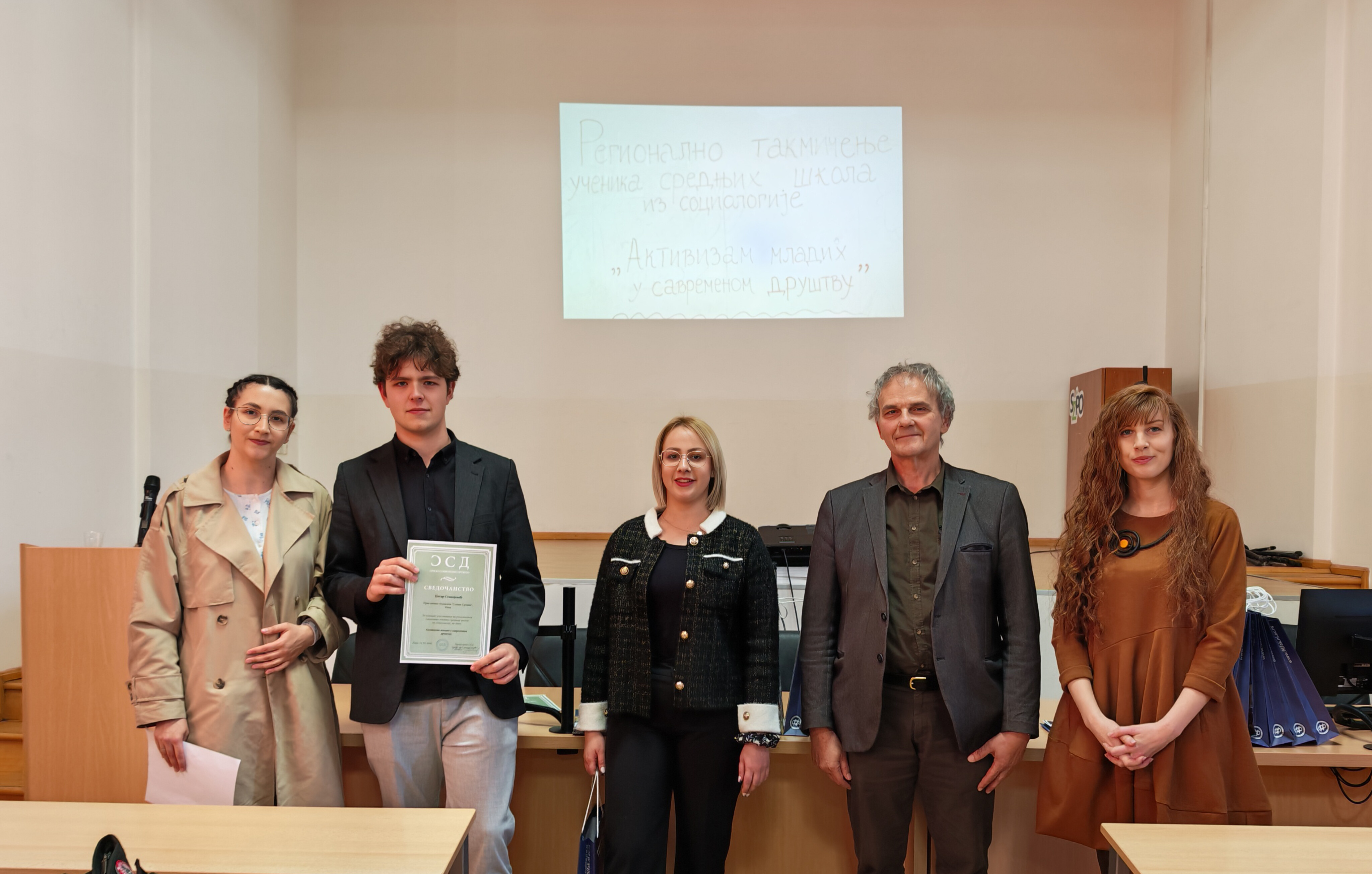 - Емилија Мујић, IV-3, Гимназија Крушевац, са радом: Млади између друштвеног ангажмана и апатије. Менторка: Ивана Ивковић.
