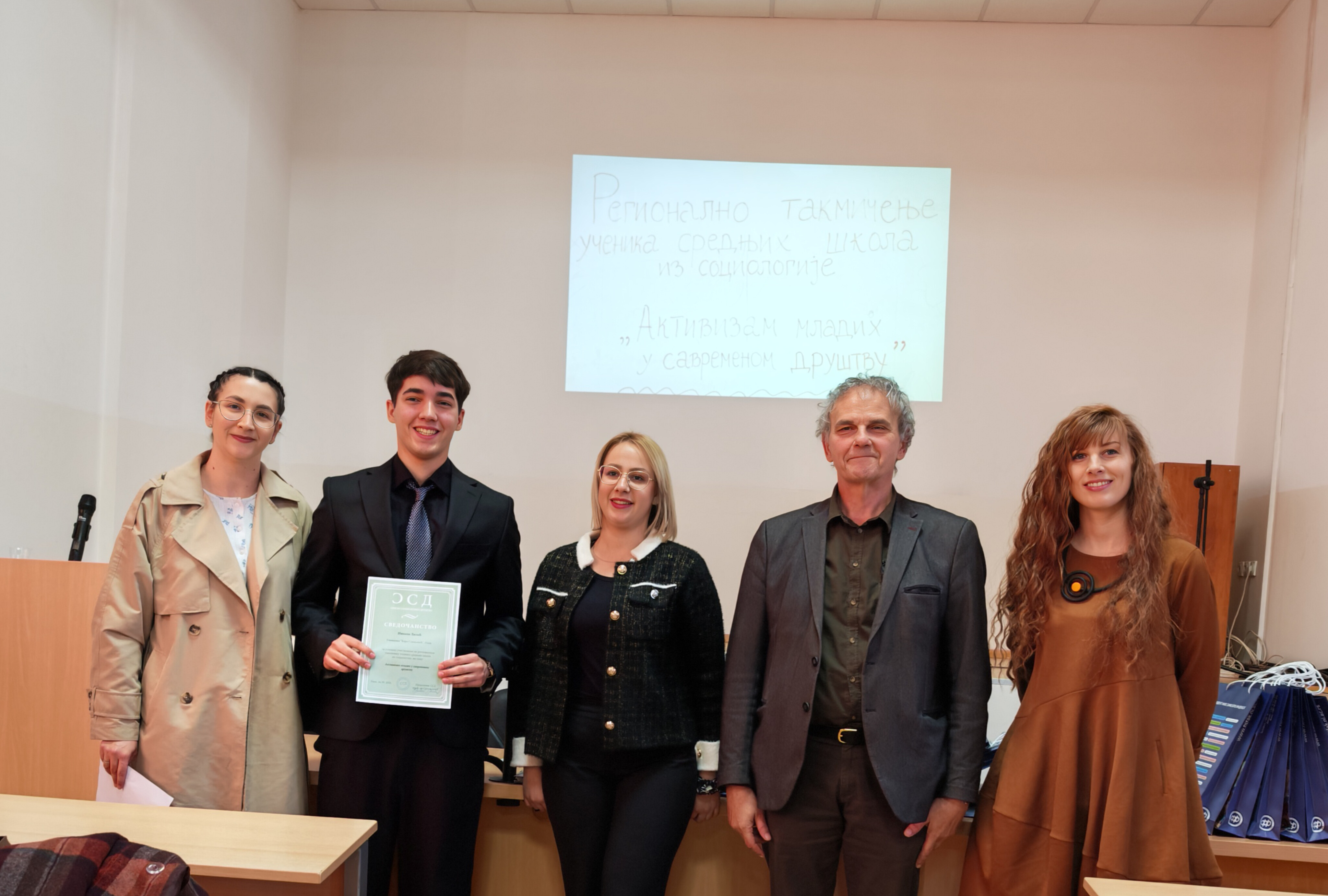 - Лазар Николић, IV-3, Прва нишка гимназија ,,Стеван Сремац”, Ниш, са радом: Млади и политичка партиципација. Менторка: Соња Марковић Томић;