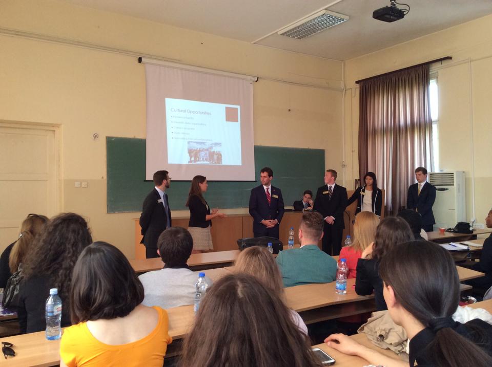 У понедељак, 18.05, када је у посету Филозофском факултету дошла и група америчких студената смештена у Блацу, одржан је заједнички панел на коме су студенти из Алабаме разговарали за студентима нашег факултета о образовним системима наше две државе, о утицају интеркултурне комуникације на развој појединца и његовог окружења, као и о значају универзитетског образовања за развој друштва. На овом панелу говорила је и професорка Ени Смит, наставник школске педагогије на Универзитету у Алабами. Организован је и „Сат са медијима", који је, захваљујући помоћи колега са Департмана за комуникологију и новинарство, био одлично посећен, па су информације о овој посети пренели многи писани и електронски медији и портали, укључујући и Први програм Радио Београда. Организовано је и гостовање студената и професора из Алабаме у емисији „Данас" на ТВ Зона плус уживо.