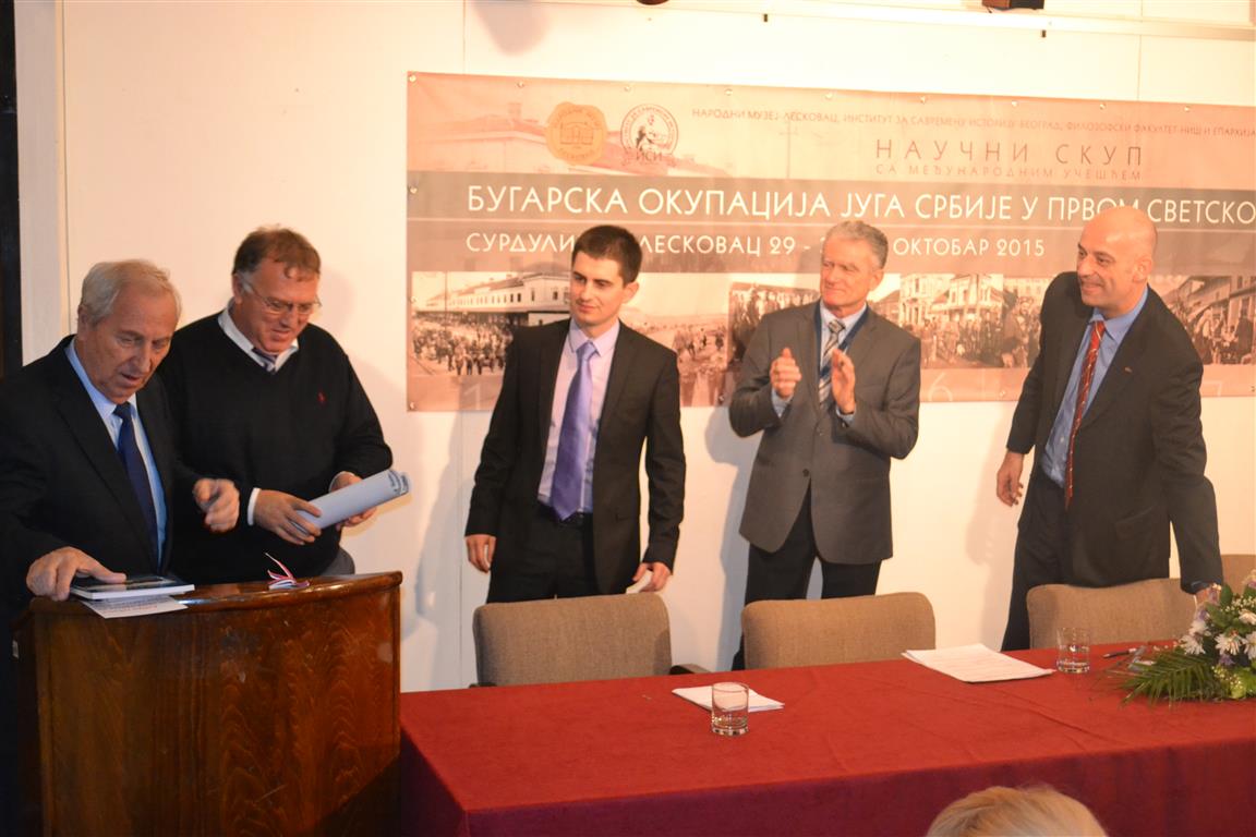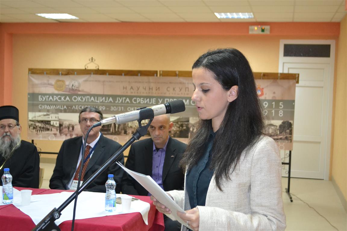 У Сурдулици је 29. октобра 2015. године одржан тродневни научни скуп са међународним учешћем "Бугарска окупација југа Србије у Првом светском рату". Скуп је отворио г. Радослав Павловић, саветник и изасланик Председника Републике Србије, а присутнима су се обратили др Александра Поповић, председник Општине Сурдулица, Његово Преосвештенство Епископ врањски г. Пахомије, декан Филозофског факултета у Нишу проф. др Горан Максимовић, проф. др Милан Кољанин испред Института за савремену историју, мр Владимир Ђорђевић, директор Народног музеја у Лесковцу, и протојереј-ставрофор проф. др Владимир Вукашиновић, изасланик Светог Архијерејског Синода Српске Православне Цркве.