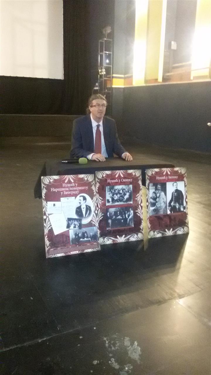 После обиласка кумановског краја путем који води преко југоисточних обронака Скопске Црне Горе, делегација се упутила у град Скопље. У вечерњим часовима пред пуном салом биоскопа „Култура“ проф. др Горан Максимовић је одржао предавање о Браниславу Нушићу – српском комедиографу, писцу и дипломати. Предавању у организацији Културно-информативног центра „СПОНА“ присуствовали су представници српске амбасаде у Републици Македонији, директор и наставници Основне школе „Св. Ћирило и Методије“ из Кучевишта и бројни грађани Скопља. По завршетку предавања декан Филозофског факултета разговарао је са руководством „СПОНЕ“ и њеним активистима. Том приликом договорен је наставак сарадње са циљем подршке унапређењу културно-образовног живота српске заједнице у Републици Македонији.