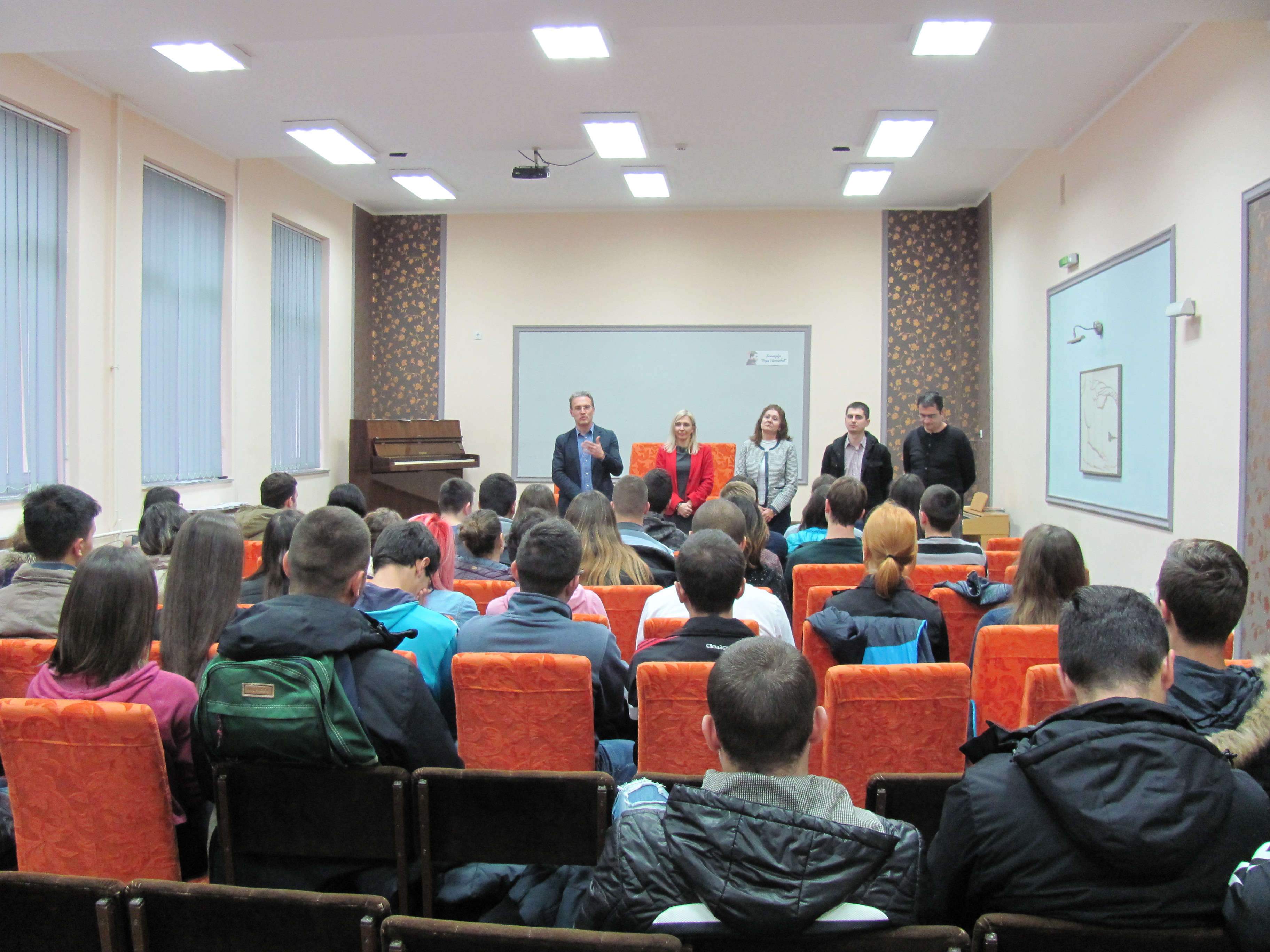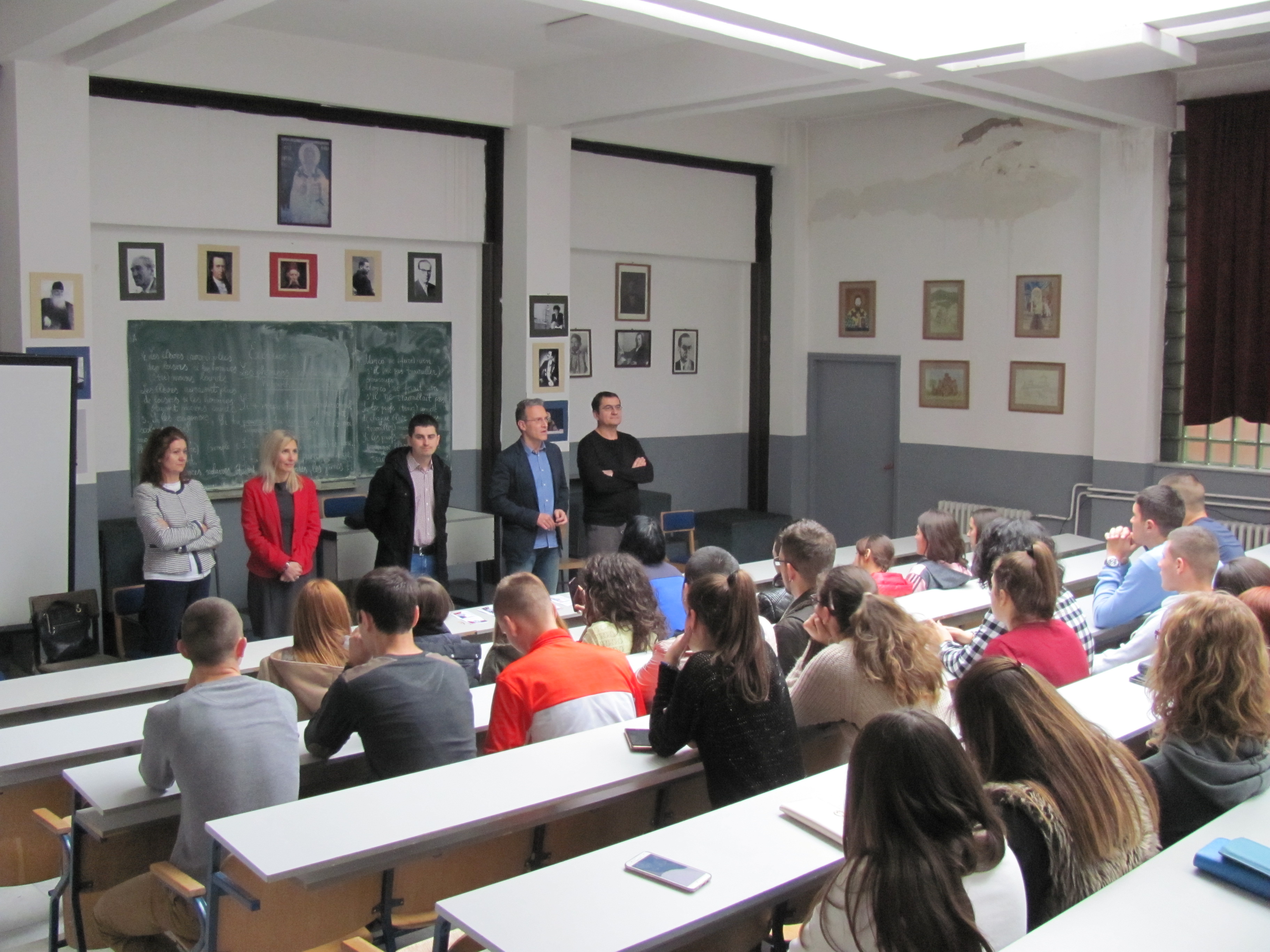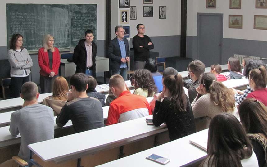 Представници Филозофског факултета у Нишу (продекан Драган Тодоровић, управник департмана за филозофију Зоран Димић, управница департмана за српски језик Марина Јањић, управница департману за француски језик и књижевност Селена Станковић и асистент на департману за историју Дејан Антић) посетили су у уторак, 8. новембра 2016. године, Гимназију "Јован Скерлић“ у Владичином Хану, као и Гимназију „Бора Станковић“ и Економско-трговинску школу у Врању.