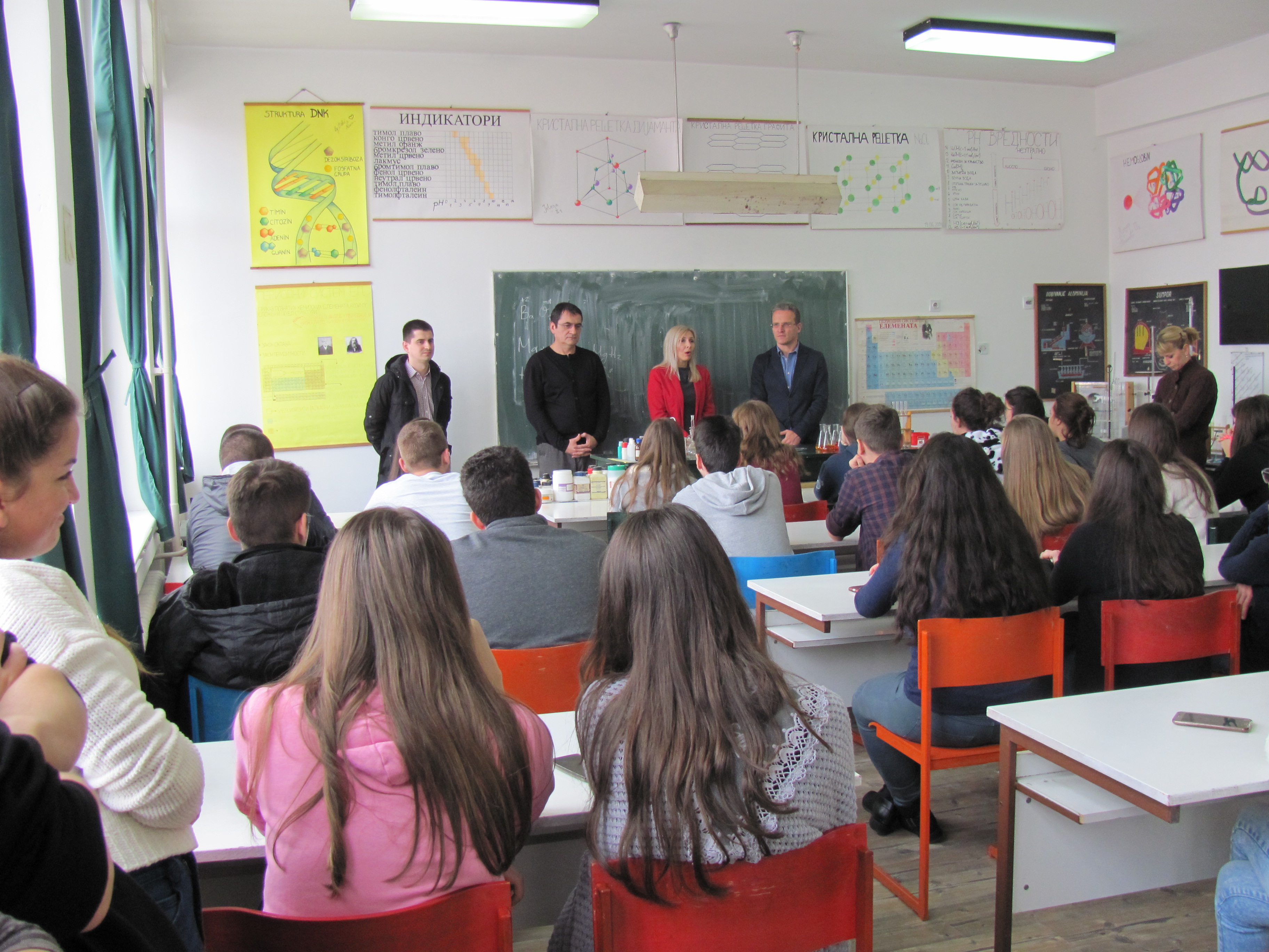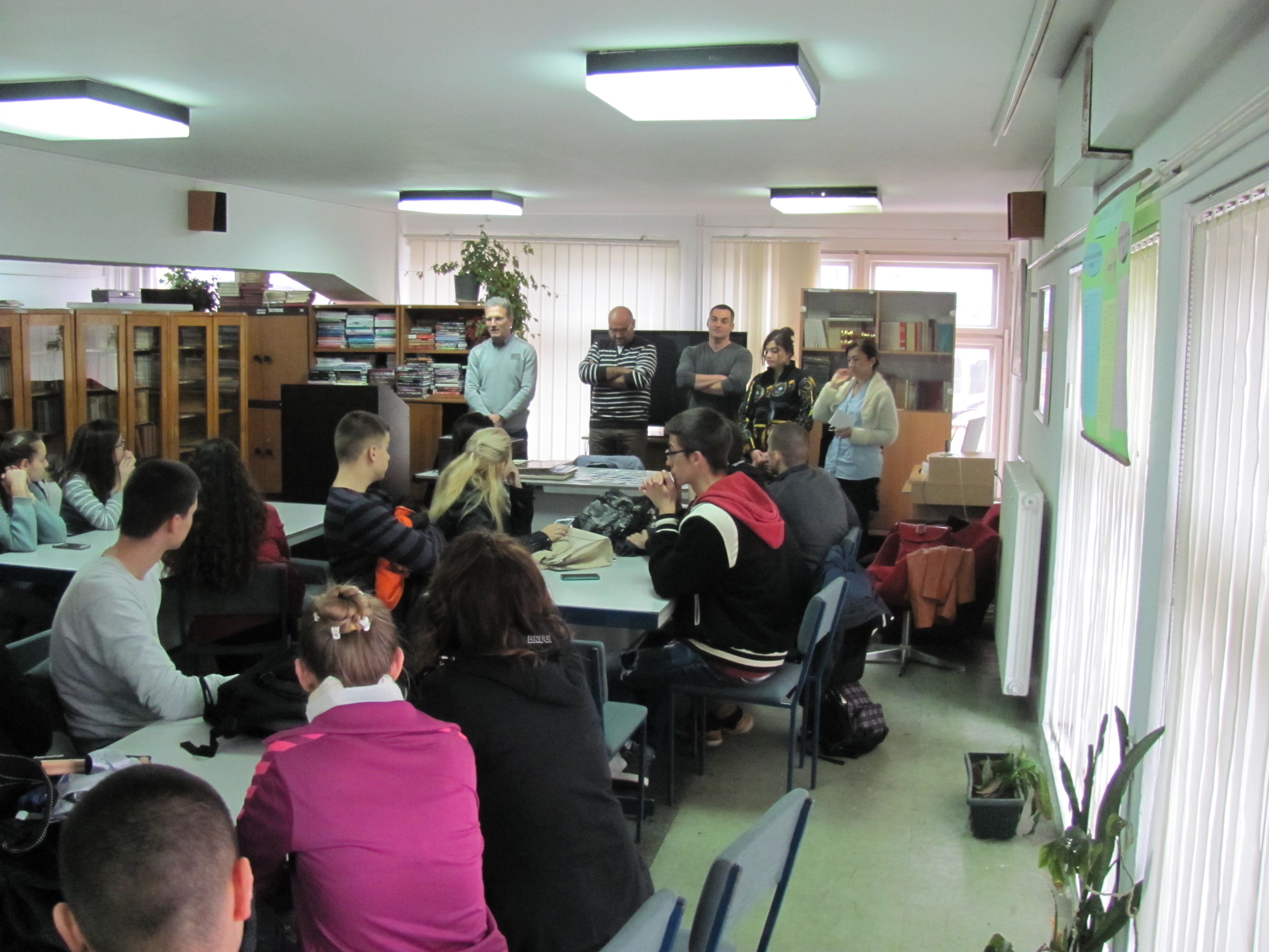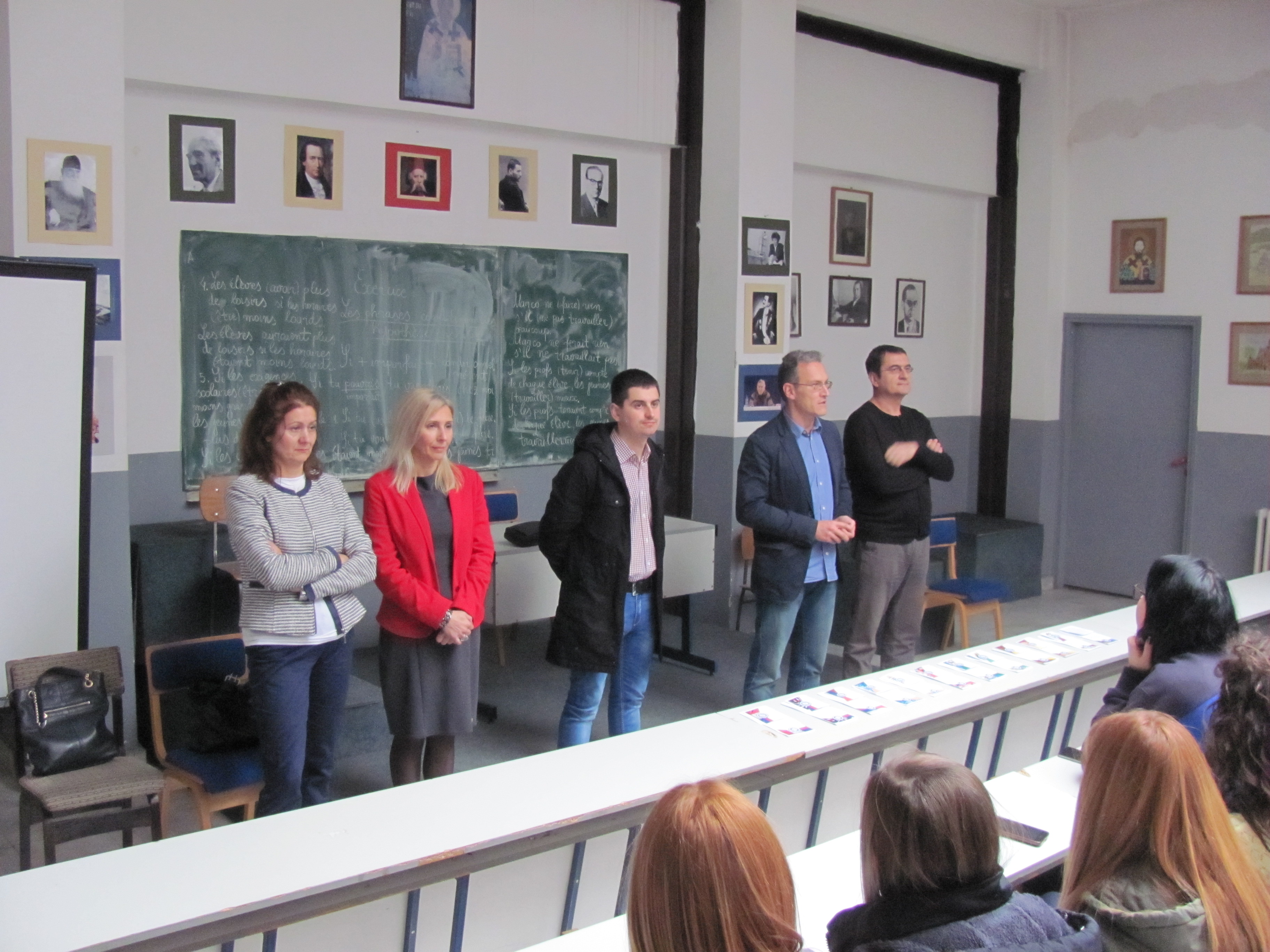 Представници Филозофског факултета у Нишу (продекан Драган Тодоровић, управник департмана за филозофију Зоран Димић, управница департмана за српски језик Марина Јањић, управница департману за француски језик и књижевност Селена Станковић и асистент на департману за историју Дејан Антић) посетили су у уторак, 8. новембра 2016. године, Гимназију "Јован Скерлић“ у Владичином Хану, као и Гимназију „Бора Станковић“ и Економско-трговинску школу у Врању.