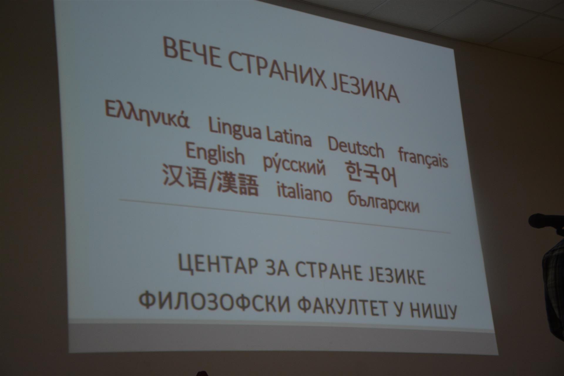 Поводом десет година од оснивања Центра за стране језике, на Филозофском факултету у Нишу организован је музичко-рецитаторско-плесни колаж који су припремили студенти са свих департмана.
