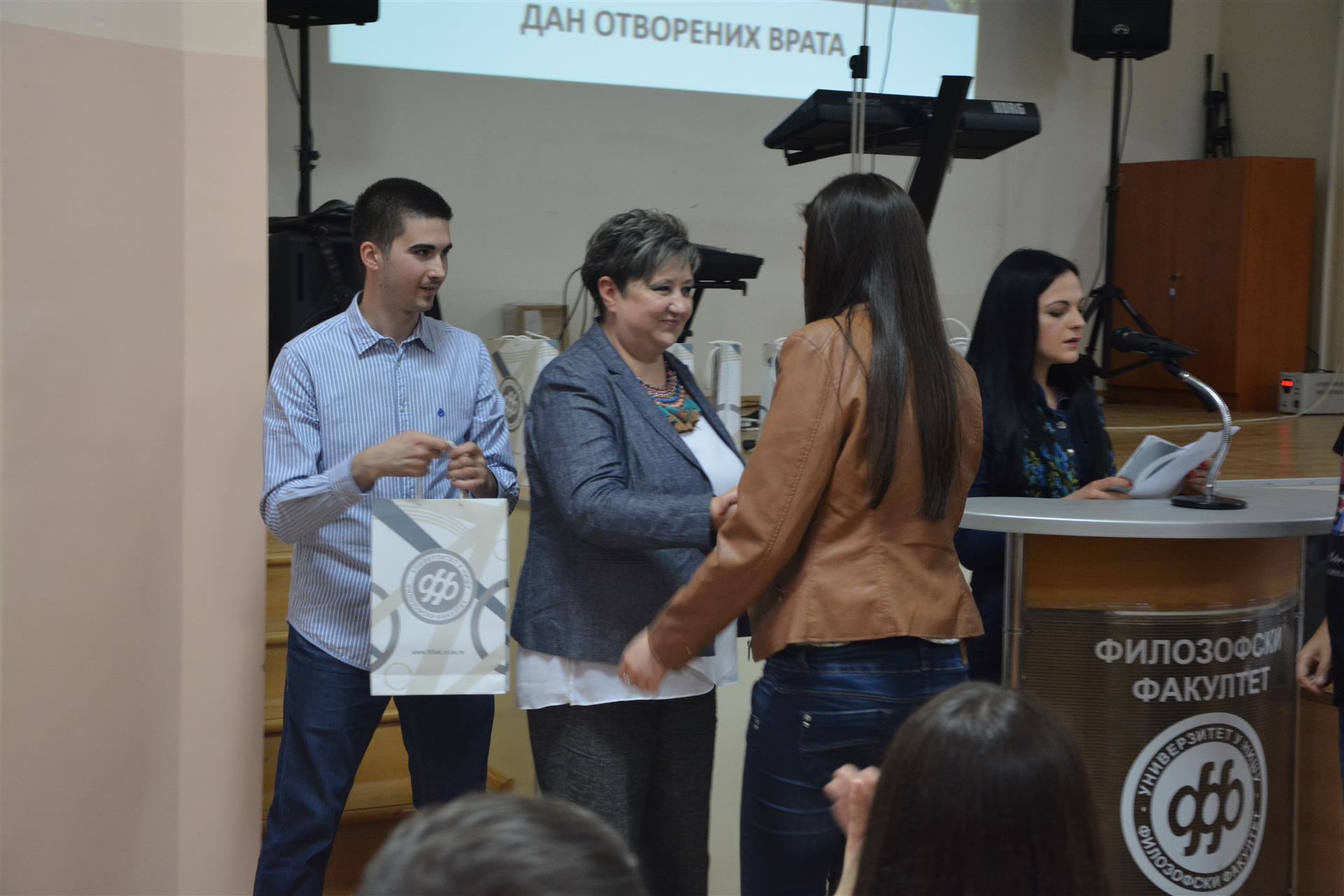 Присутне је поздравила деканица проф. др Наталија Јовановић која је најавила да се до почетка уписног рока очекује и акредитација за 13. студијски програм на основним студијама – немачки језик и књижевност. Осим тога, она је обрадовала ђаке информацијом да ће на свим студијским програмима, осим на Психологији, бити укинут тест опште информисаности, кога се кандидати, традиционално, највише прибојавају. Новина је и да Филозофски факултет у Нишу од ове године уводи и бесплатне антистрес радионице за све кандидате. На тај начин ће запослени покушати да олакшају ђацима један од најстреснијих периода у животу.